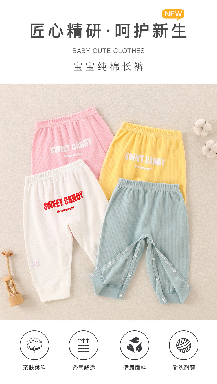아기 바지 스냅 버튼 봄과 가을 순면 엉덩이 바지 높은 허리 배꼽 보호 PP 바지 무료 착용 숨겨진 버튼