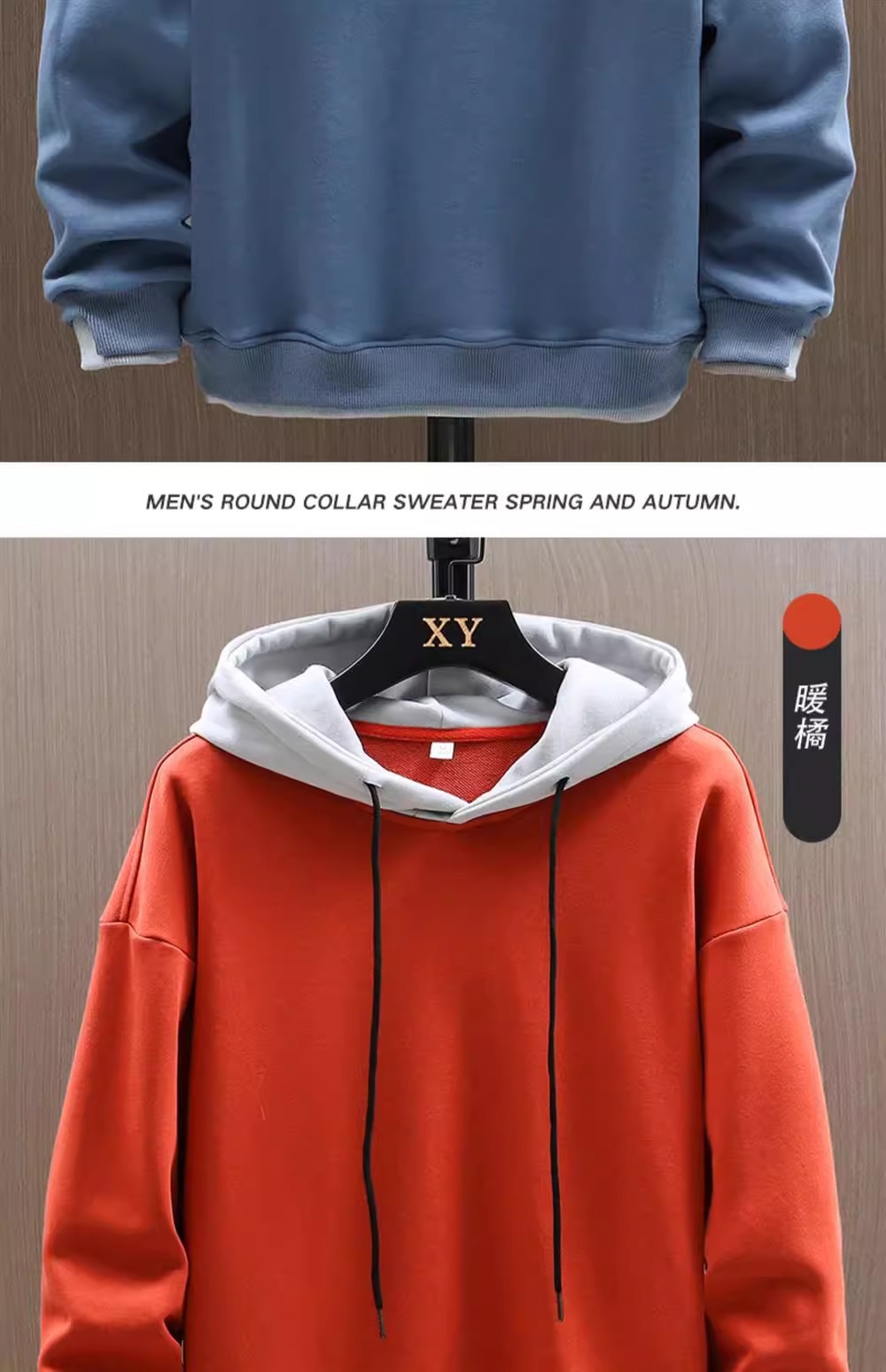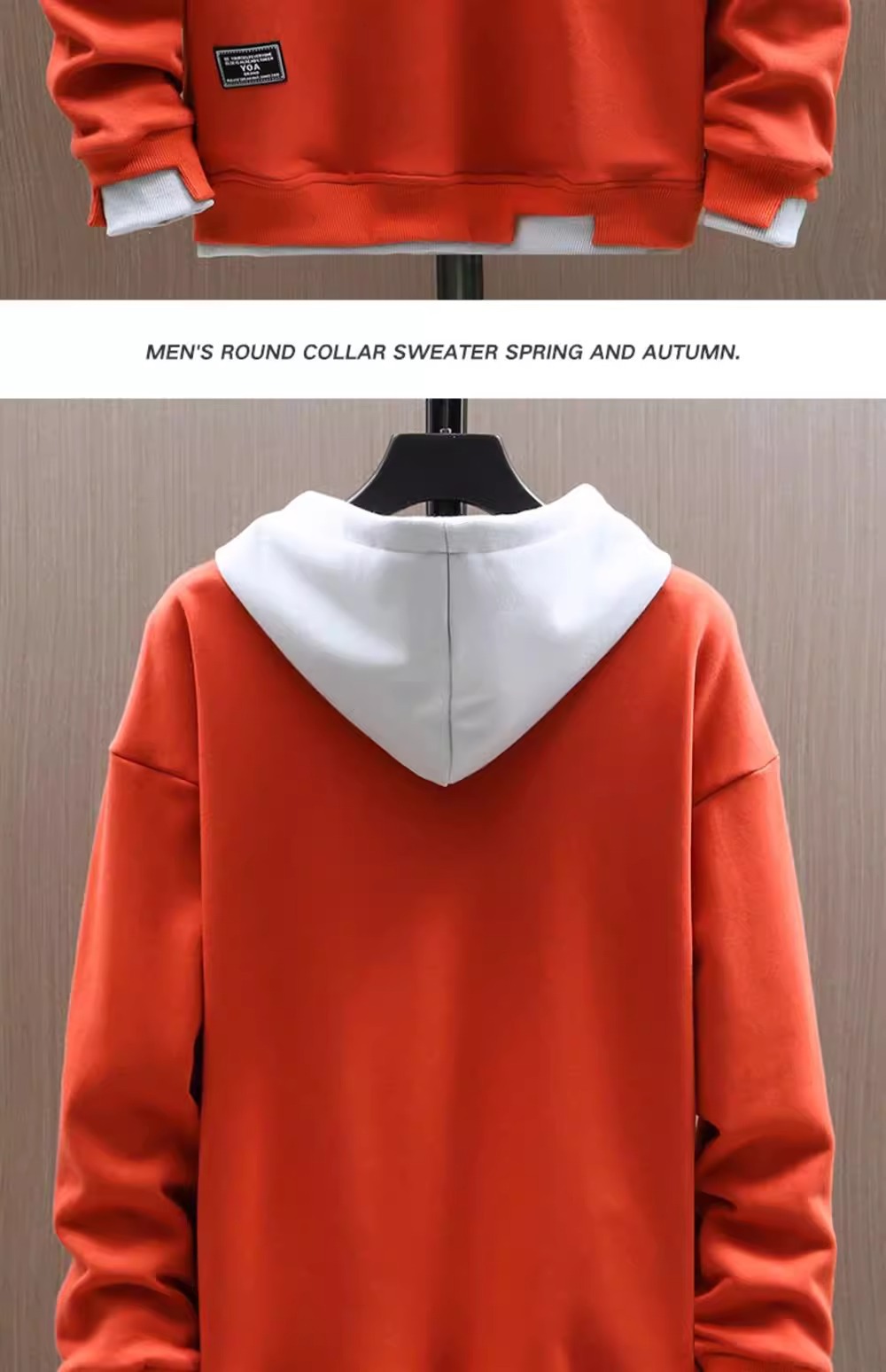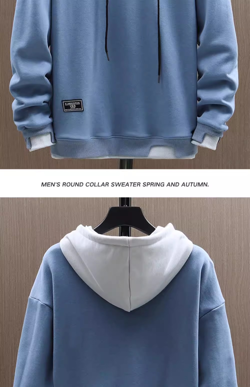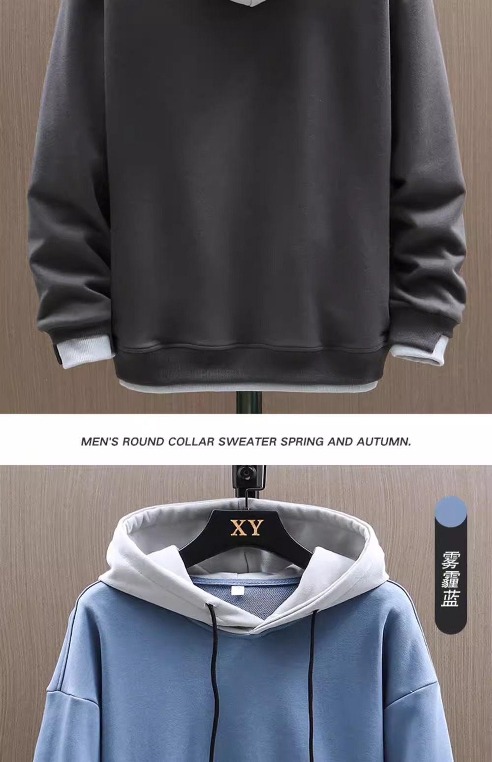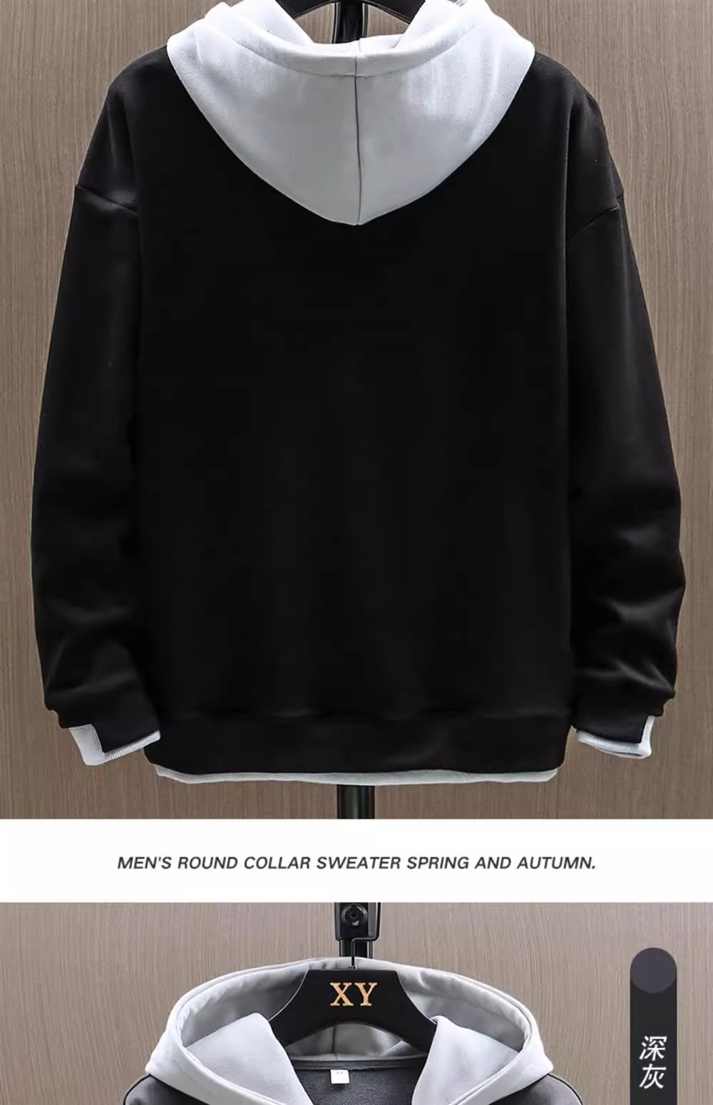 후드 스웨터 남자 2024 봄과 가을 일본 스타일 Instagram 패션 브랜드 가짜 투피스 루즈 스웨터 청소년 캐주얼 남성 의류