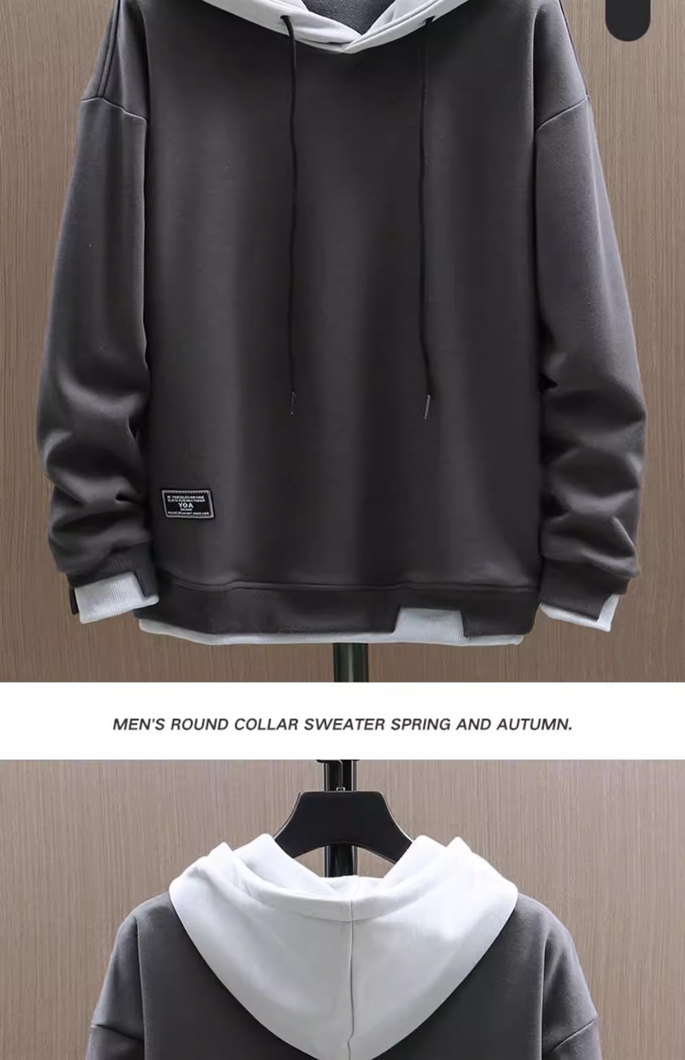 후드 스웨터 남자 2024 봄과 가을 일본 스타일 Instagram 패션 브랜드 가짜 투피스 루즈 스웨터 청소년 캐주얼 남성 의류스토어 가기