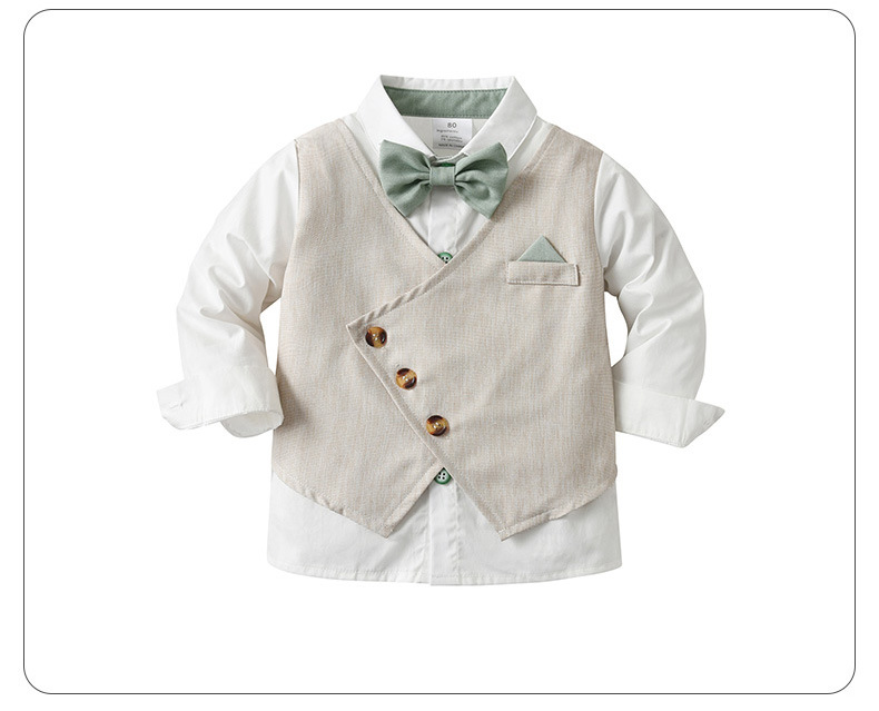 소스 공장 유럽과 미국의 작은 세트 두 조각 어린이 옷 아기 봄과 가을 가짜 조끼 긴 소매 소년 세트