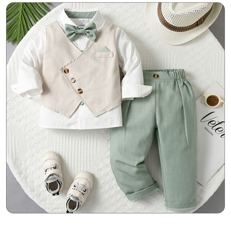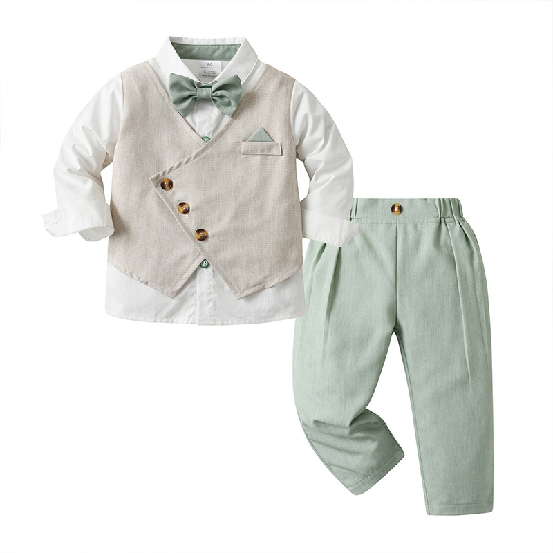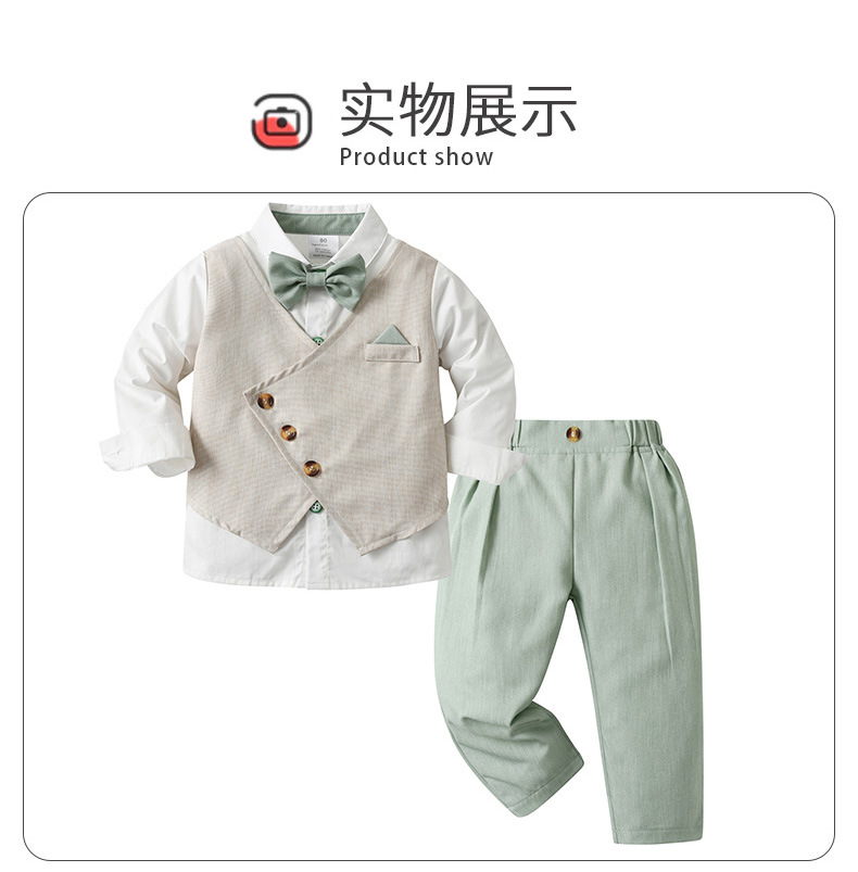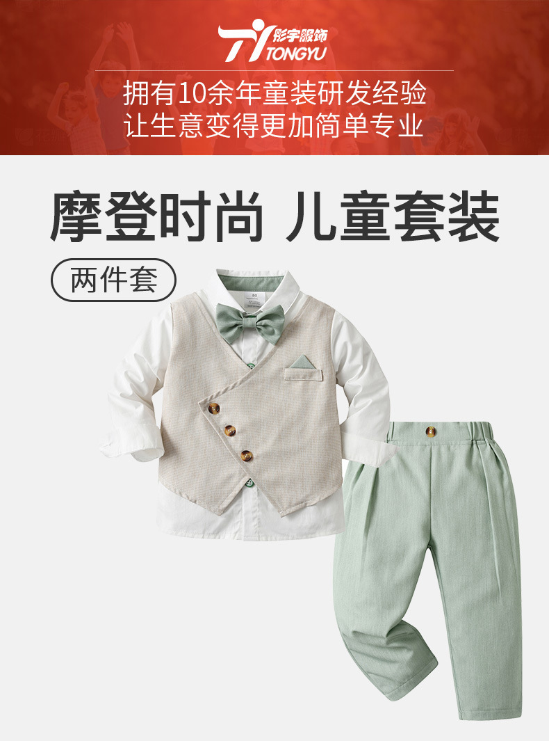 源头工厂欧美小西装两件套儿童衣服宝宝春秋款假马甲长袖男童套装