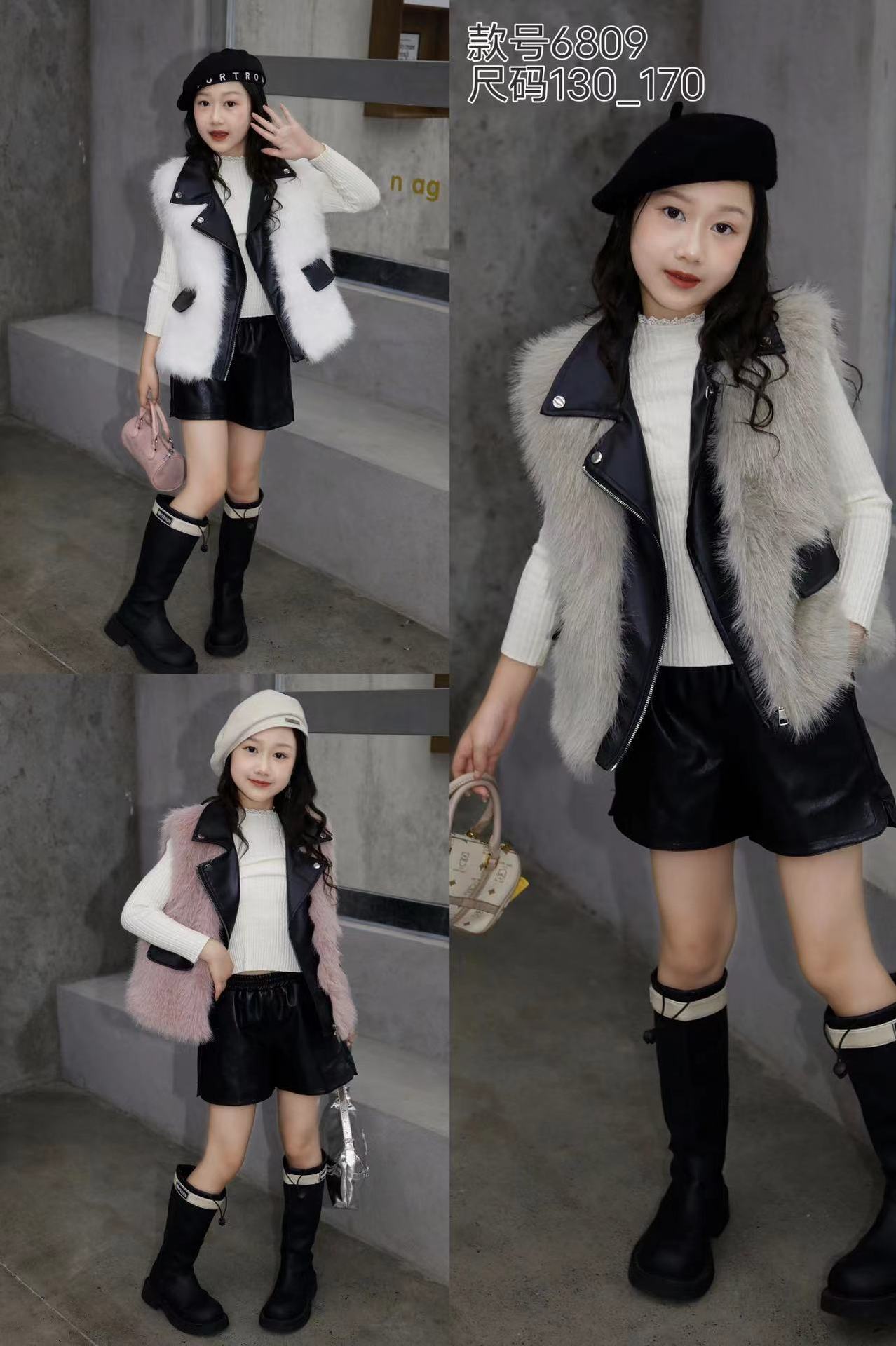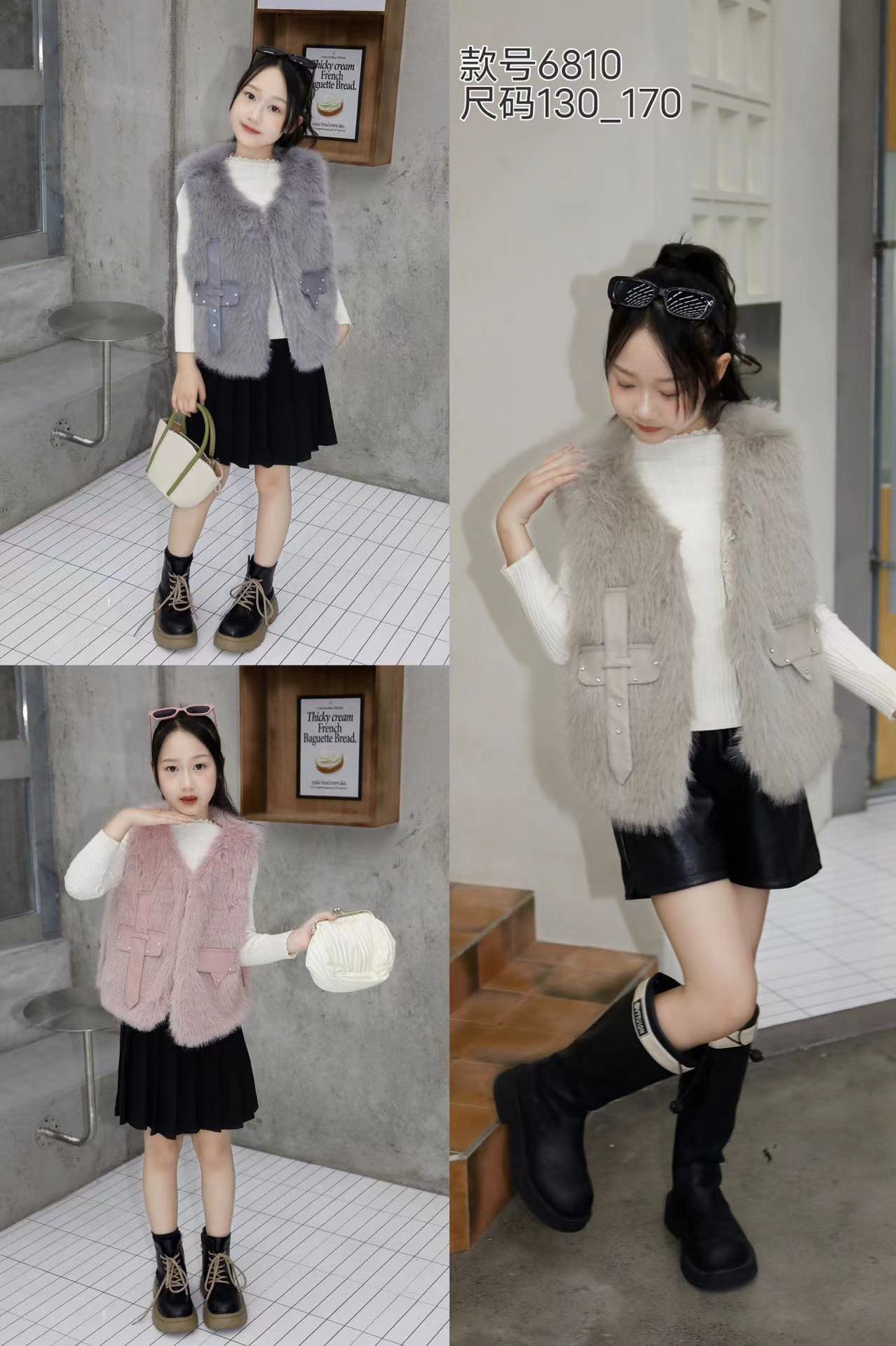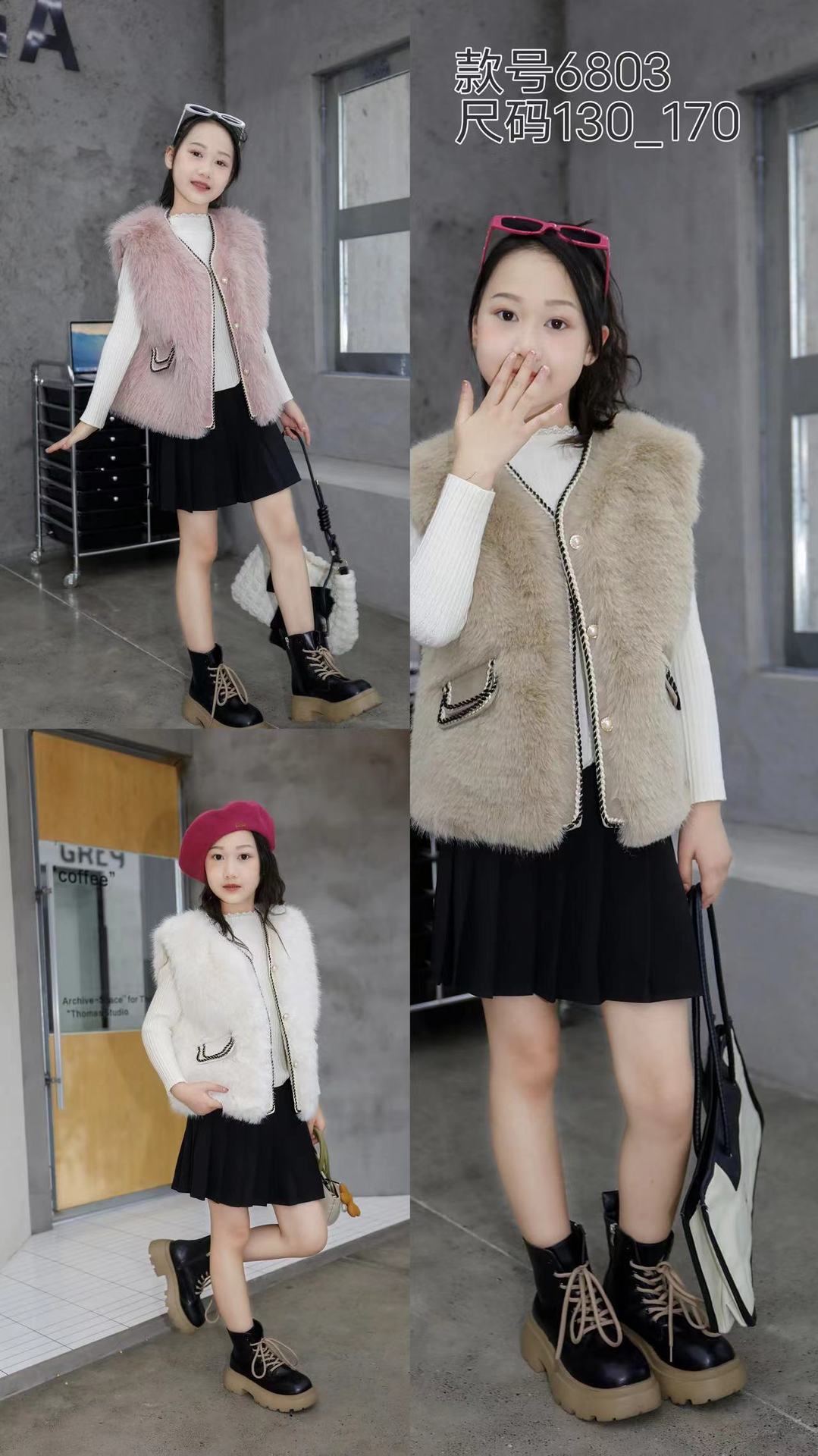 2024 새로운 소녀 가을과 겨울 조끼 모조 모피 조끼와 주름 치마 두꺼운 스웨터 두꺼운 대외 무역 국경 도매스토어 가기