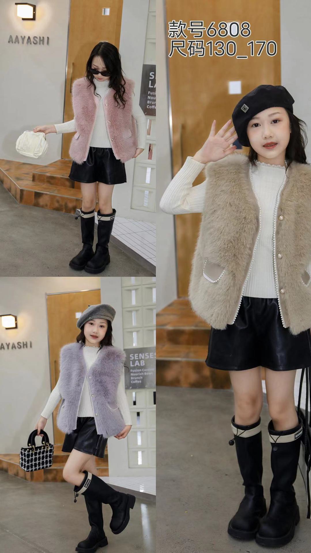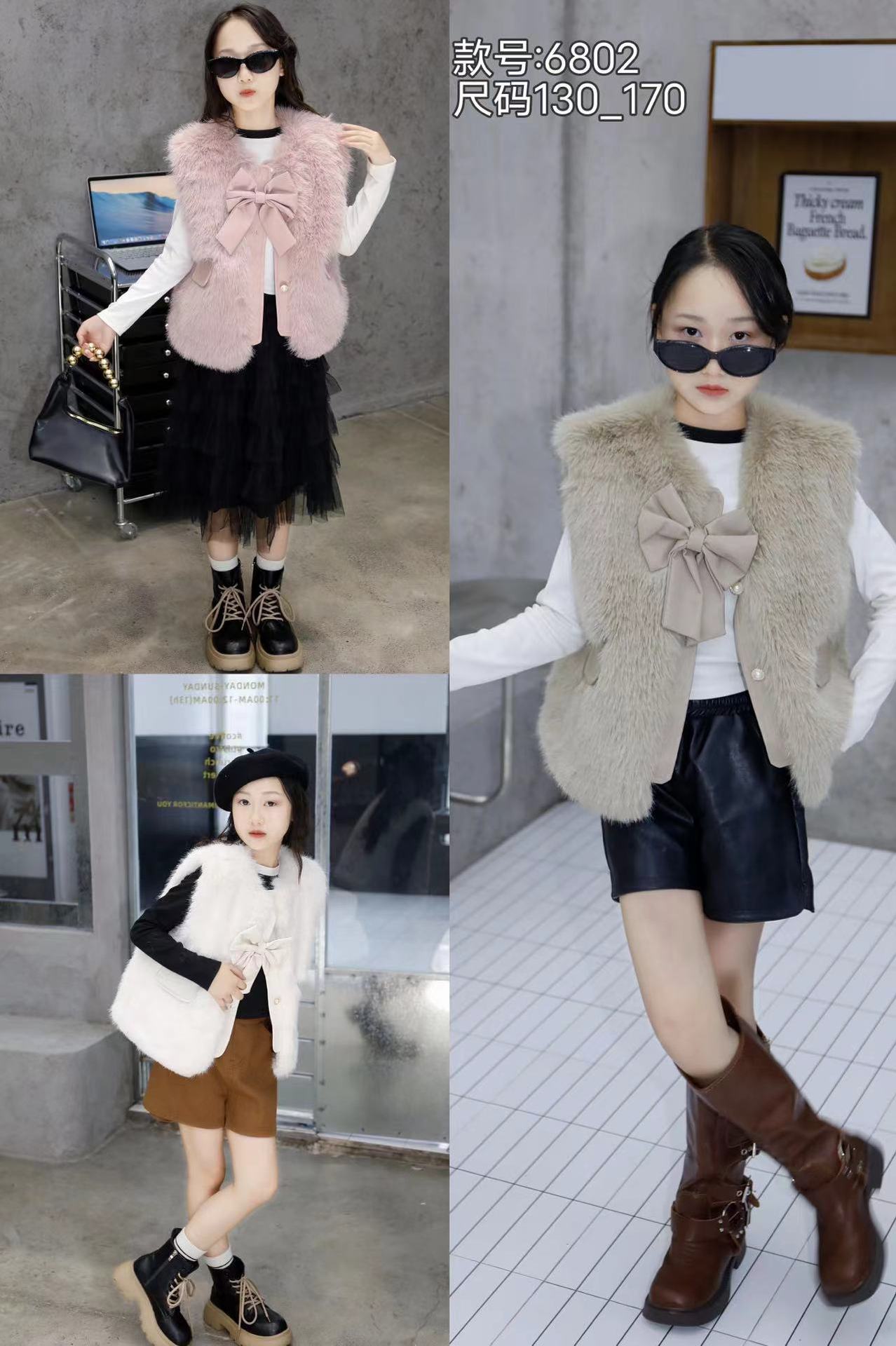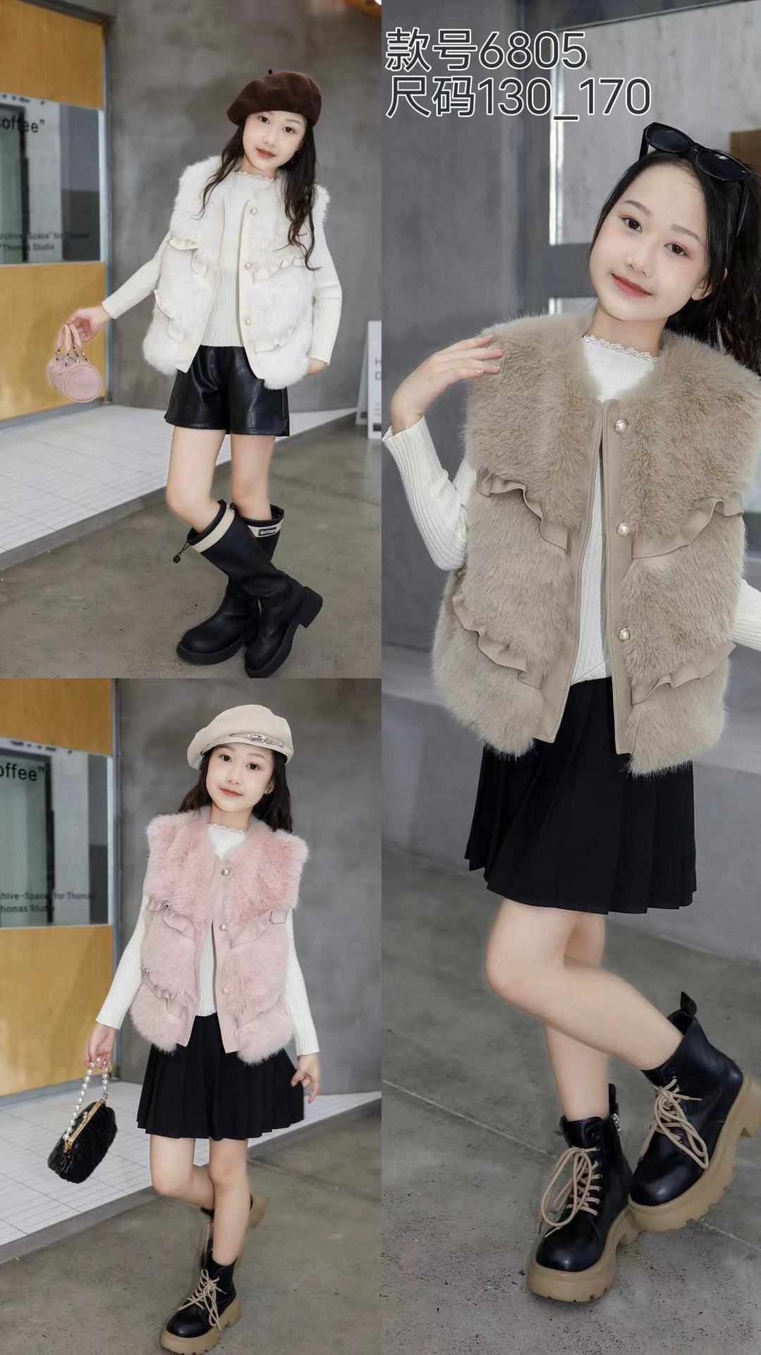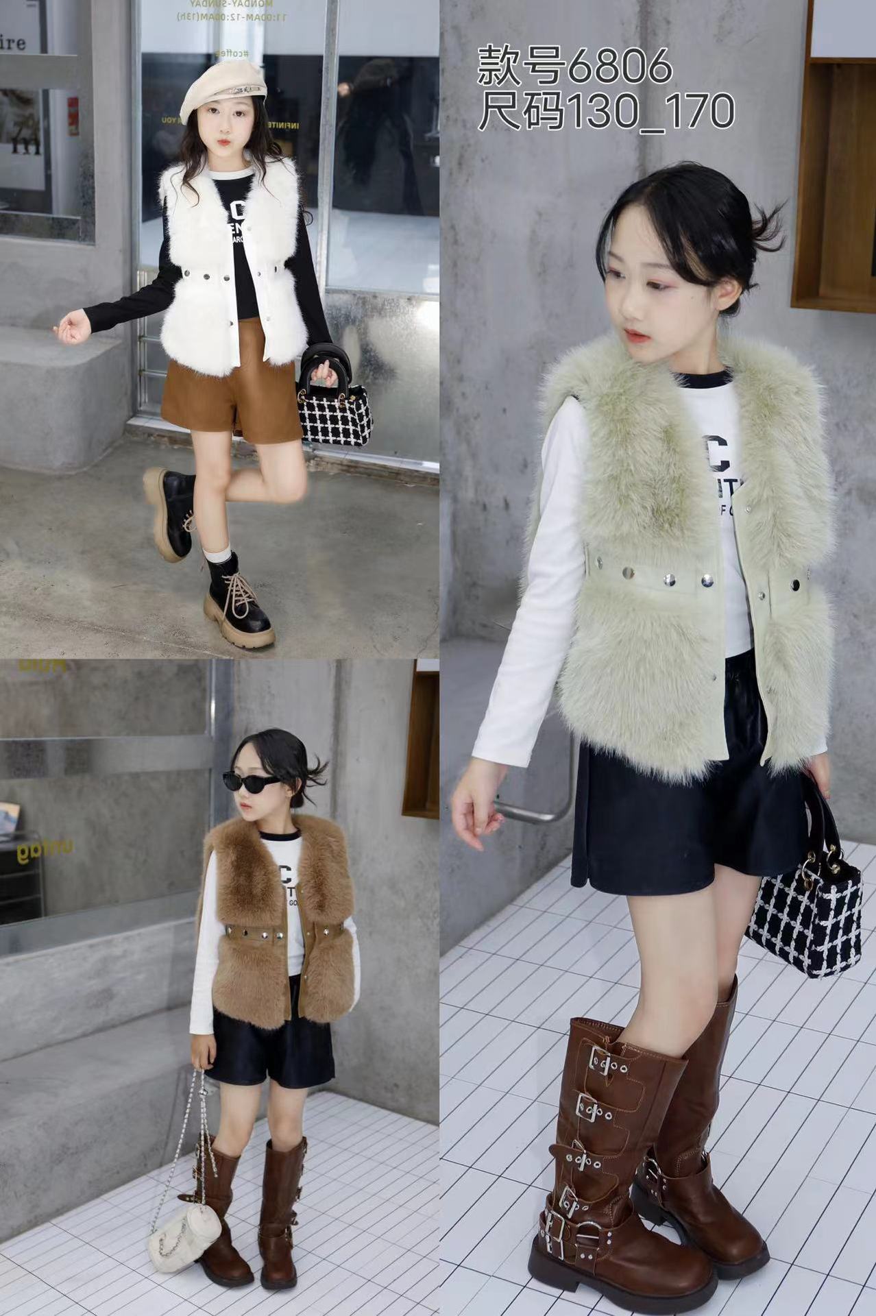 2024 새로운 소녀 가을과 겨울 조끼 모조 모피 조끼와 주름 치마 두꺼운 스웨터 두꺼운 대외 무역 국경 도매스토어 가기