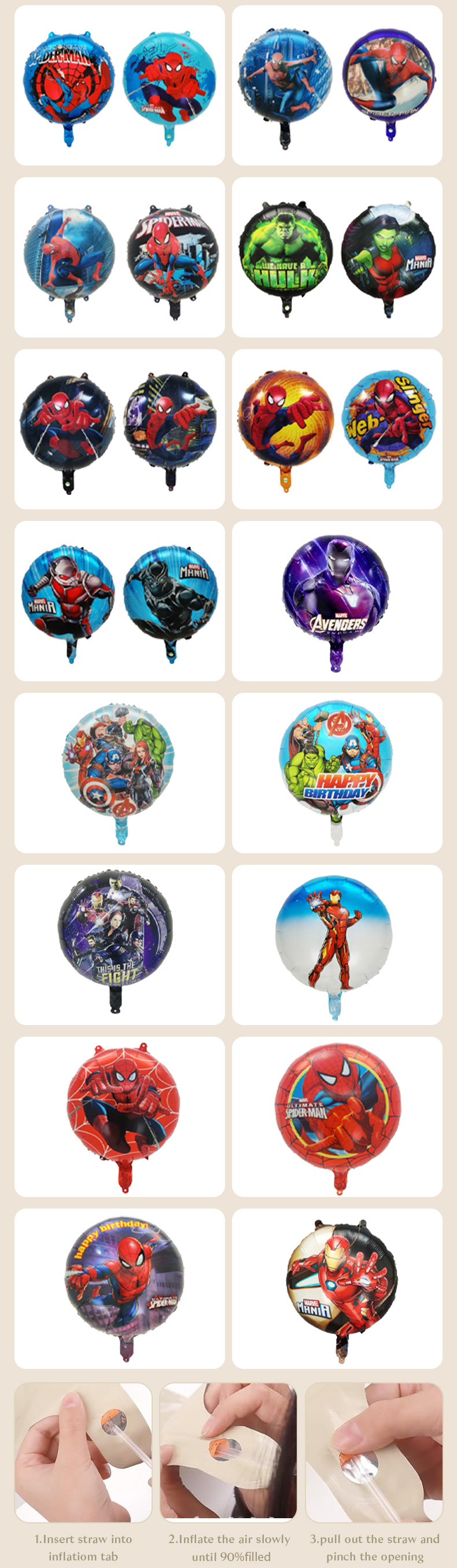 국경 간 신제품 슈퍼 히어로 스파이더 맨 아이언 맨 만화 떠 다니는 공기 알루미늄 필름 풍선 파티 장식 어린이스토어 가기