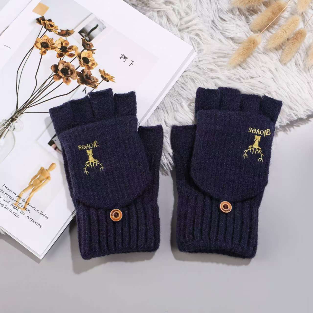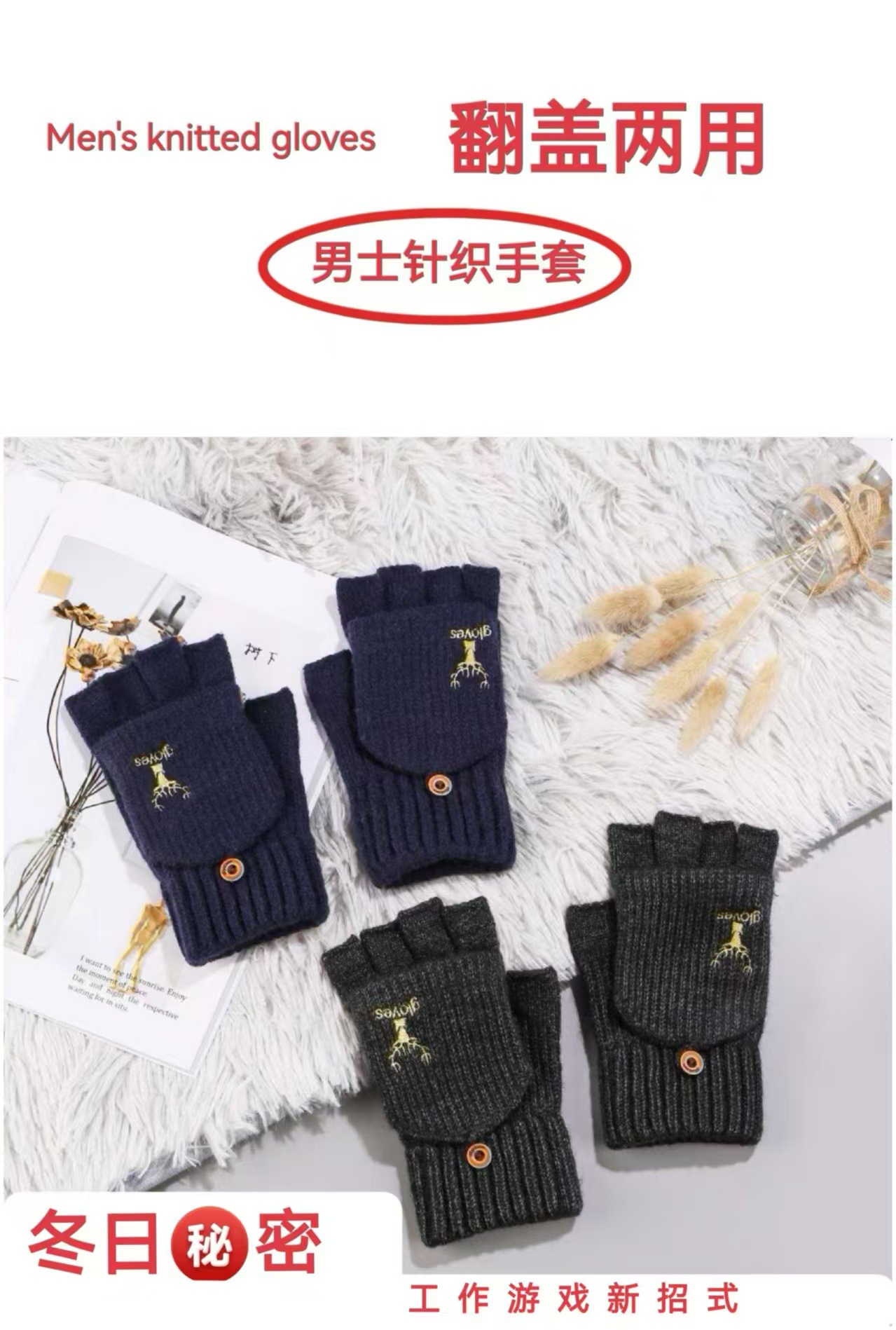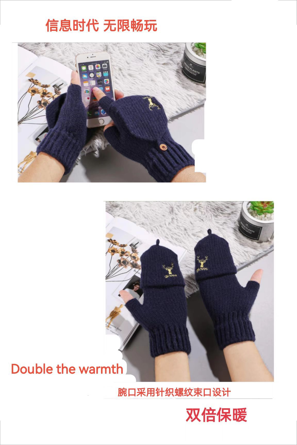 공장 도매 반 손가락 플립 남성 니트 두꺼운 학생 쓰기 터치 스크린 사무실 겨울 따뜻한 장갑 손가락