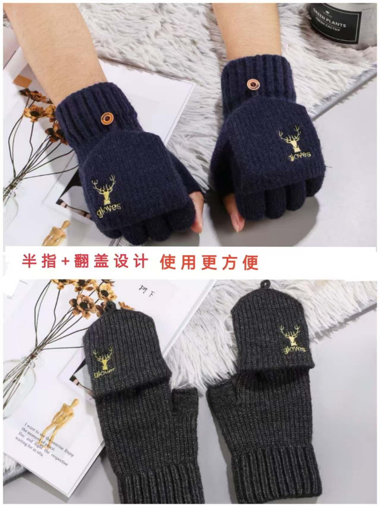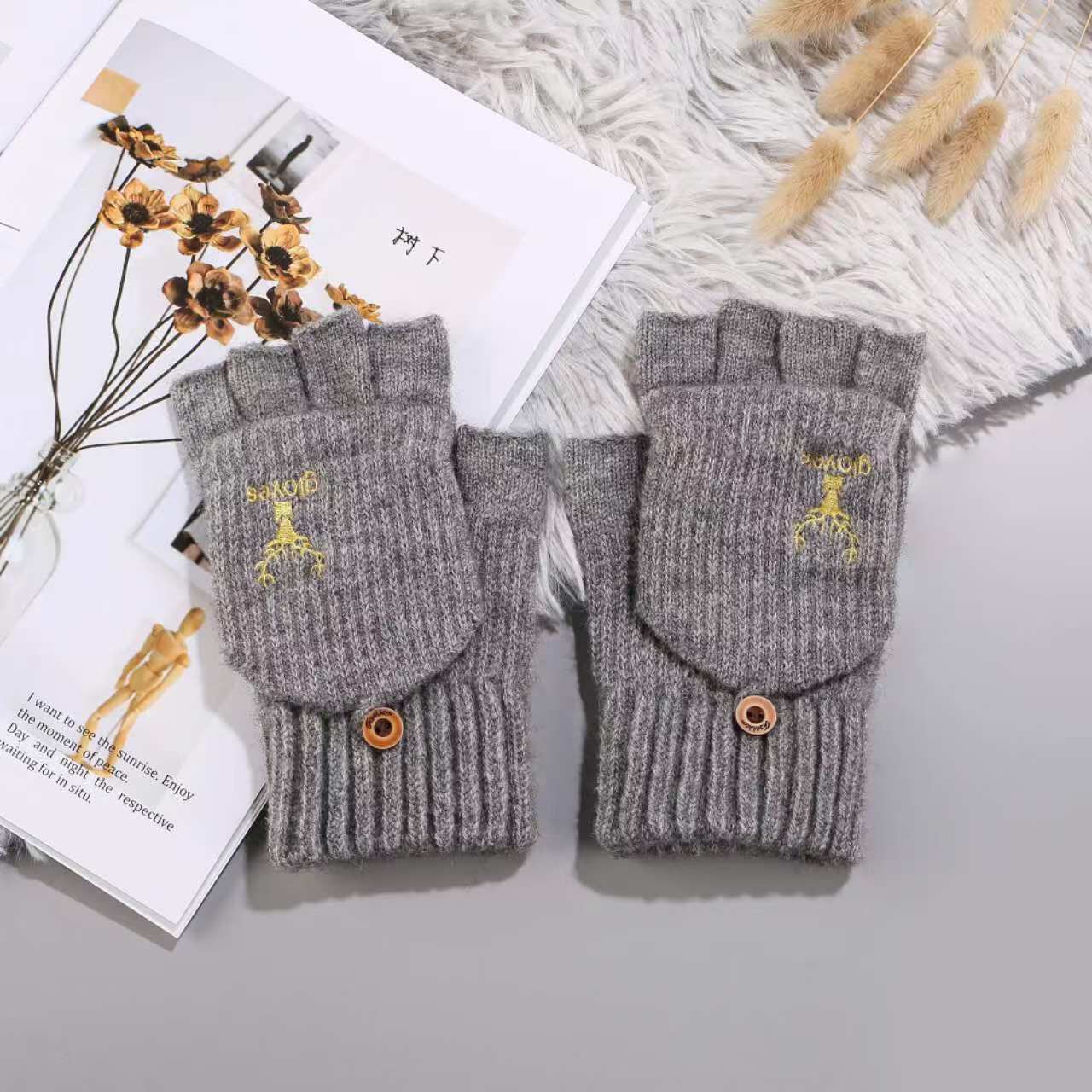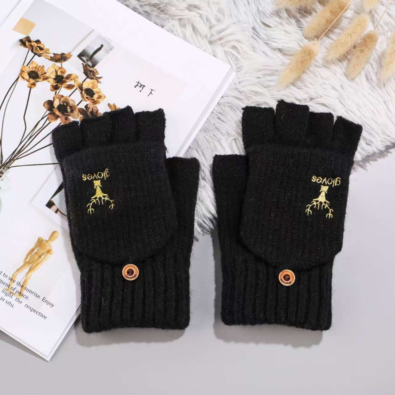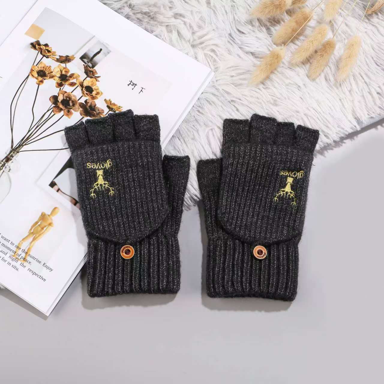 공장 도매 반 손가락 플립 남성 니트 두꺼운 학생 쓰기 터치 스크린 사무실 겨울 따뜻한 장갑 손가락