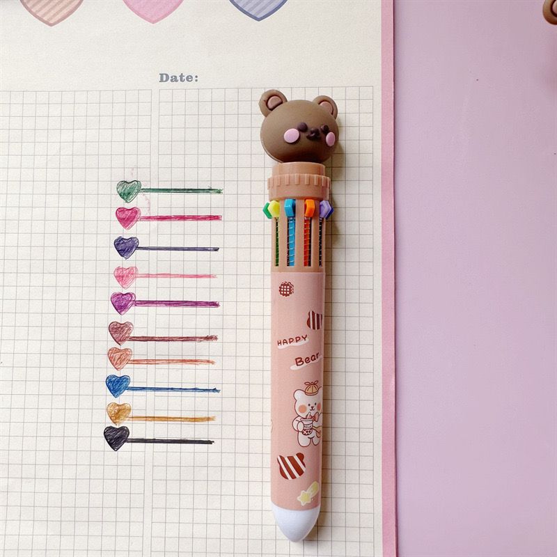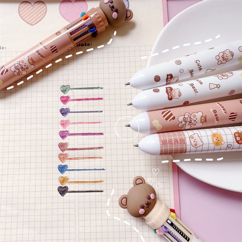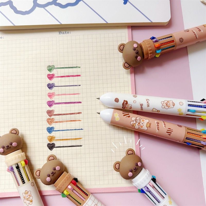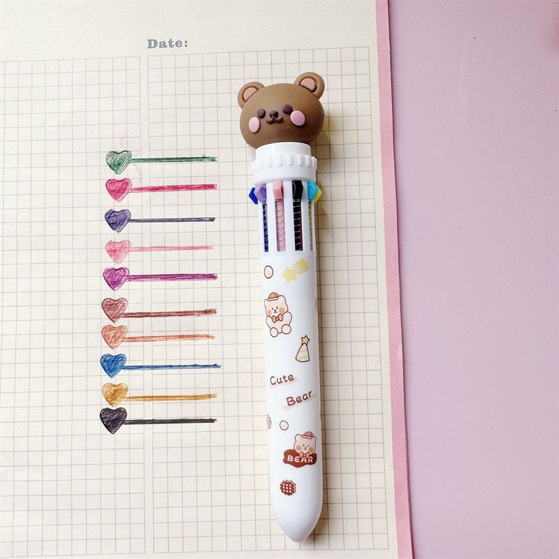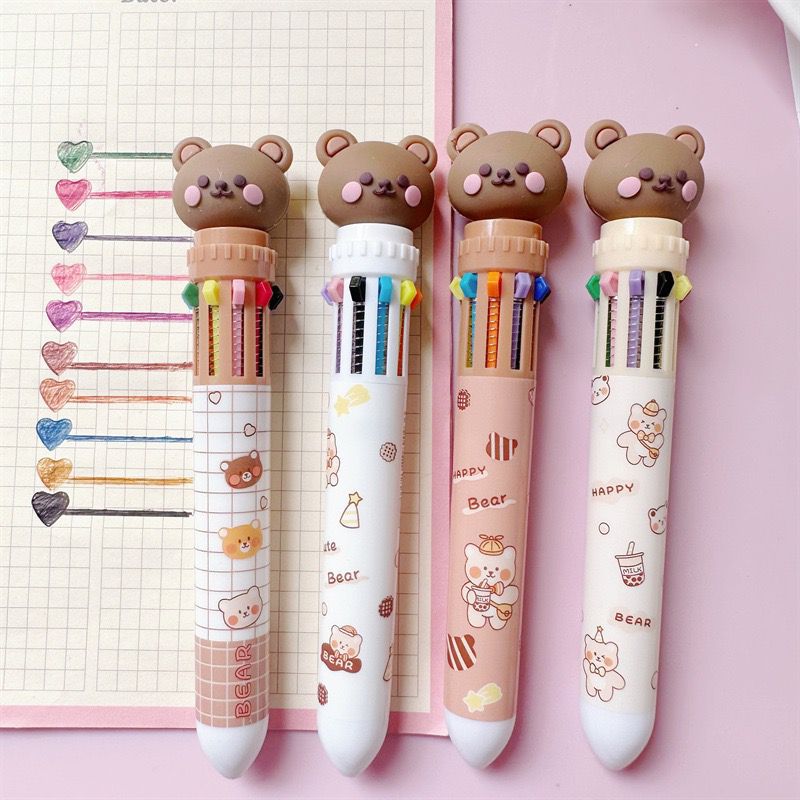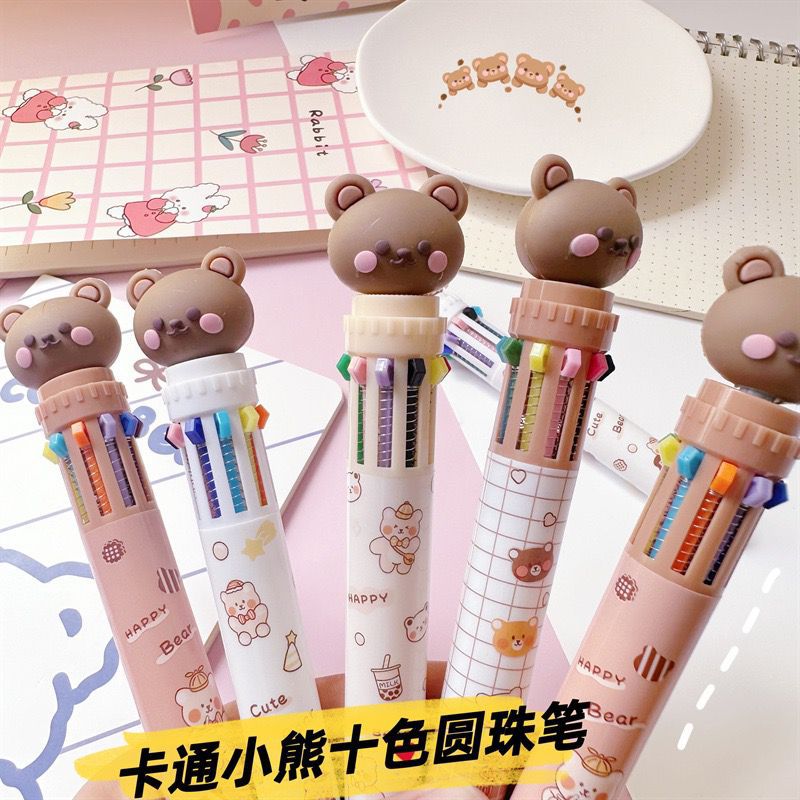 만화 귀여운 곰 멀티 컬러 펜 학생 10 대 1 프레스 컬러 볼펜 다기능 손 계정 펜 0.5