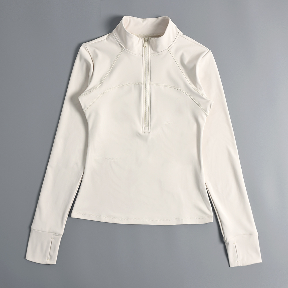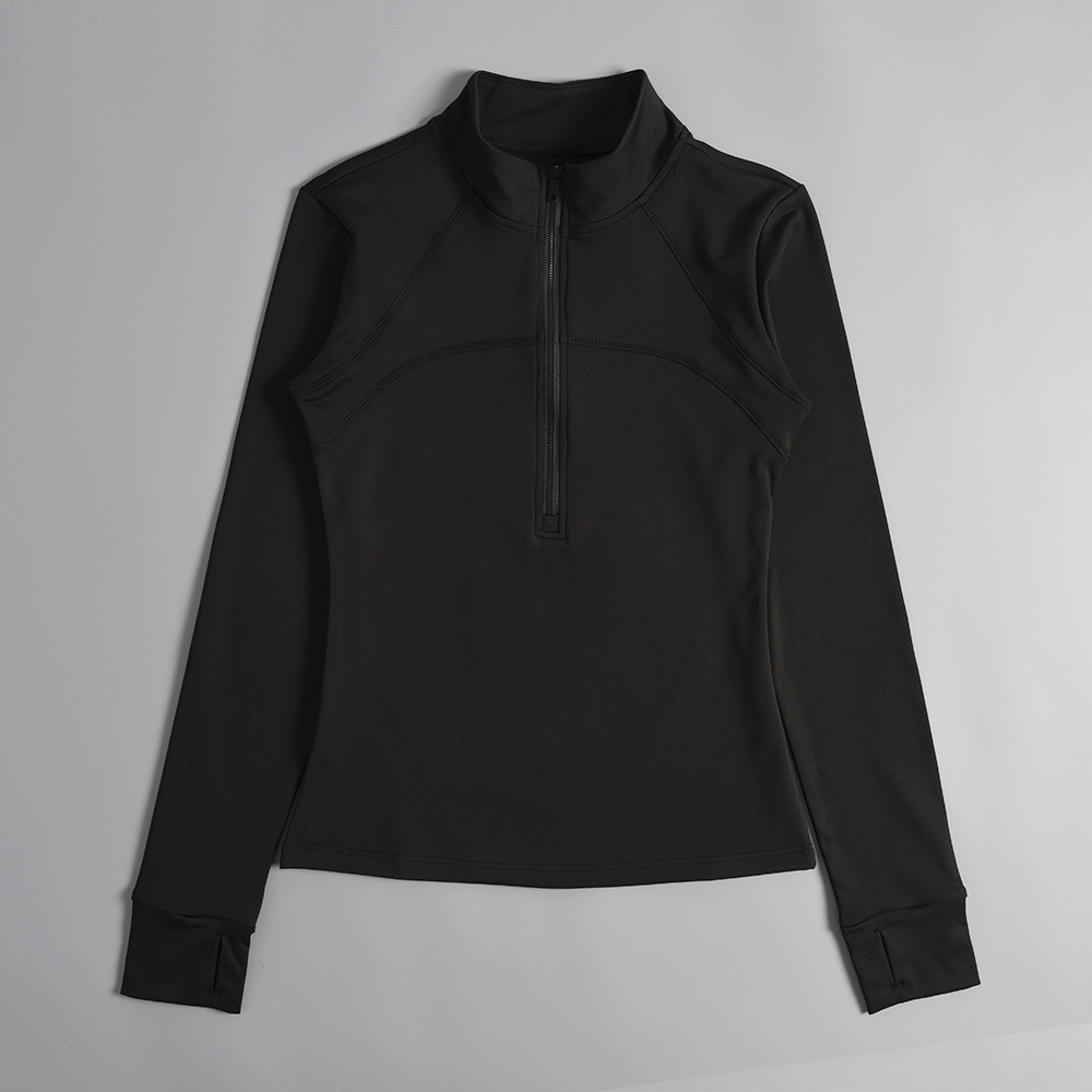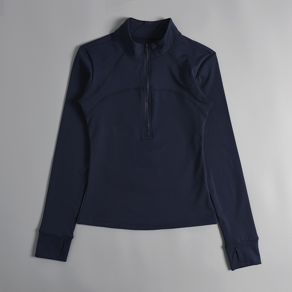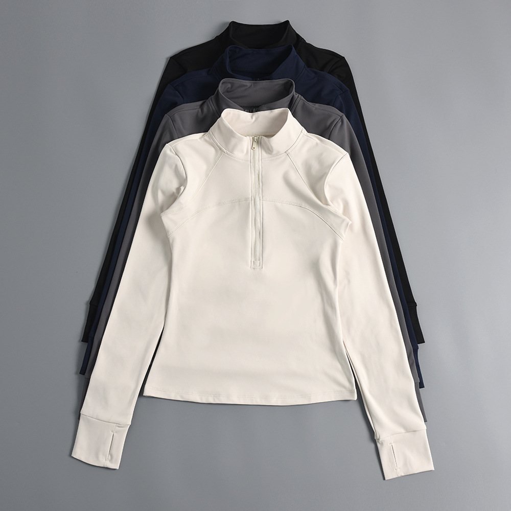 요가 의류 여성용 하프 지퍼 슬림 핏 퀵 드라이 슬림 세로 목 스포츠 탑 긴팔 탄성 훈련 달리기 피트니스 의류