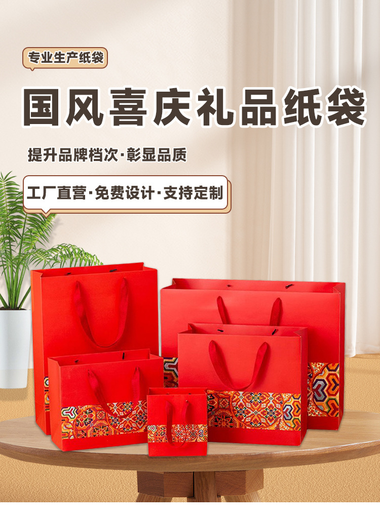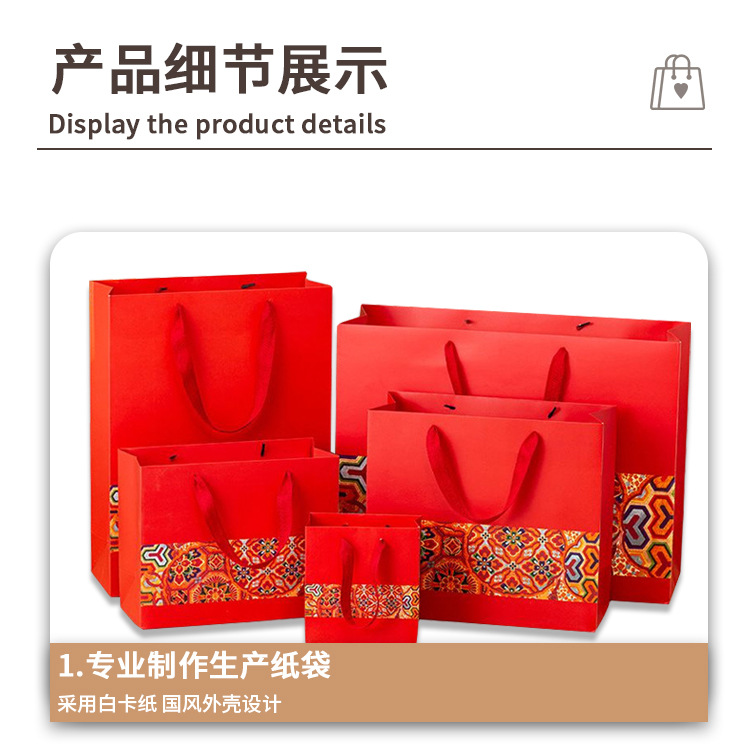 레트로 민족 스타일 그물 빨간 포장 가방 중국 스타일 선물 가방 빨간 핸드백 손 선물 가방 종이 가방 도매