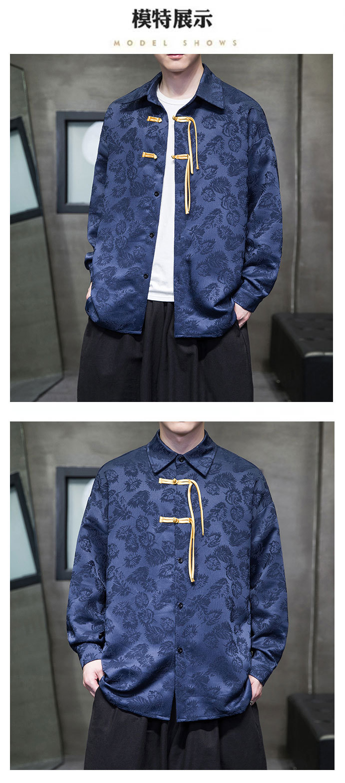 남성용 중국 스타일 빨간색 셔츠 2024 새로운 중국 스타일 자카드 당나라 정장 Hanfu 고급 긴팔 셔츠 재킷 옷깃스토어 가기