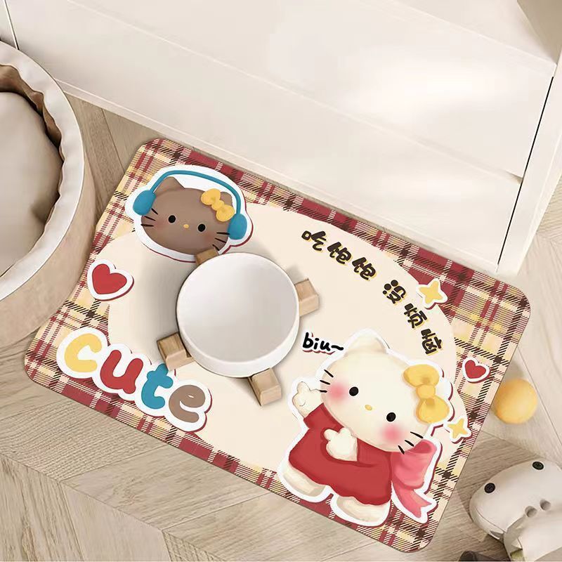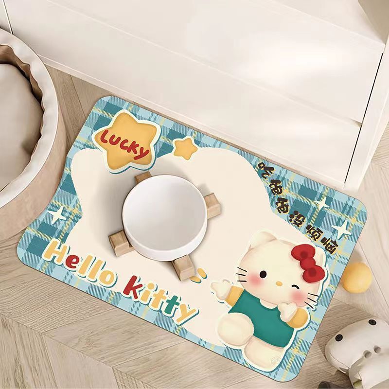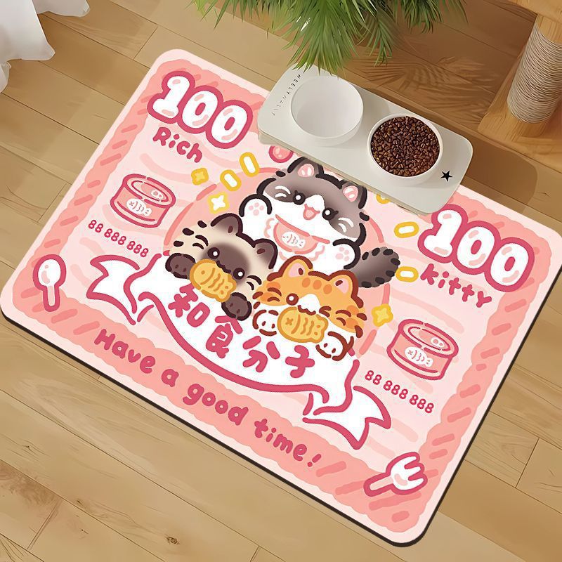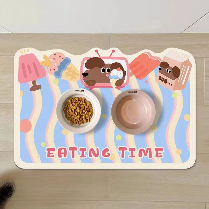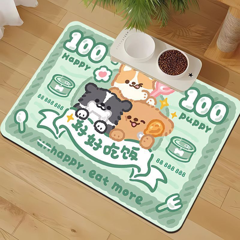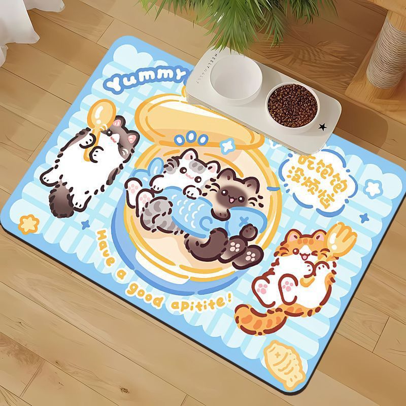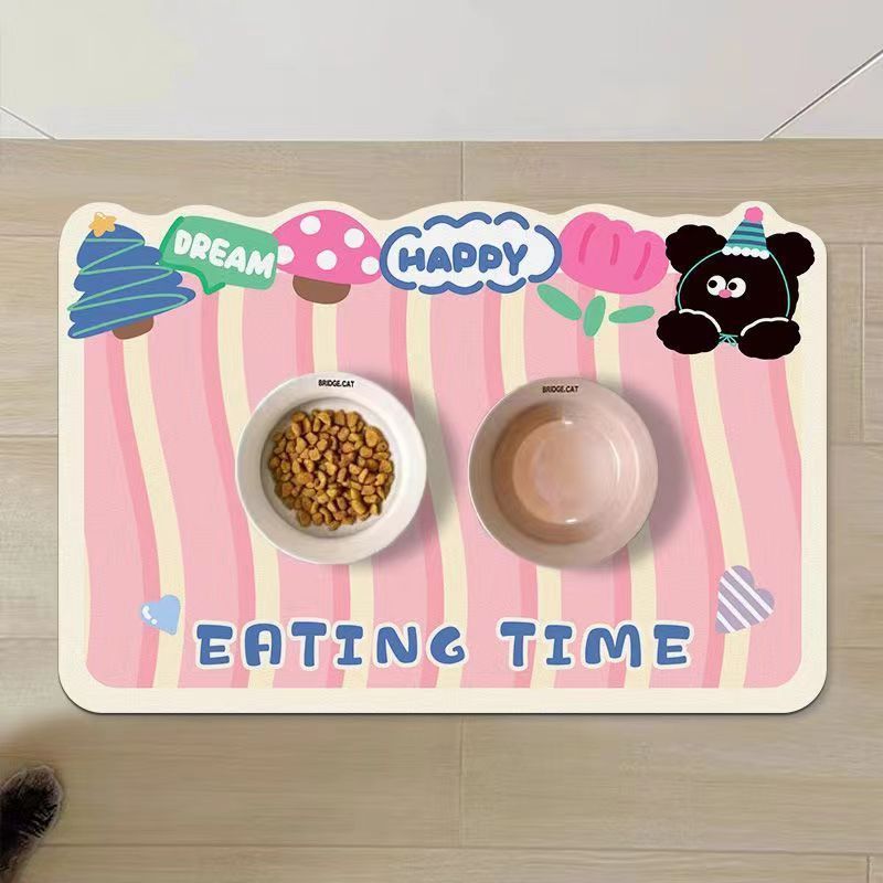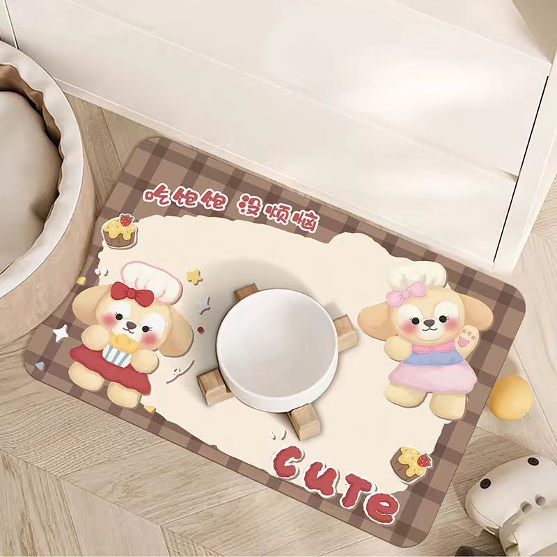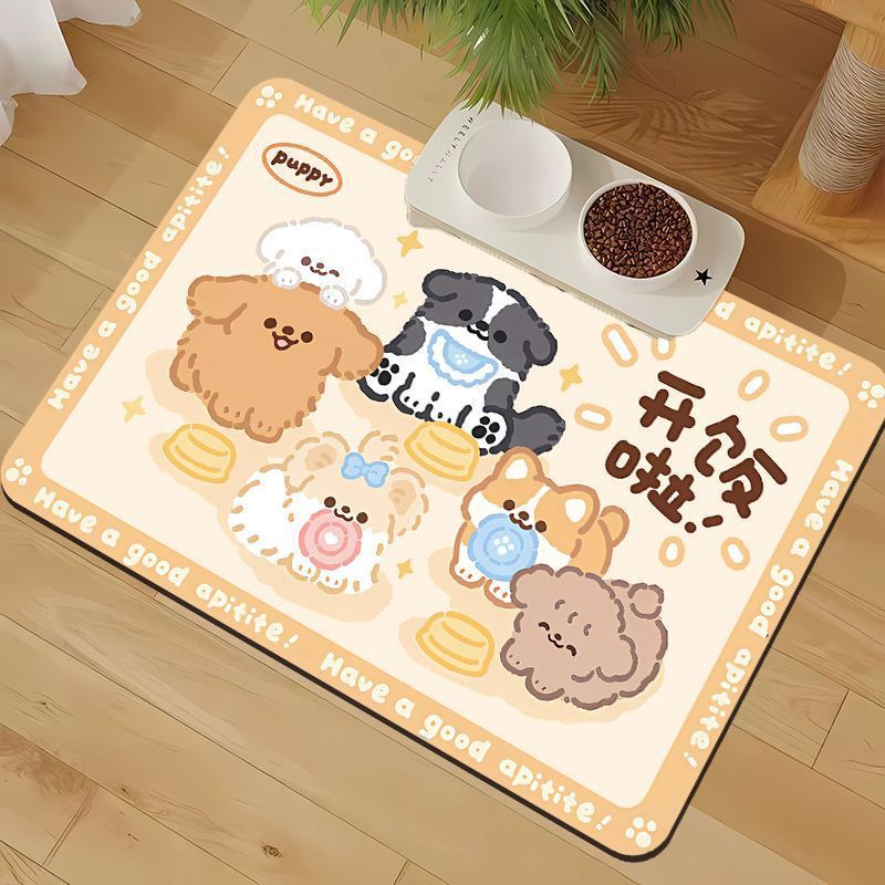 • 만화 귀여운 고양이와 개 유니버설 규조토 진흙 흡수성 플레이스 매트 애완 동물 누출 방지 음식 그릇 먹고 관리하기 쉬운 매트