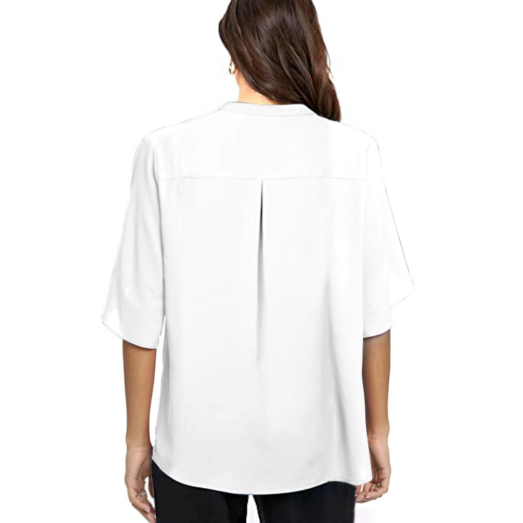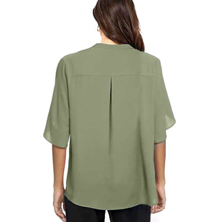 여성 유럽과 미국의 대외 무역 여성 반팔 우아한 캐주얼 솔리드 컬러 V 넥 쉬폰 셔츠 여성의 2024 새로운 스타일