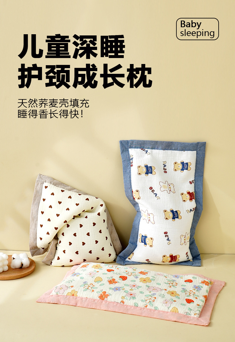 아기 베개 아기 0-1-3-6 세 어린이 거즈 베개 메밀 껍질 베개 어린이 유치원 베개스토어 가기