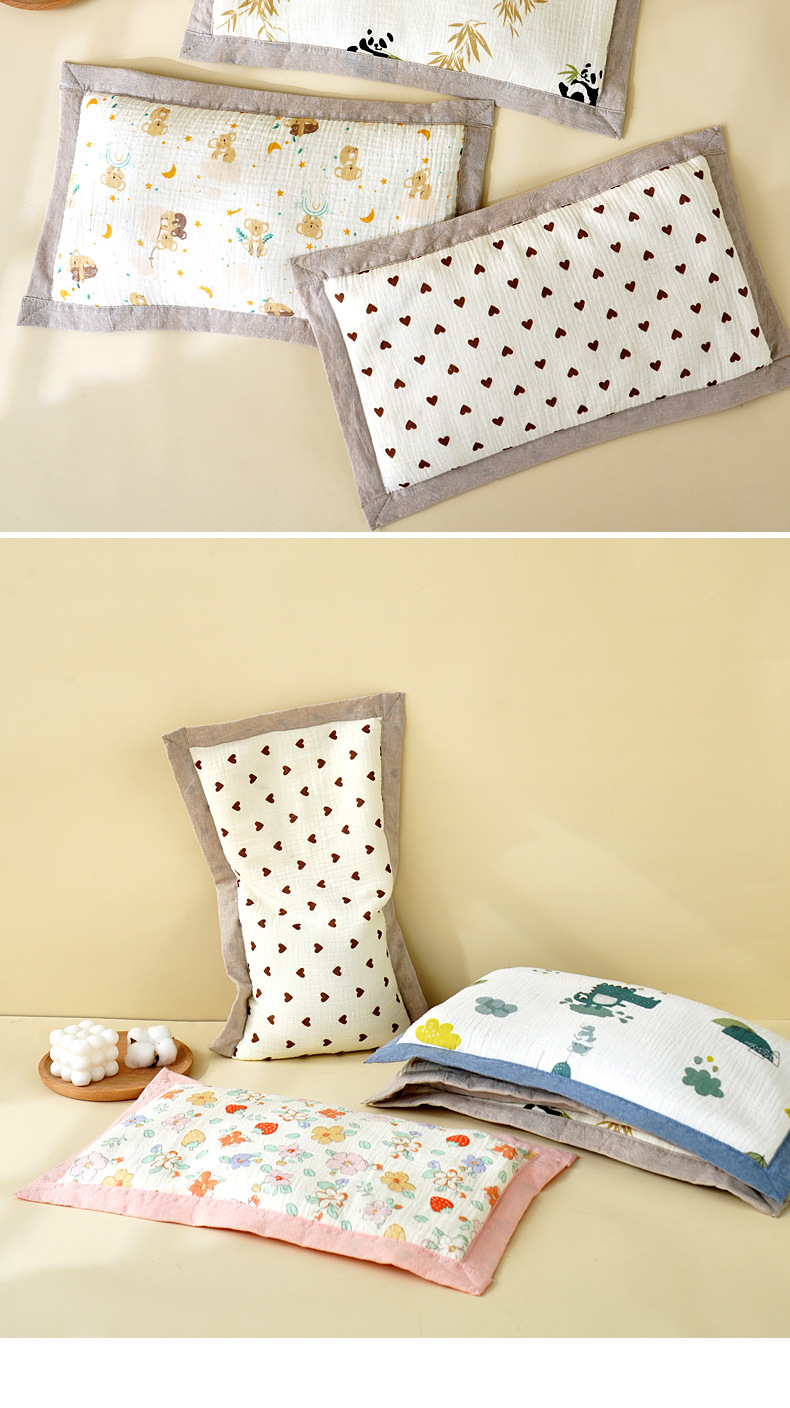 아기 베개 아기 0-1-3-6 세 어린이 거즈 베개 메밀 껍질 베개 어린이 유치원 베개