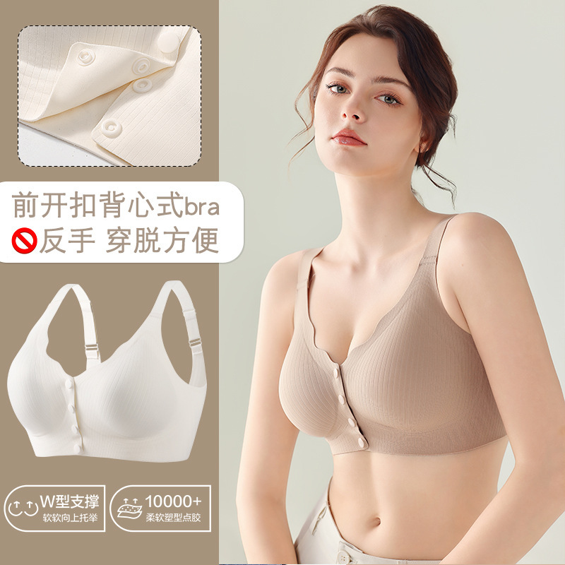 어머니의 추적없는 속옷 여성의 얇고 편리한 전면 개방 버클 프리 스틸 링 조정 가능한 처짐 방지 푸시 업 중년 및 노인 브라스토어 가기