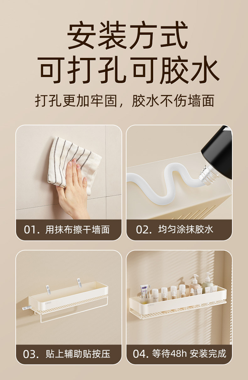 크림 스타일 화장실 세탁기 보관 랙 펀치 무료 욕실 욕실 화장실 벽걸이 보관 선반