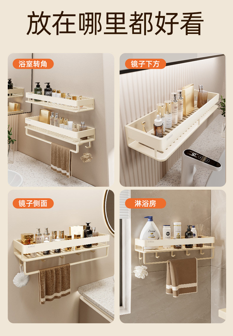 크림 스타일 화장실 세탁기 보관 랙 펀치 무료 욕실 욕실 화장실 벽걸이 보관 선반스토어 가기