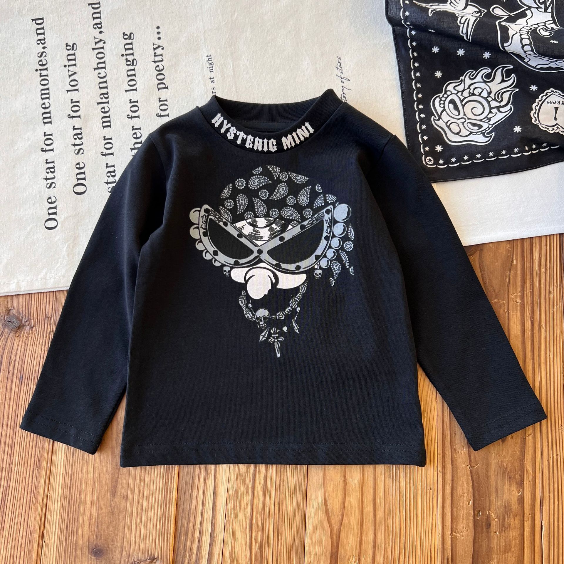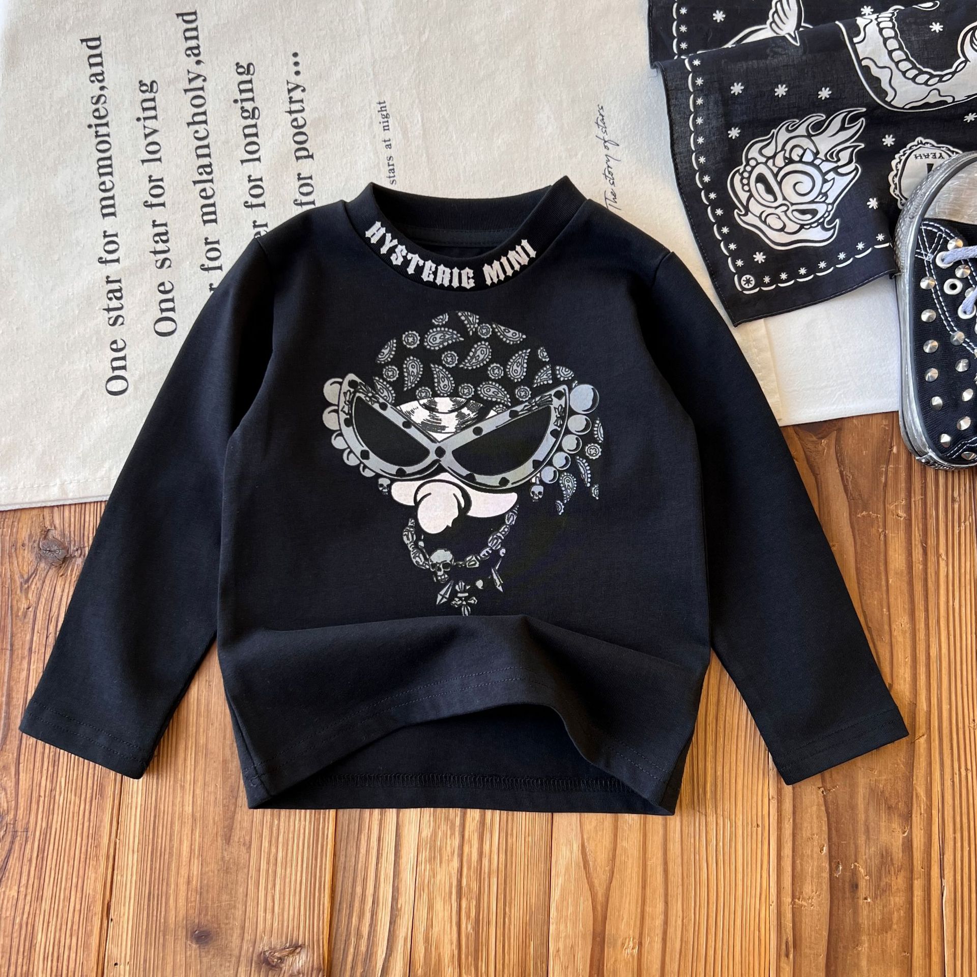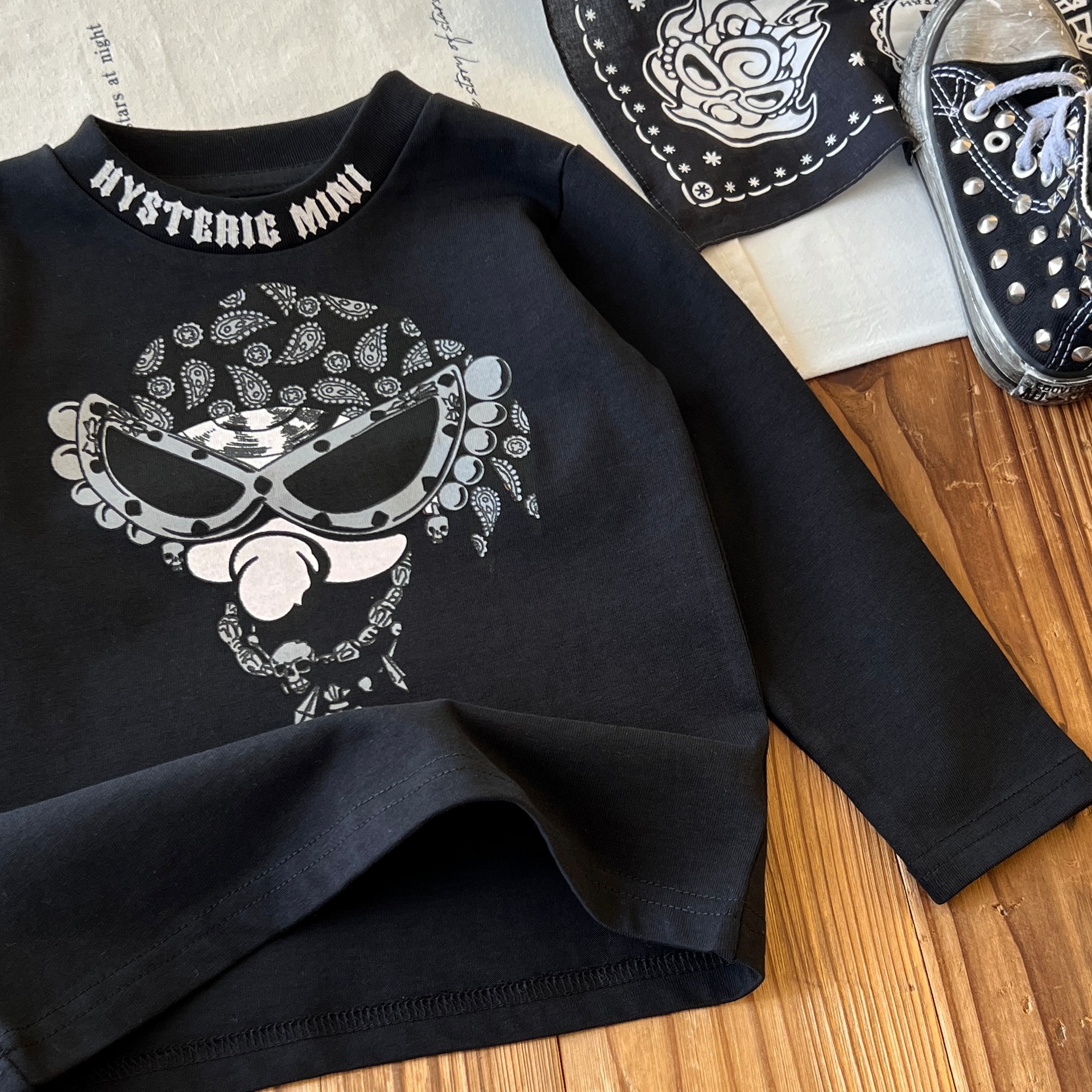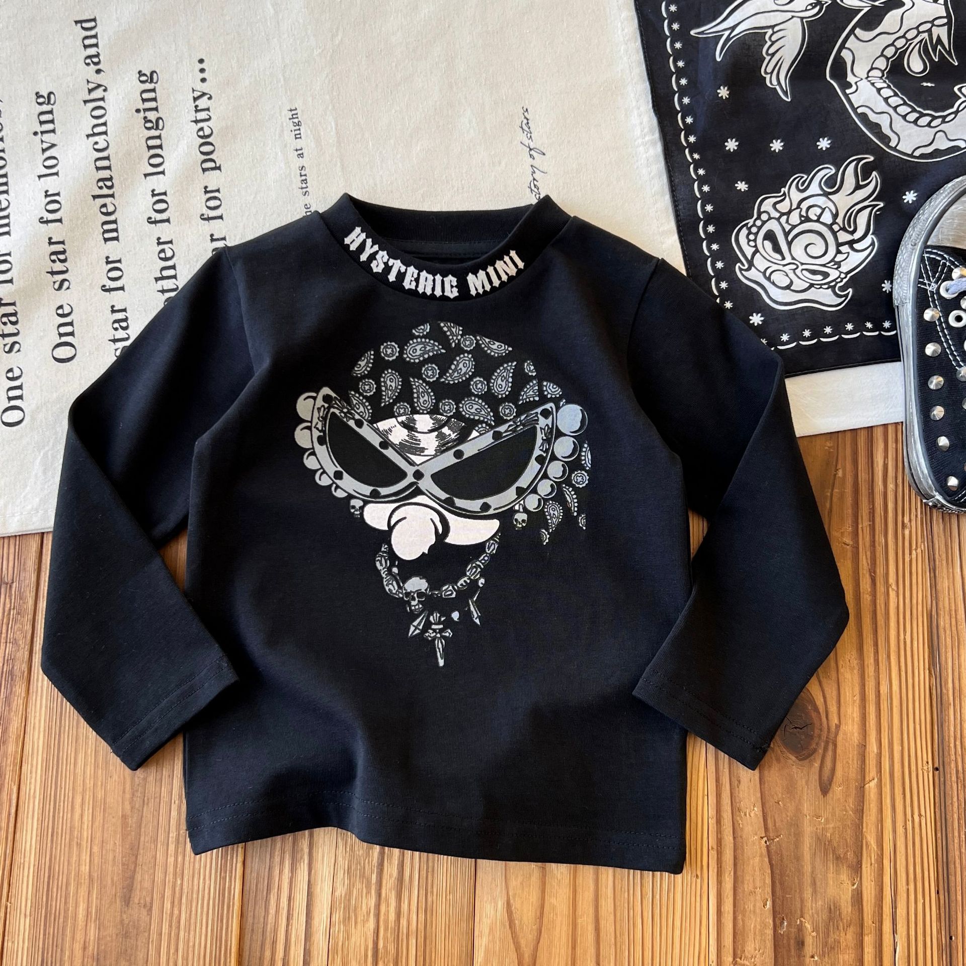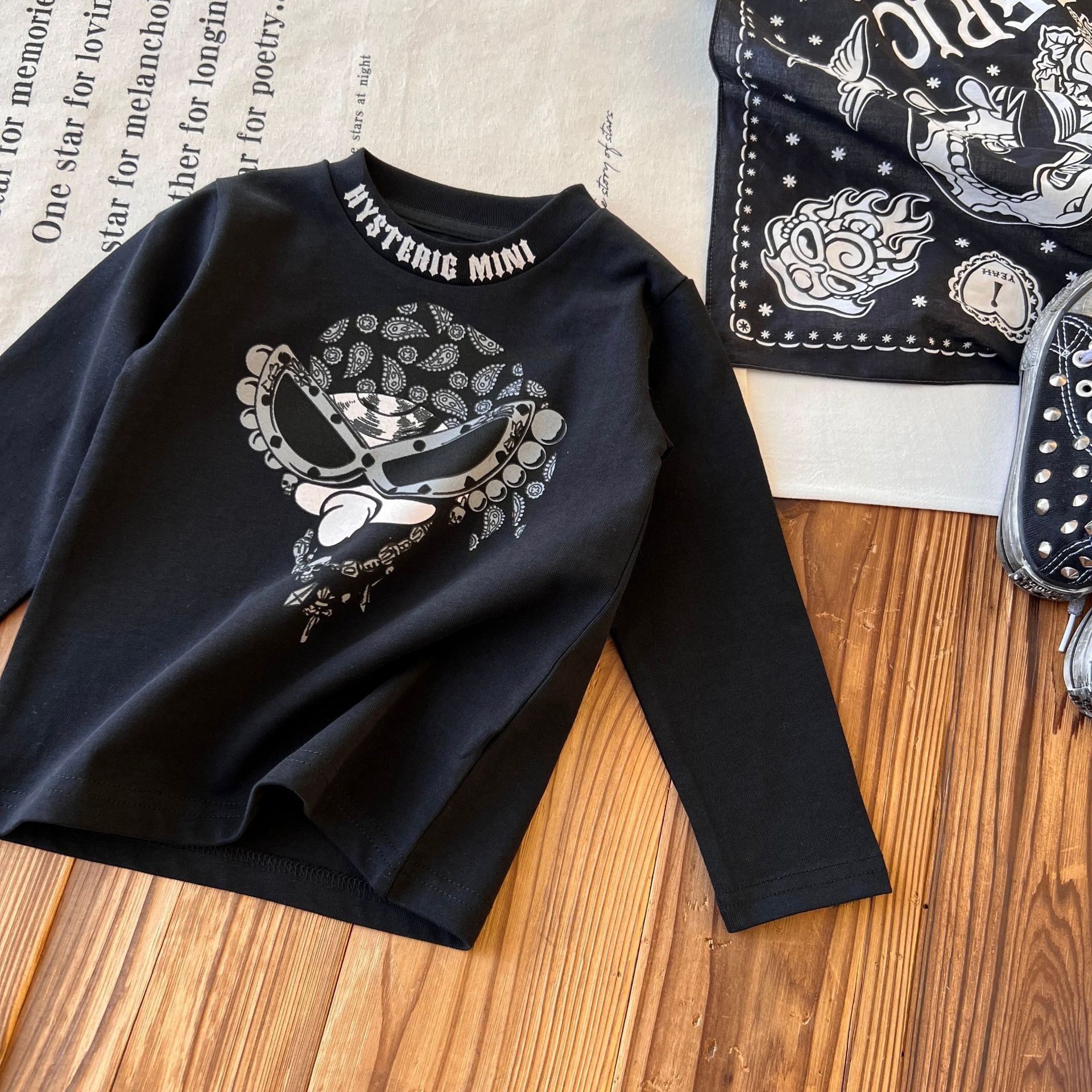 [재고] 일본 중세 유행 어린이 블랙 슈퍼 어린이 봄 가을 낙서 유행 쿨 긴 소매 티셔츠 탑