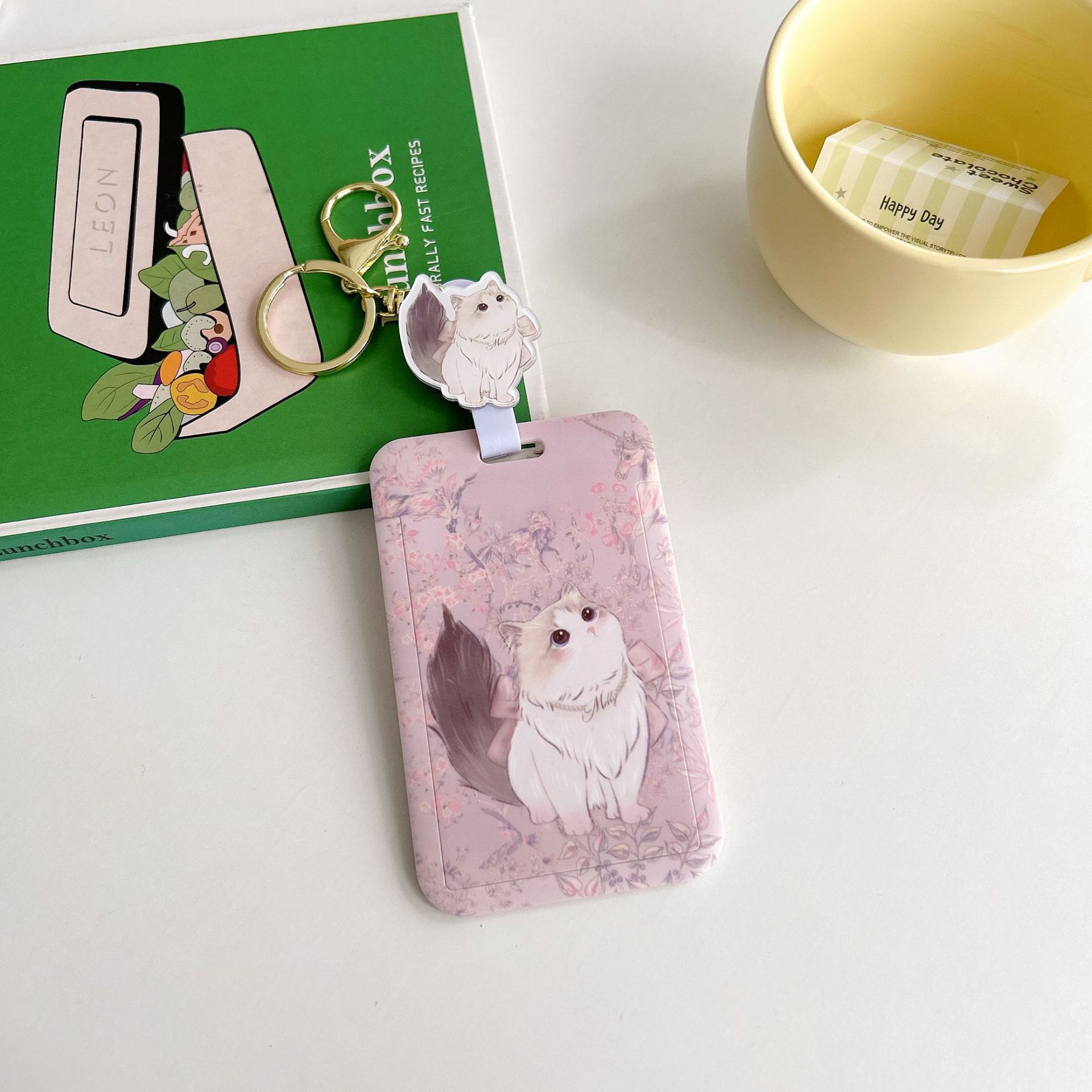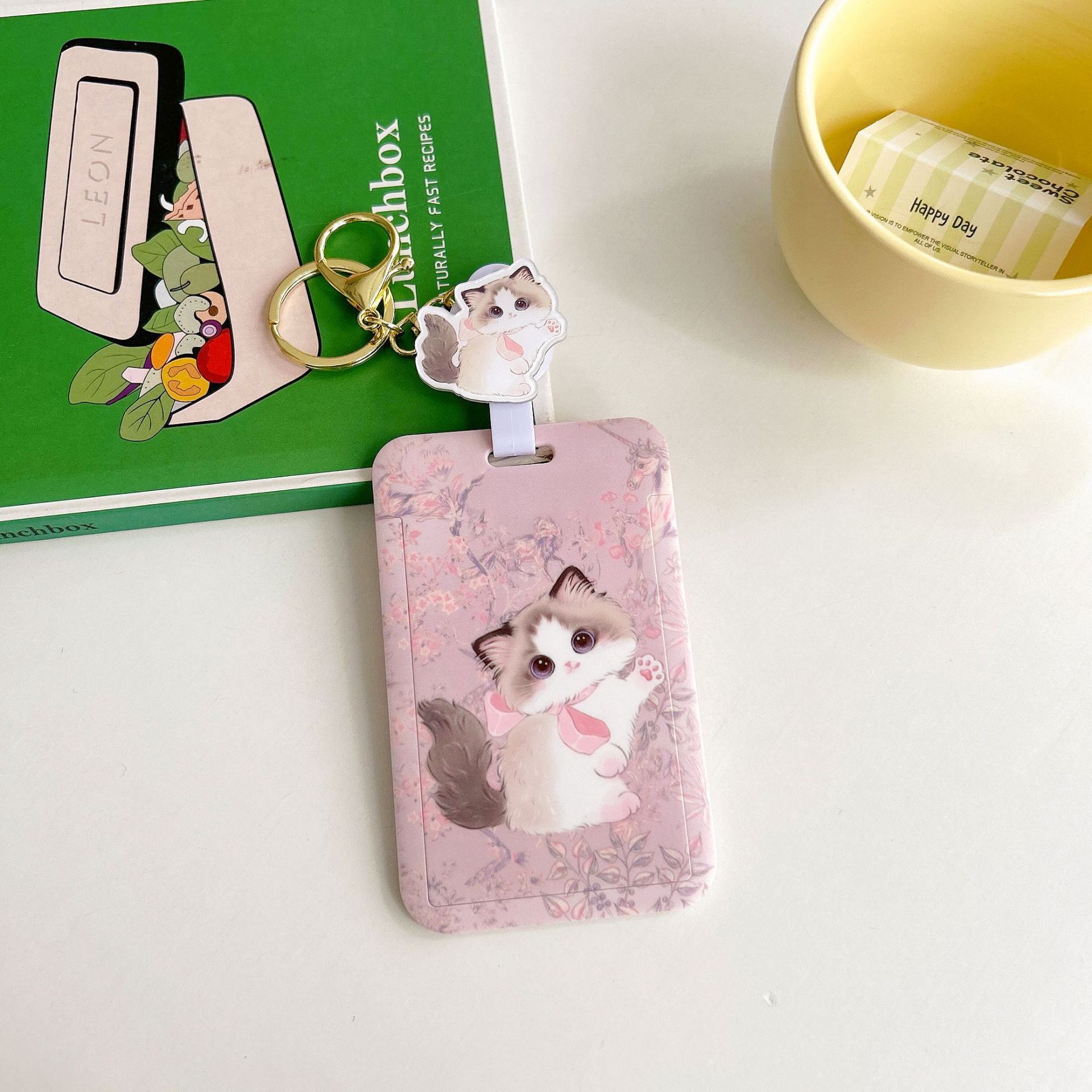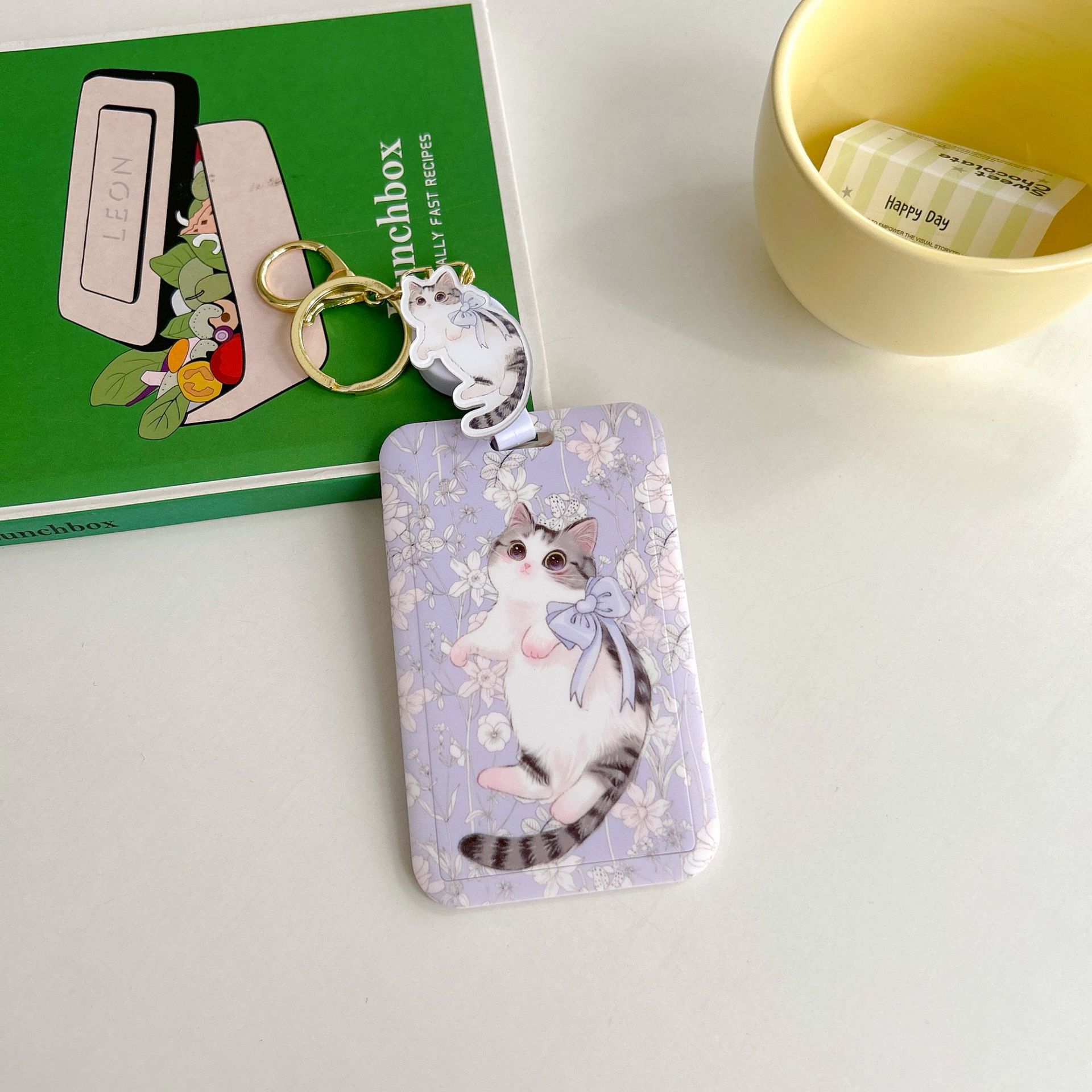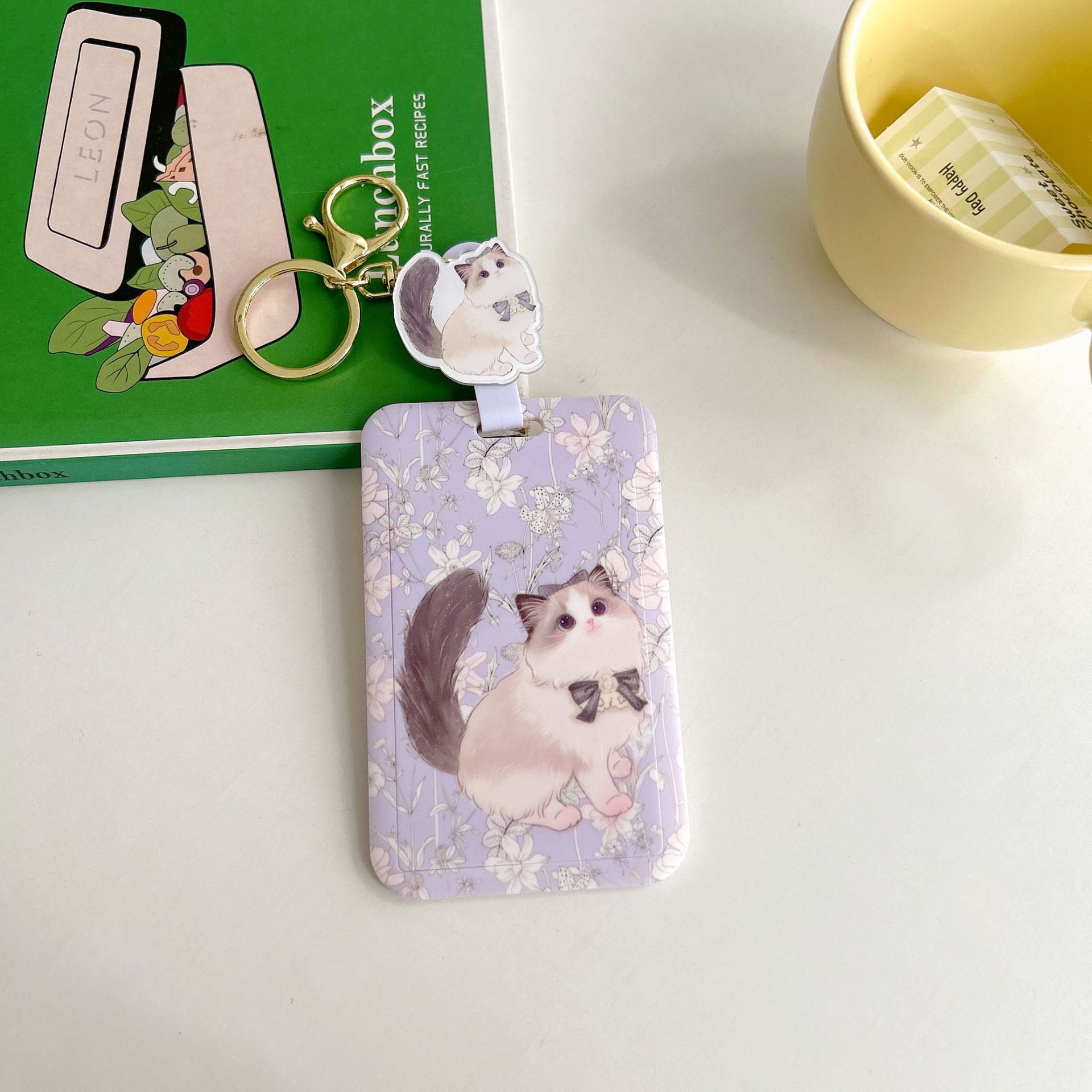 귀여운 고양이 멋진 고양이 버스 카드 세트 캠퍼스 식사 카드 액세스 카드 개폐식 카드 세트 가방 매달려 키 체인 인증서스토어 가기