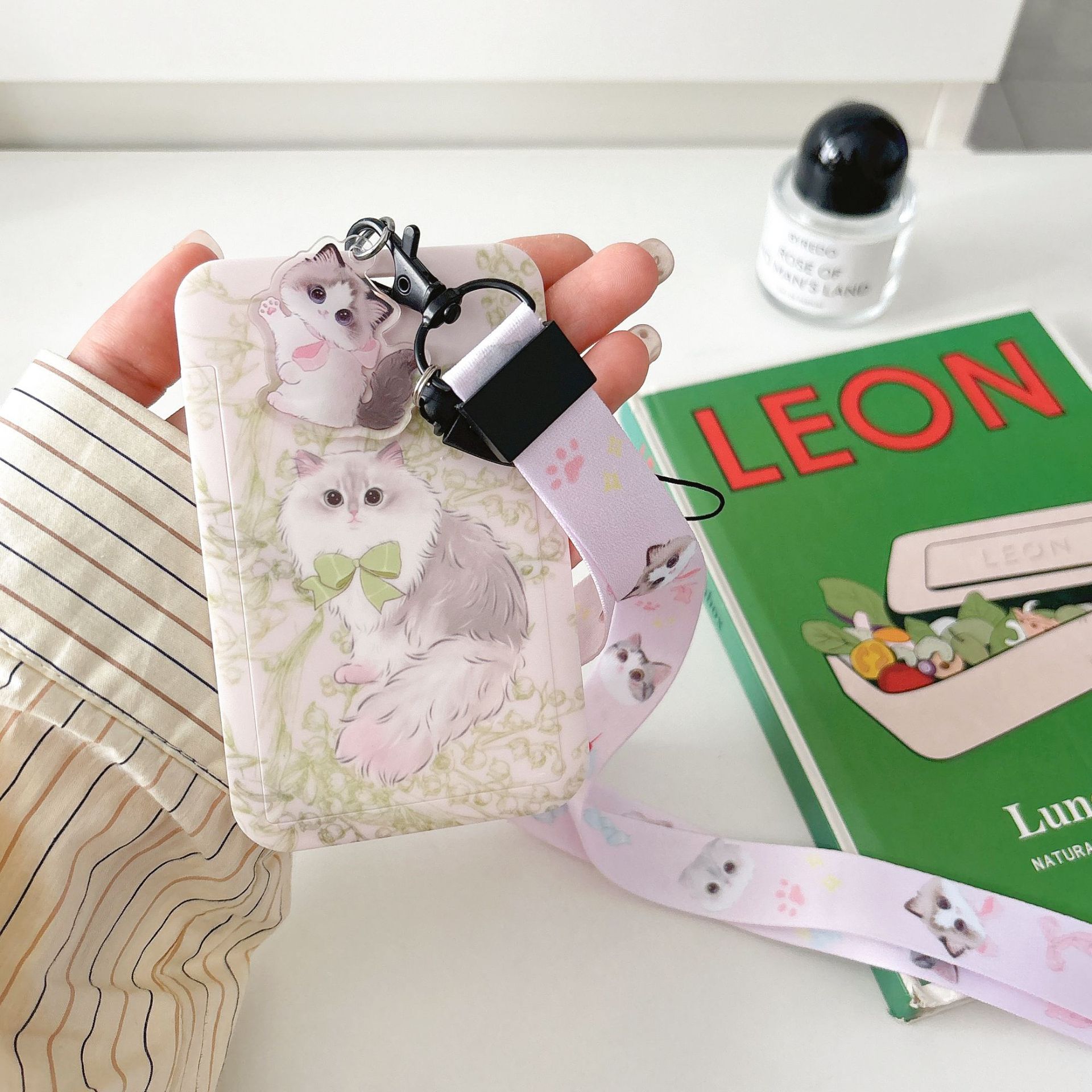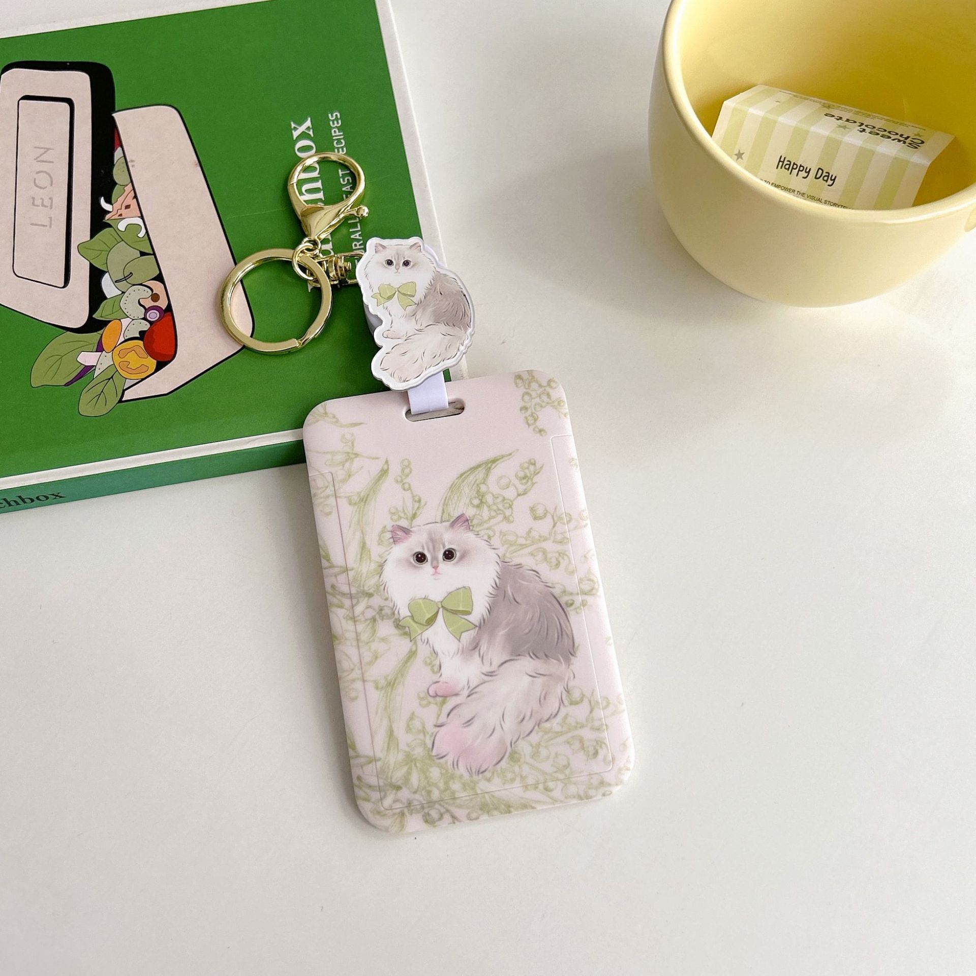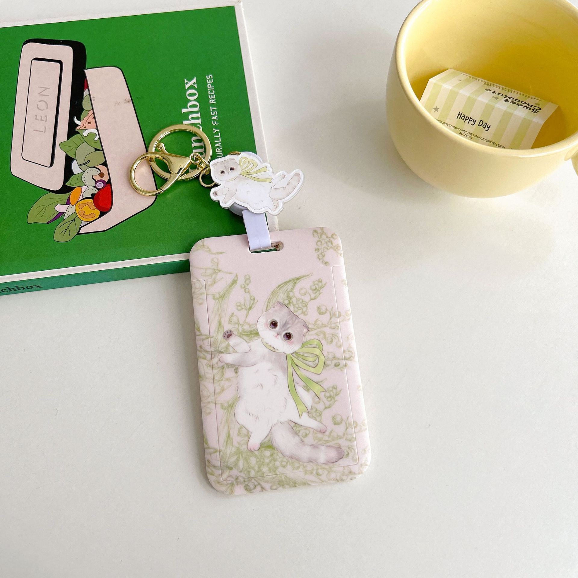 귀여운 고양이 멋진 고양이 버스 카드 세트 캠퍼스 식사 카드 액세스 카드 개폐식 카드 세트 가방 매달려 키 체인 인증서스토어 가기