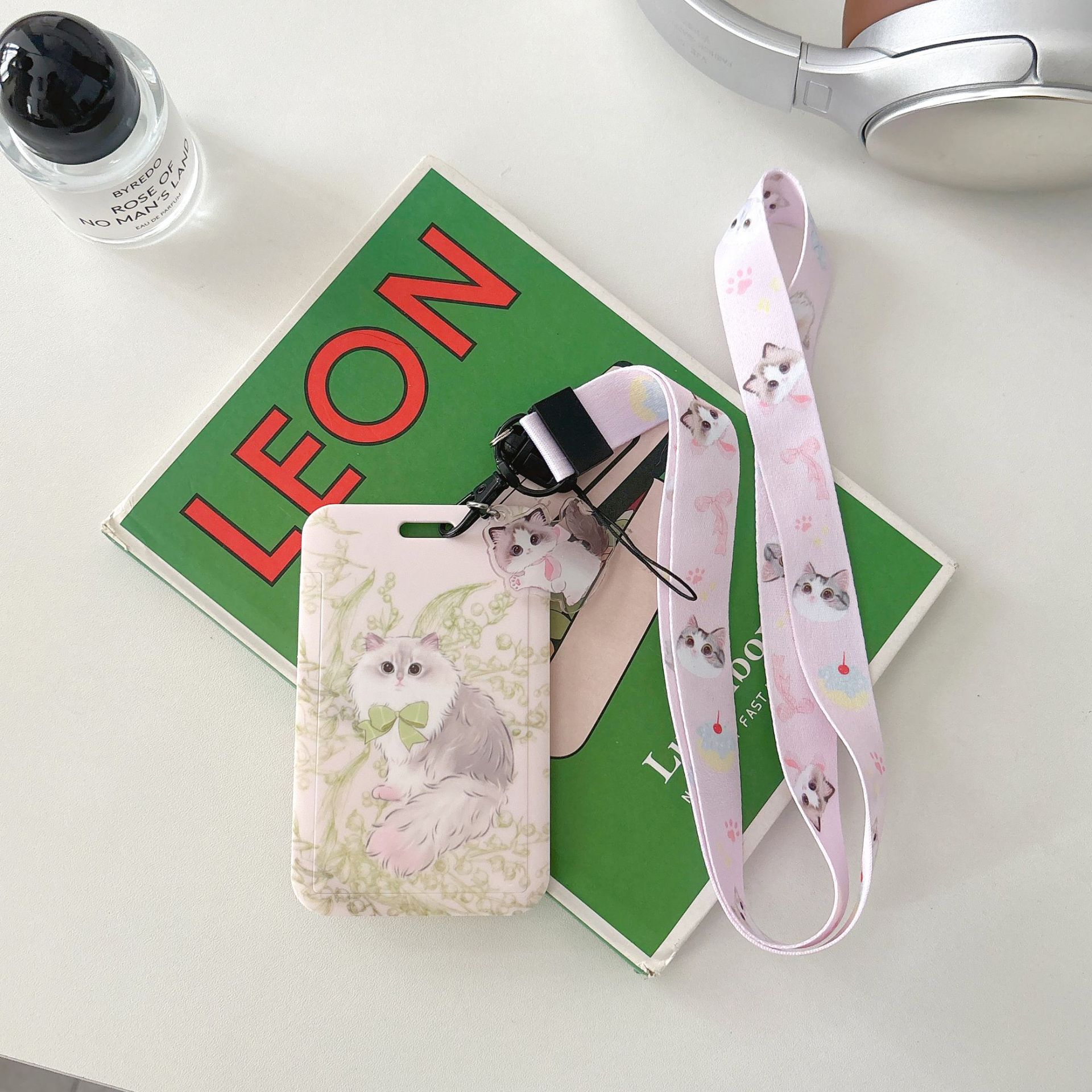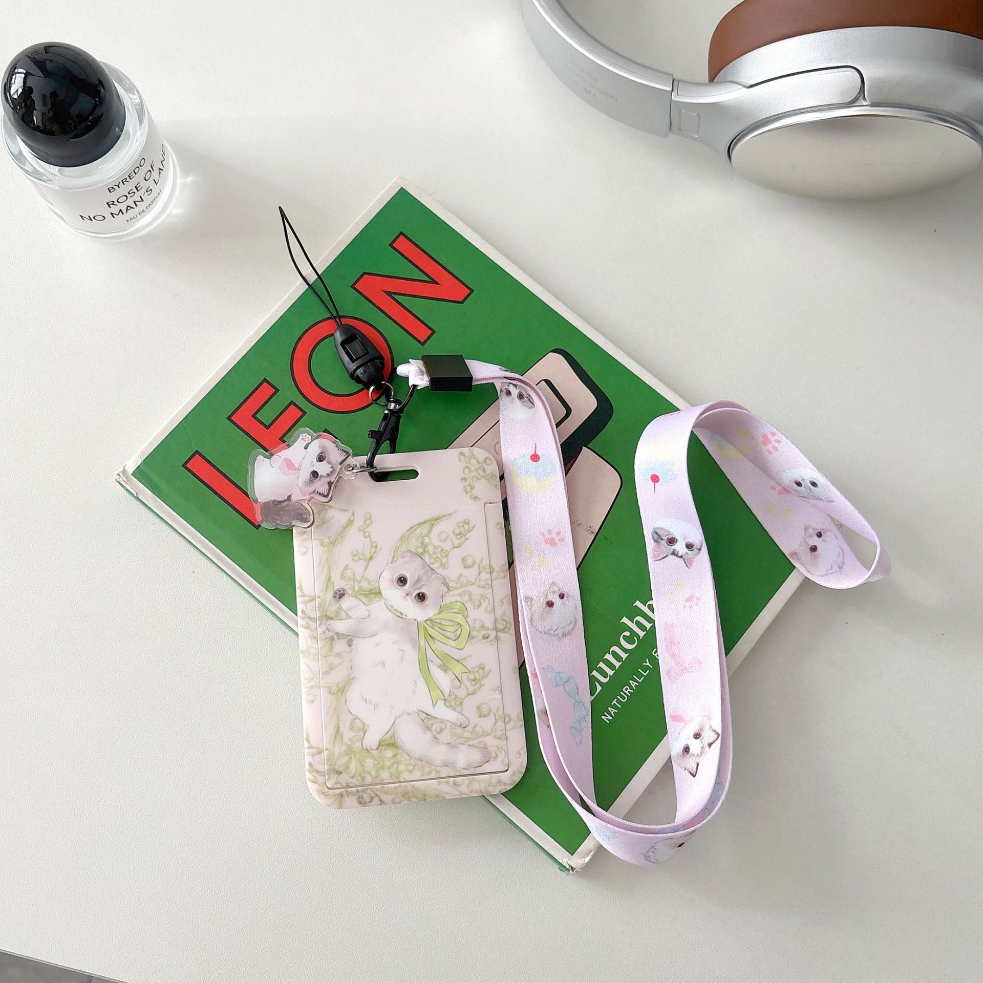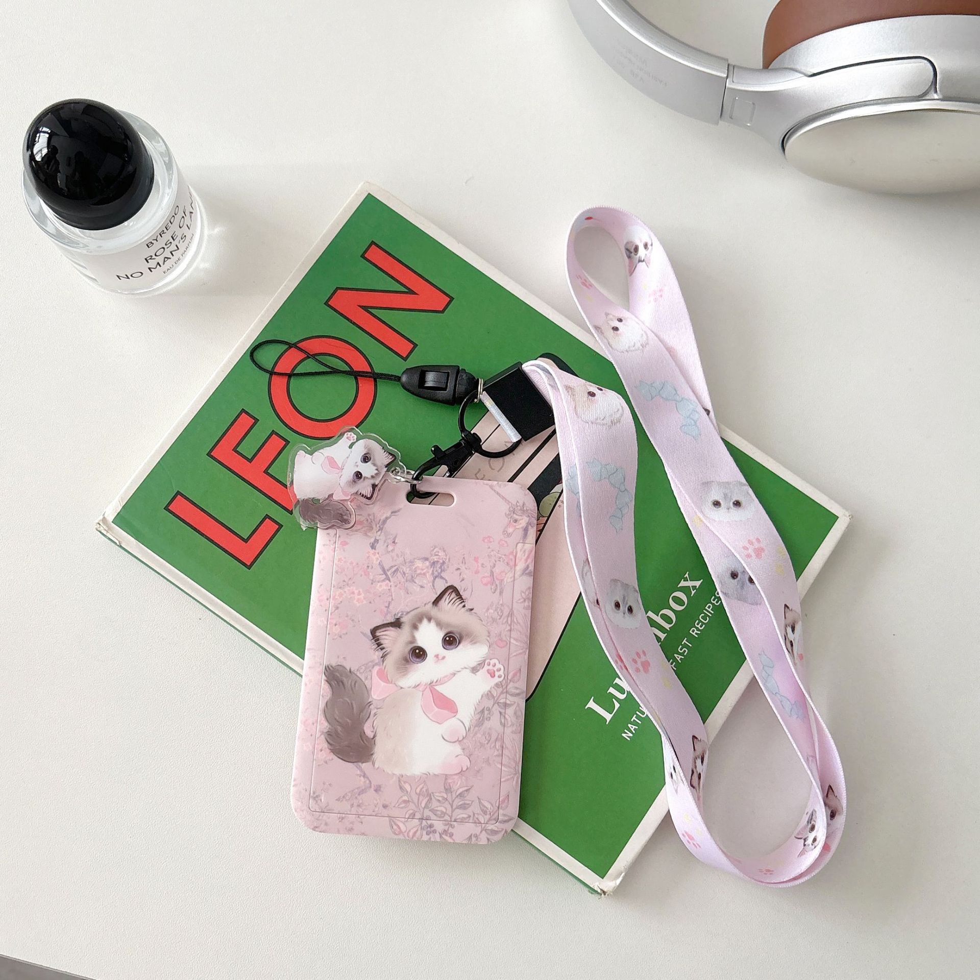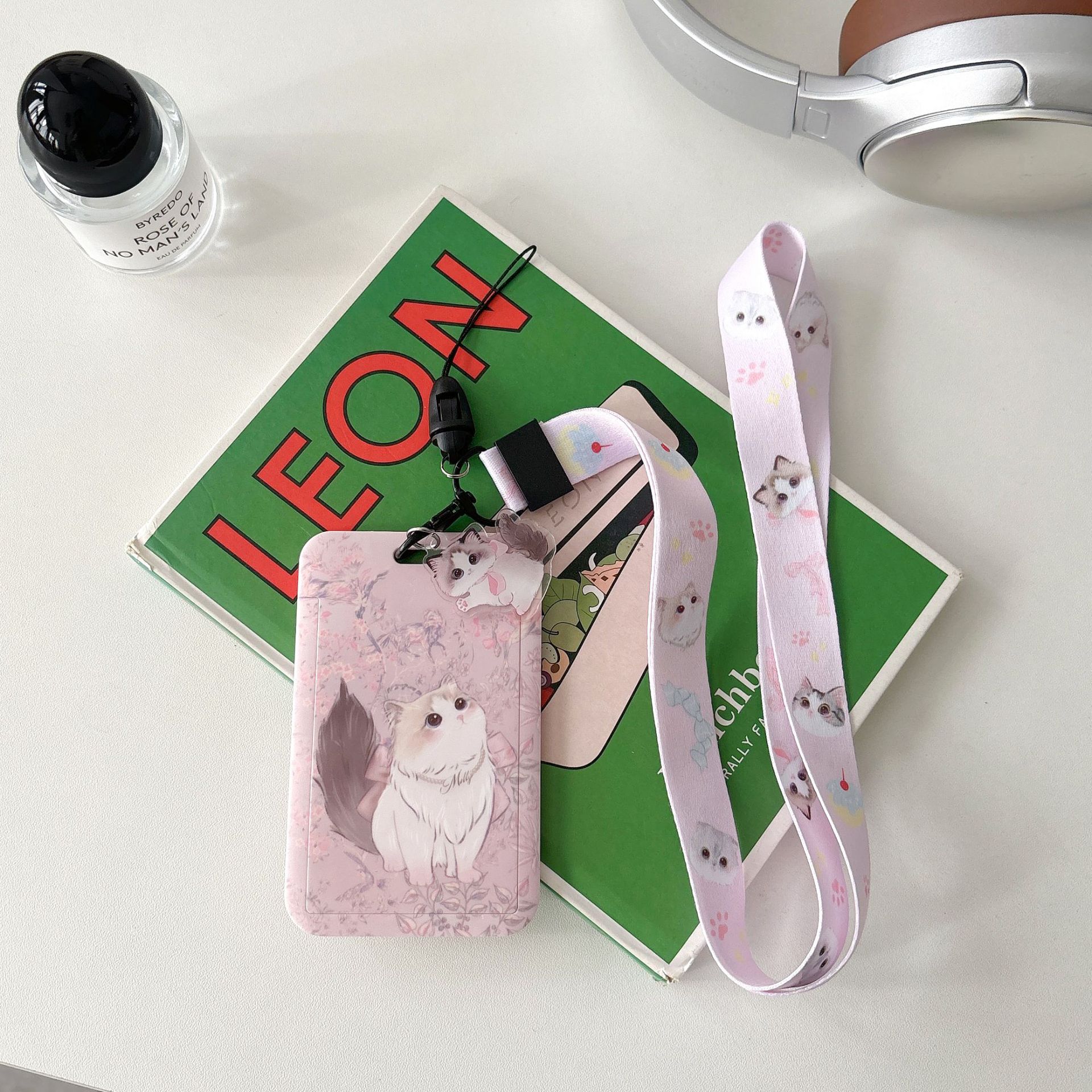 귀여운 고양이 멋진 고양이 버스 카드 세트 캠퍼스 식사 카드 액세스 카드 개폐식 카드 세트 가방 매달려 키 체인 인증서스토어 가기
