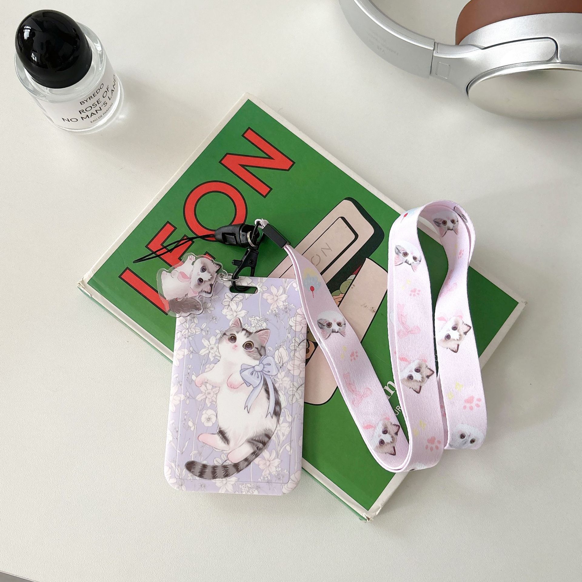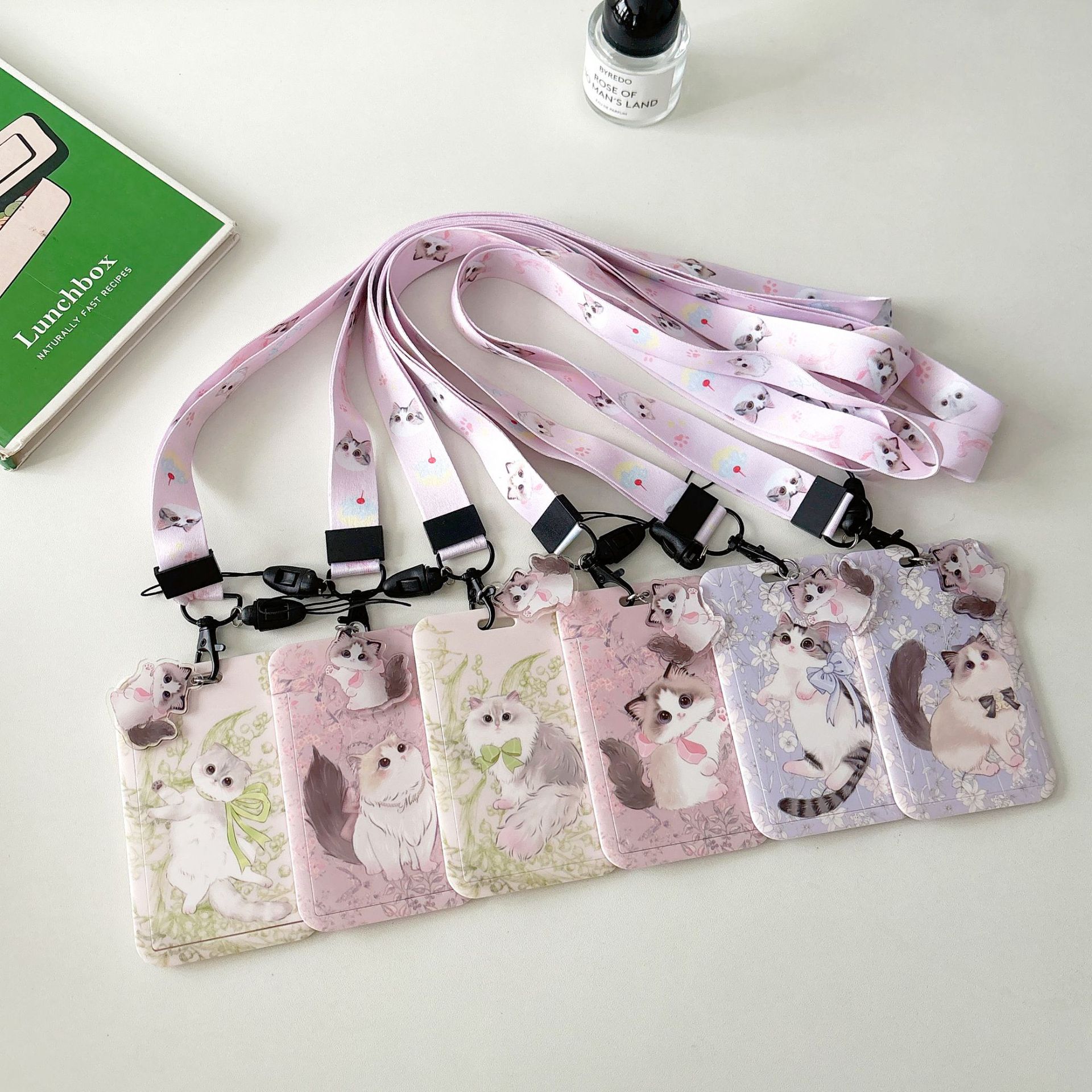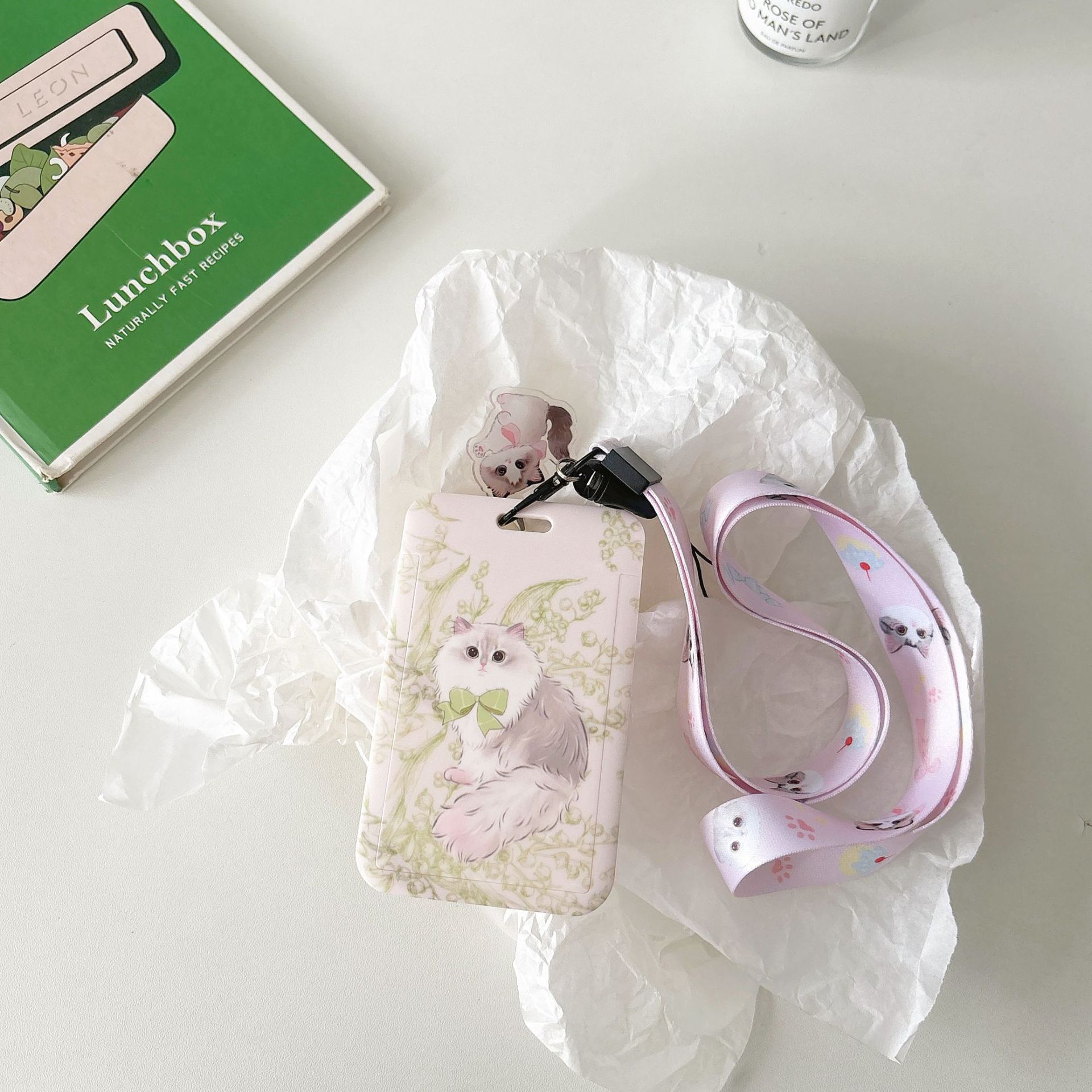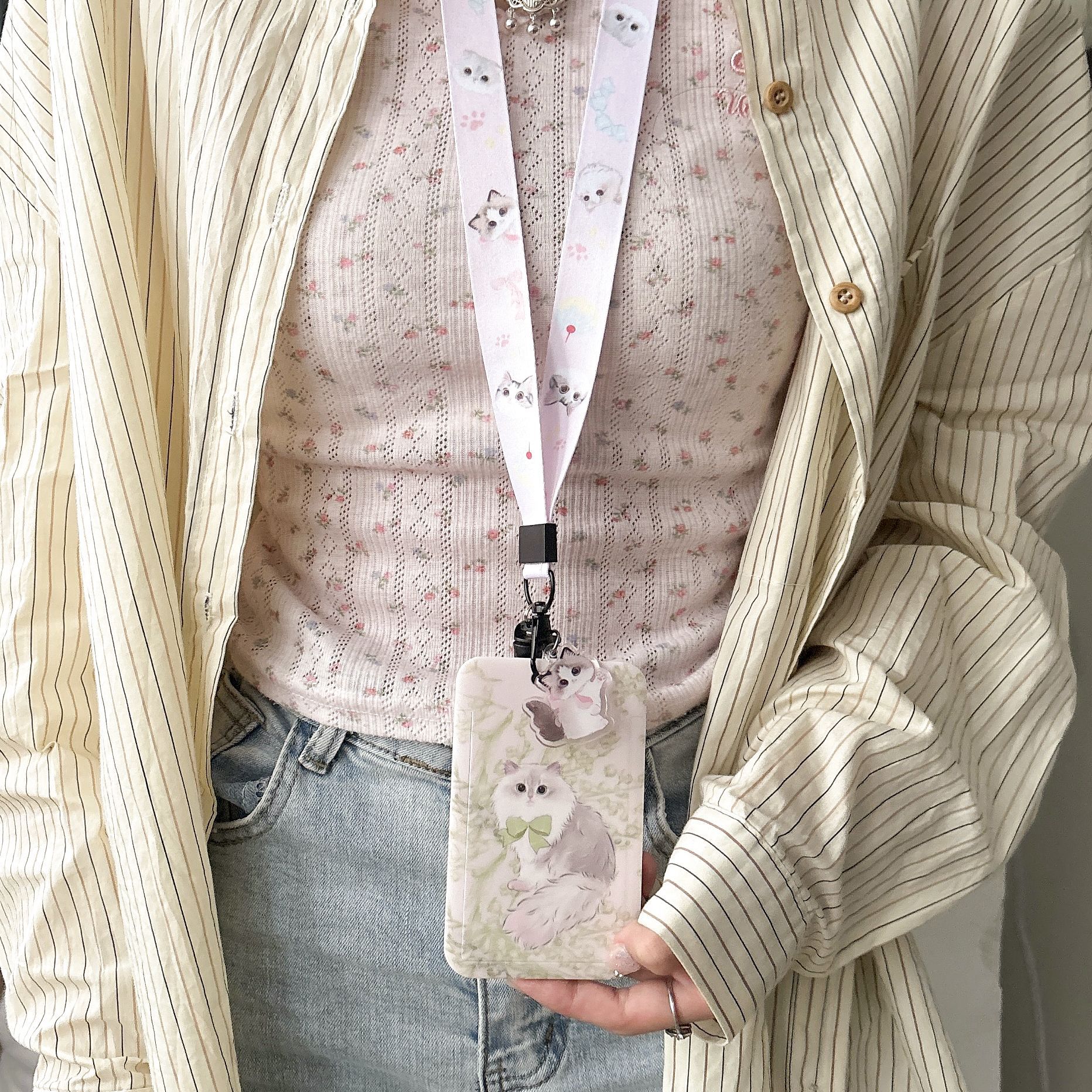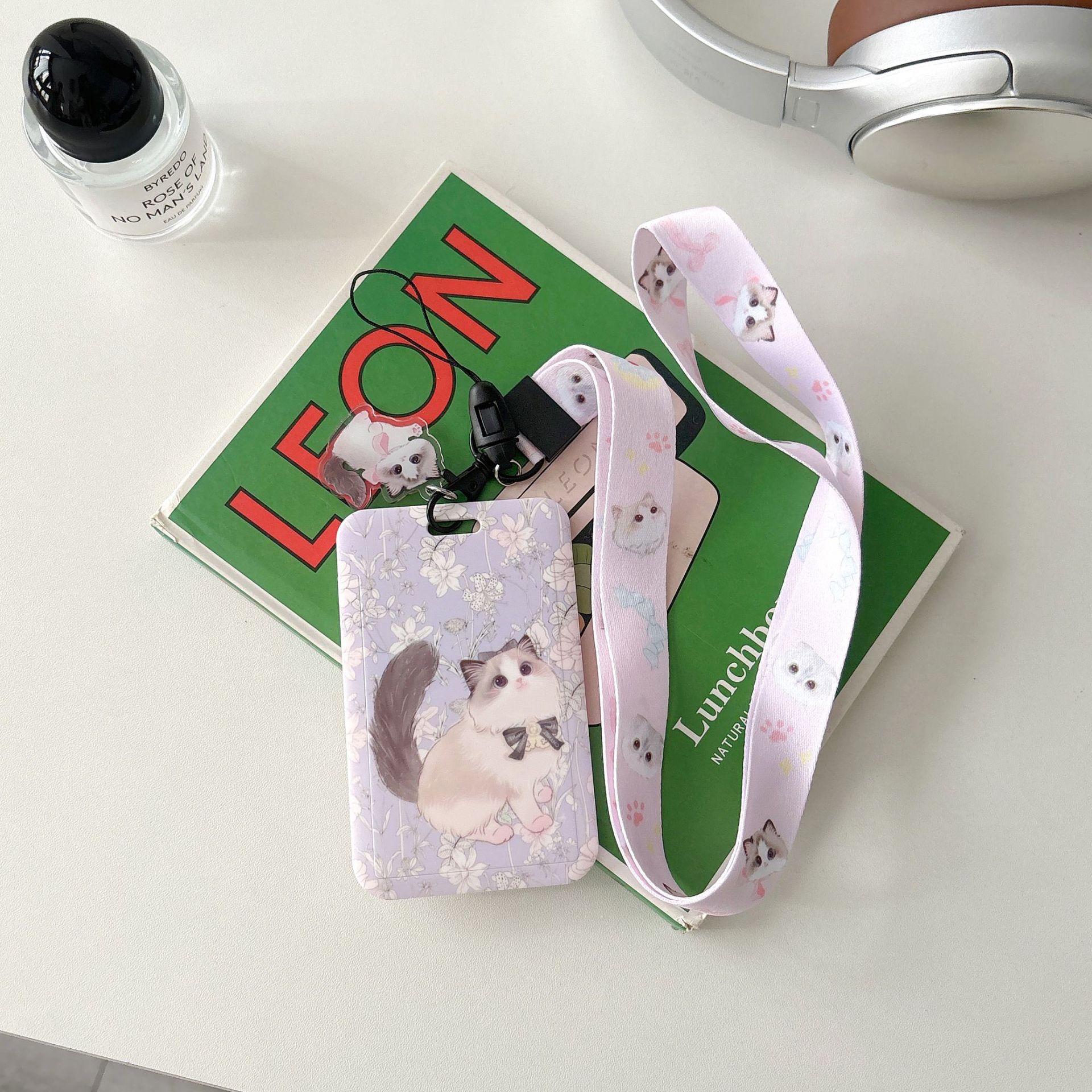귀여운 고양이 멋진 고양이 버스 카드 세트 캠퍼스 식사 카드 액세스 카드 개폐식 카드 세트 가방 매달려 키 체인 인증서