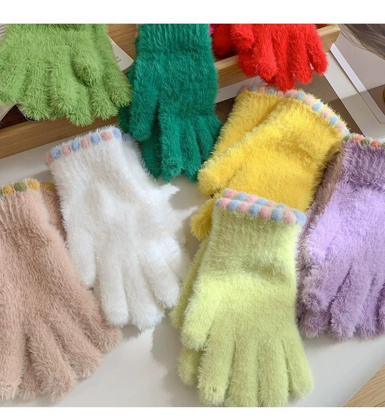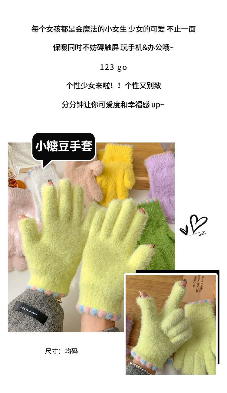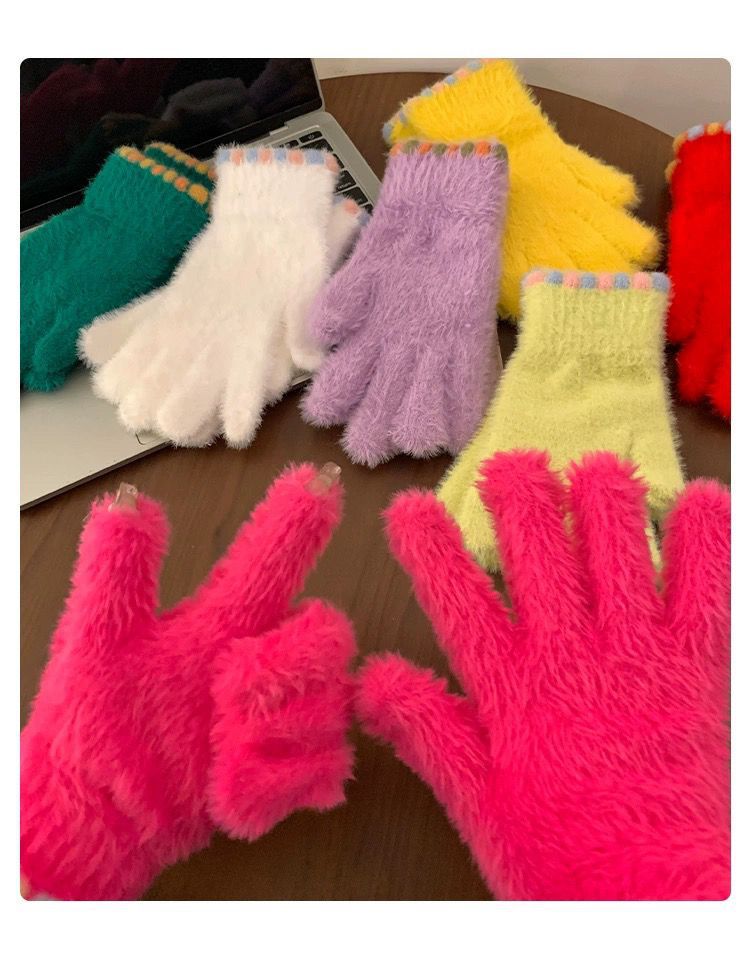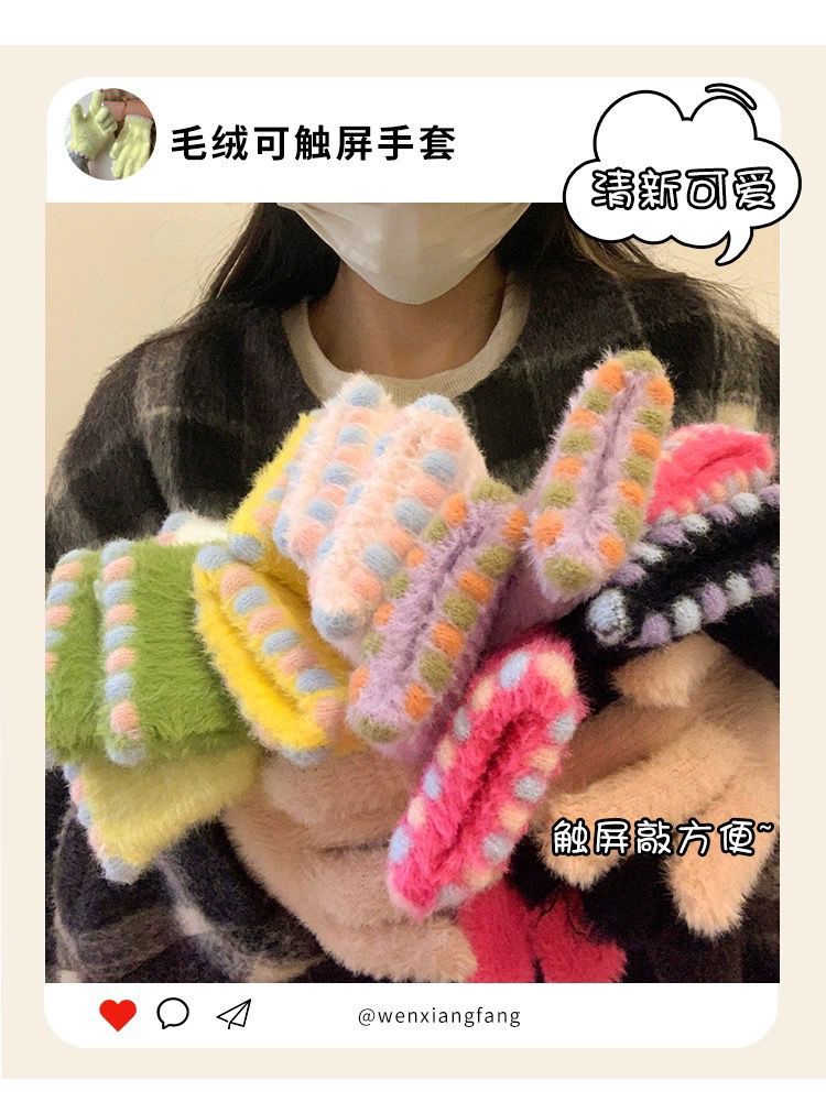 작은 설탕 콩 봉제 장갑 여성의 가을과 겨울 따뜻한 두꺼운 모피 추가 손가락 터치 스크린 손가락 학생 사이클링 감기 보호스토어 가기