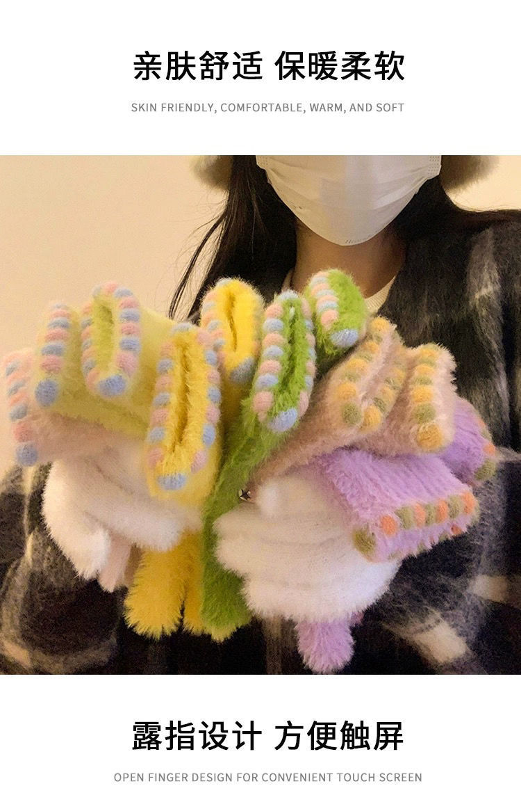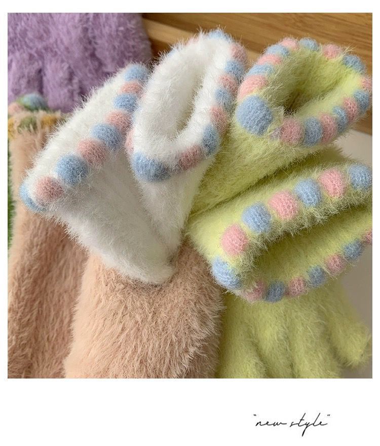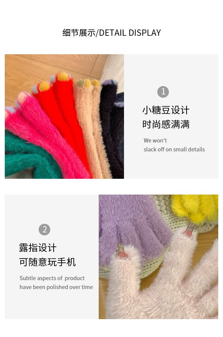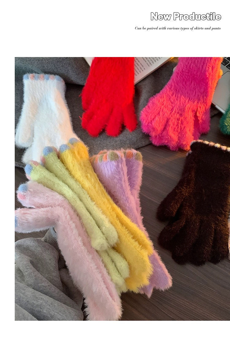 작은 설탕 콩 봉제 장갑 여성의 가을과 겨울 따뜻한 두꺼운 모피 추가 손가락 터치 스크린 손가락 학생 사이클링 감기 보호스토어 가기
