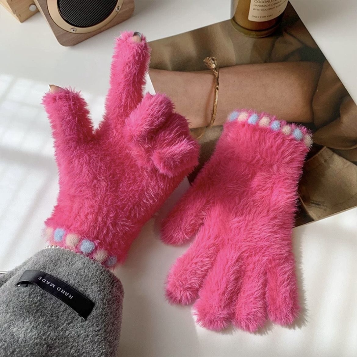 • 로즈 레드 [밍크 플러시 터치스크린 보온장갑]