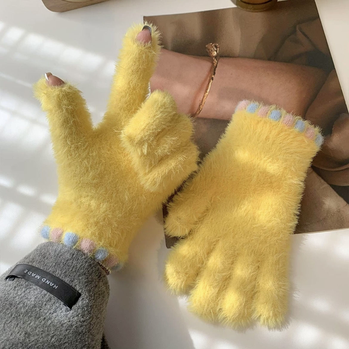 • 노란색 [밍크 플러시 터치스크린 보온장갑]