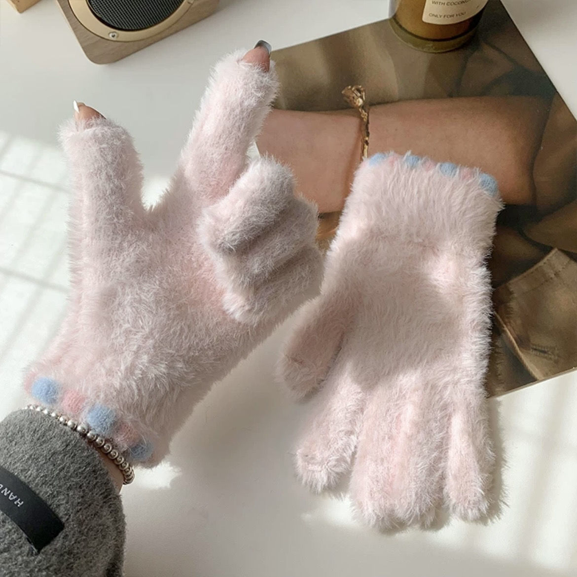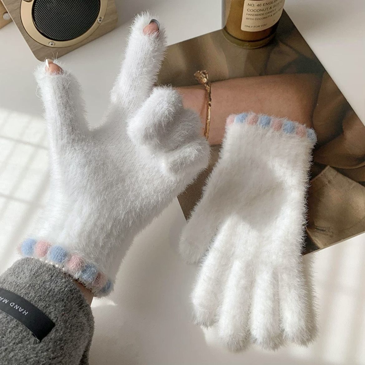 • 화이트 [밍크 플러시 터치스크린 보온장갑]