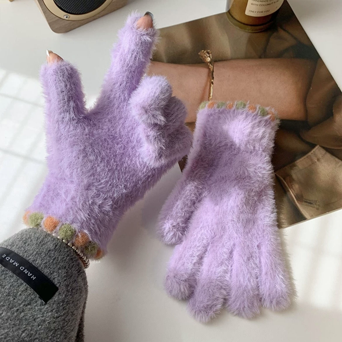 • 보라색 [밍크 플러시 터치스크린 보온장갑]