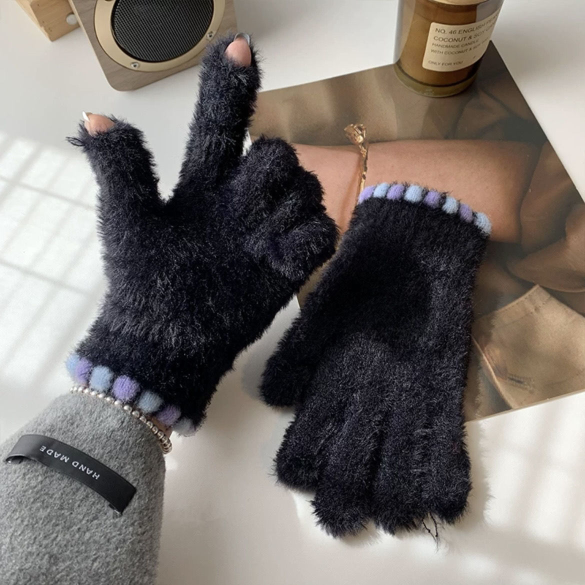 • 블랙 [밍크 플러시 터치스크린 보온장갑]