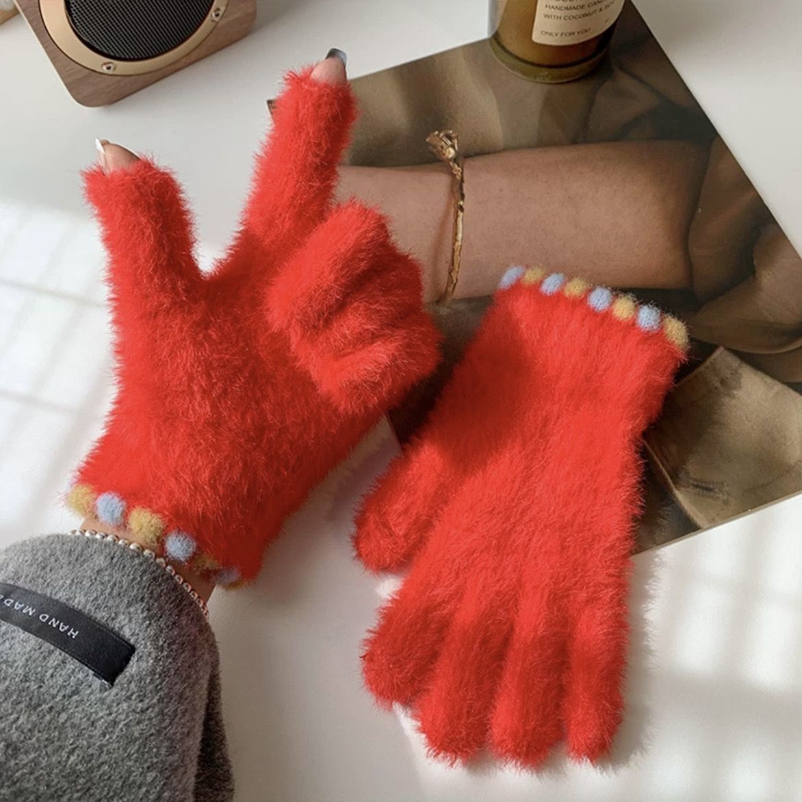 • 레드 [밍크 플러시 터치스크린 보온장갑]