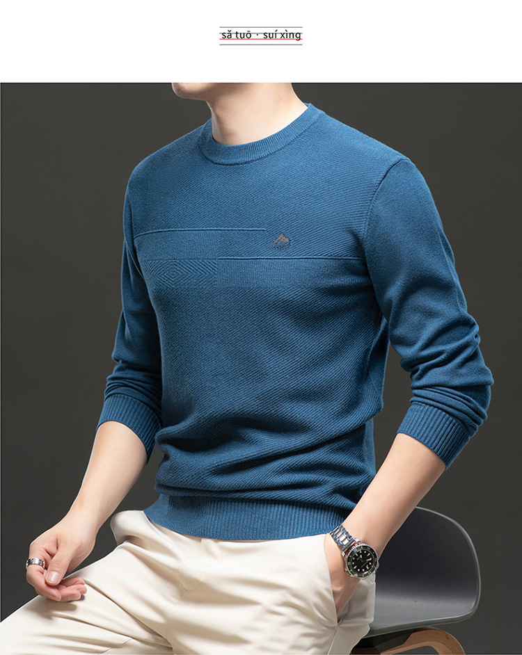 남자 크루 넥 스웨터 하이 엔드 가을 패션 트렌드 중년 남성 다크 패턴 자카드 긴팔 터틀넥 스웨터
