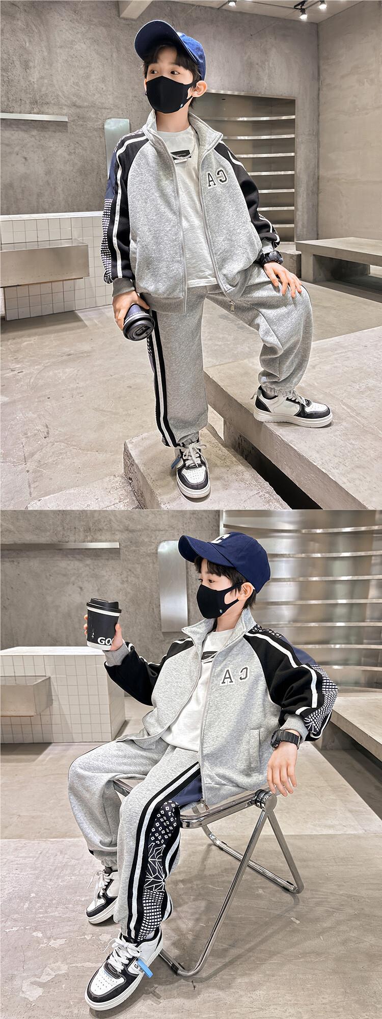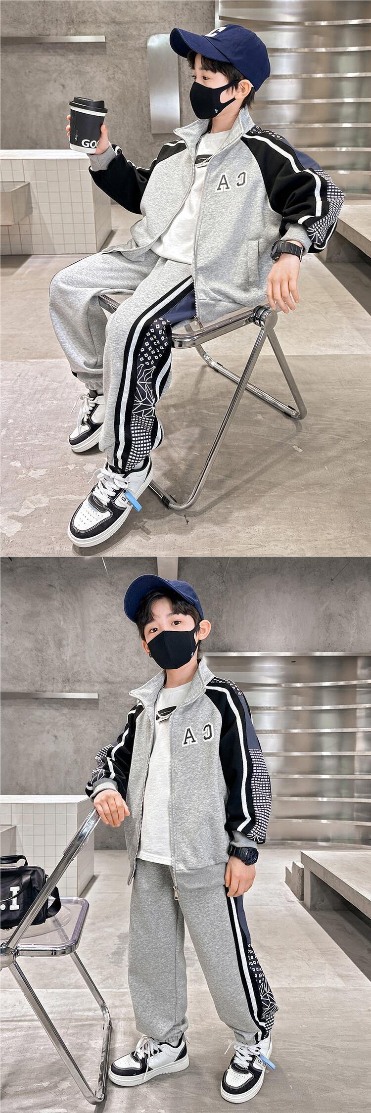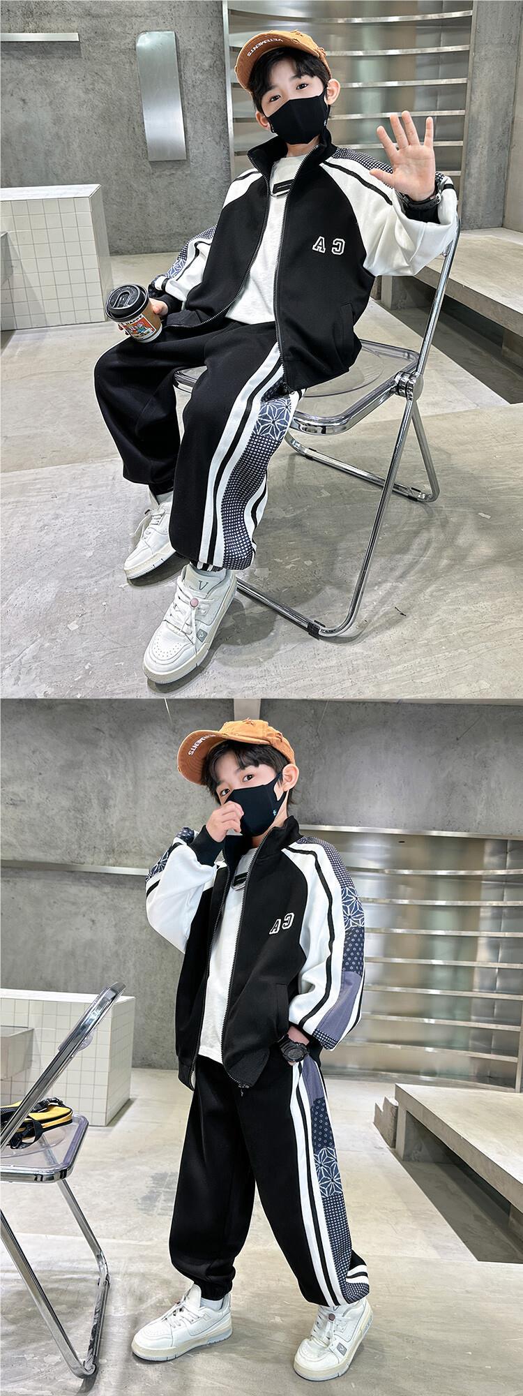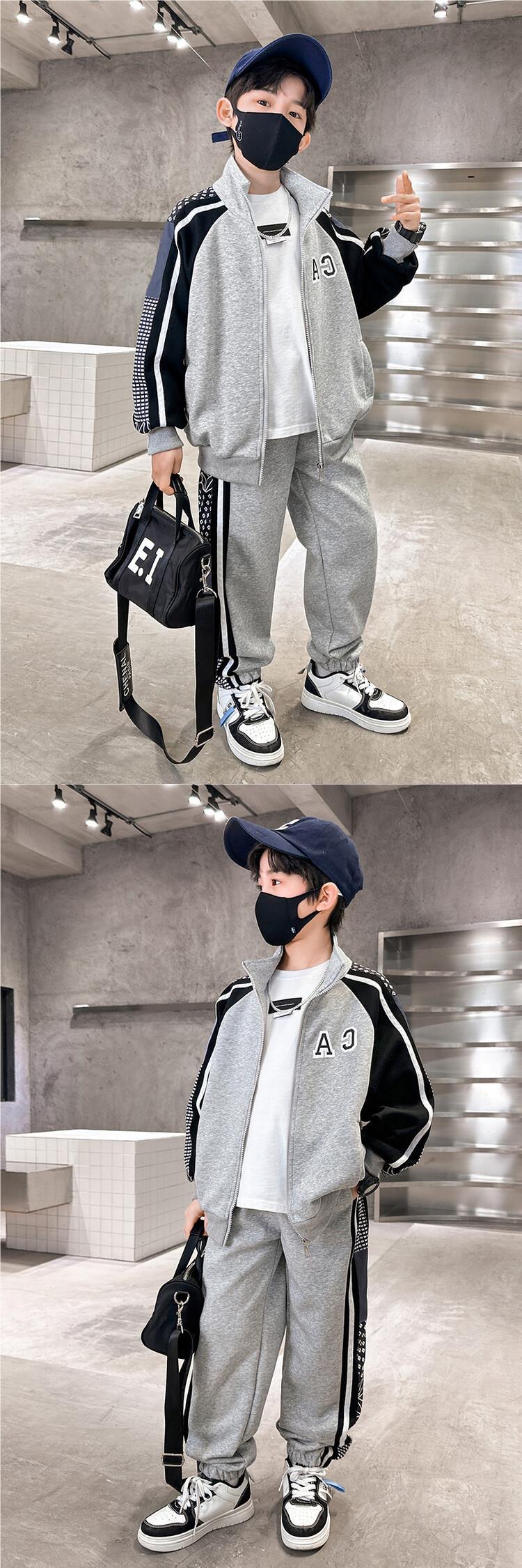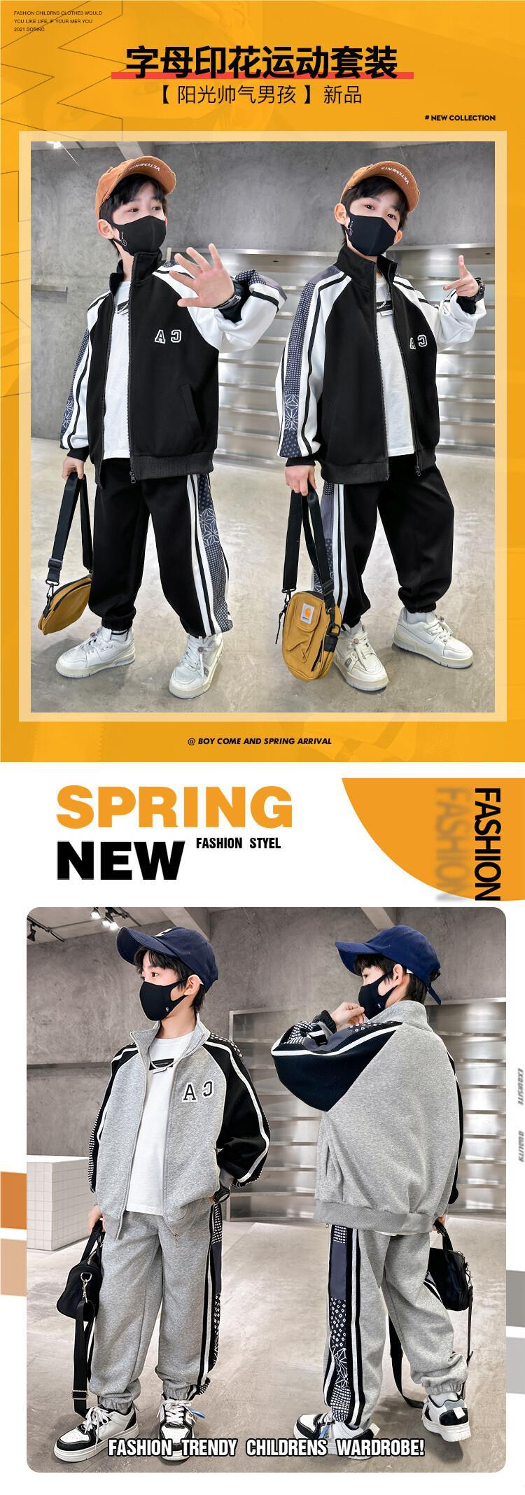 소년 가을 의류 세트 2024 새로운 잘 생긴 중대형 아동 의류 봄과 가을 유행 스포츠 투피스 소년 의류스토어 가기