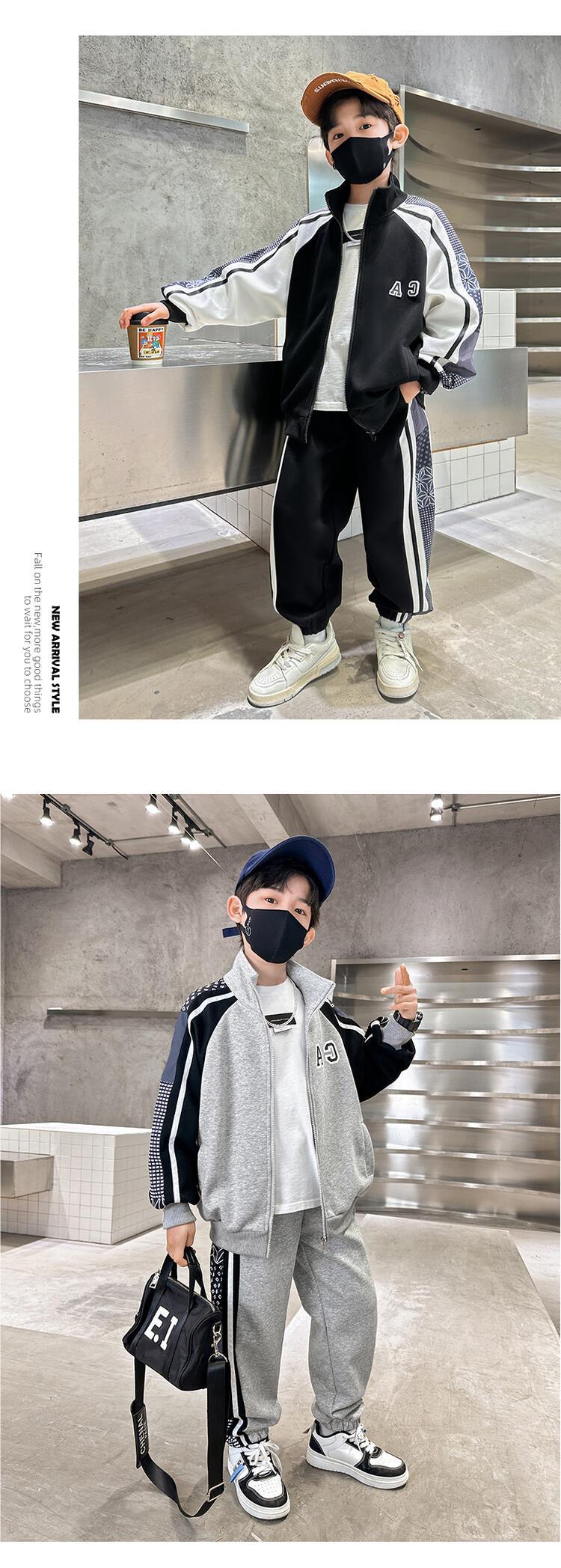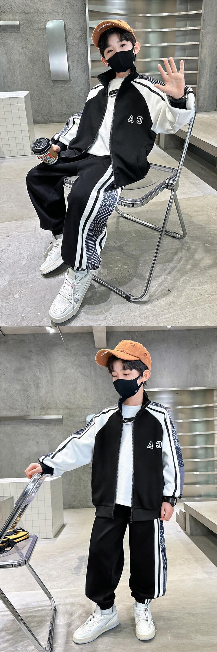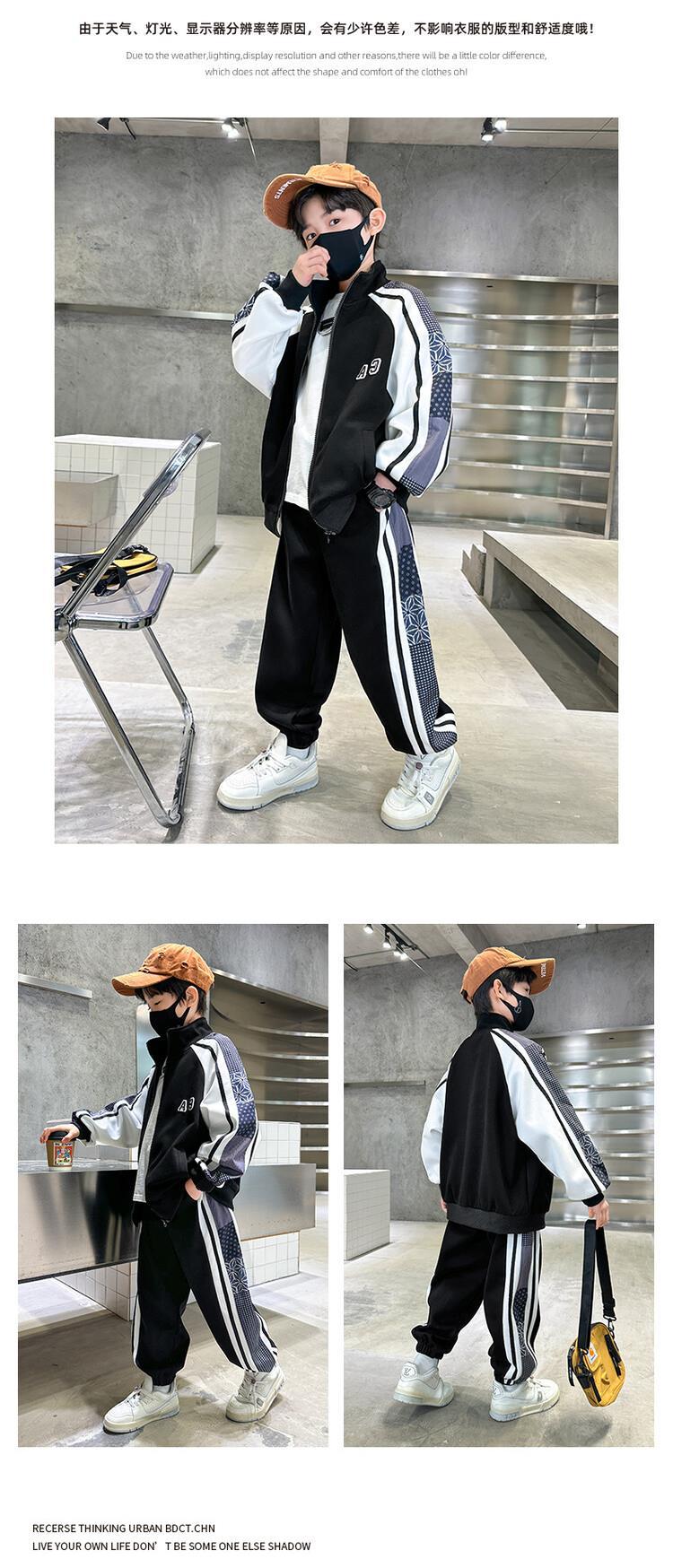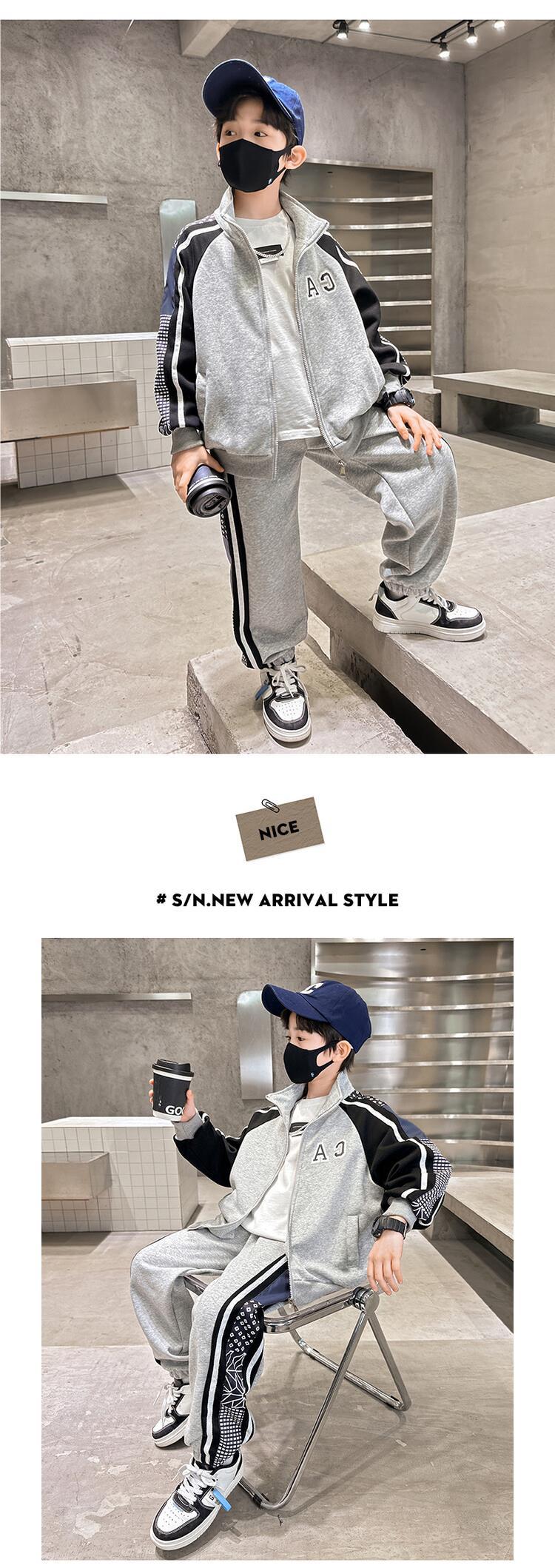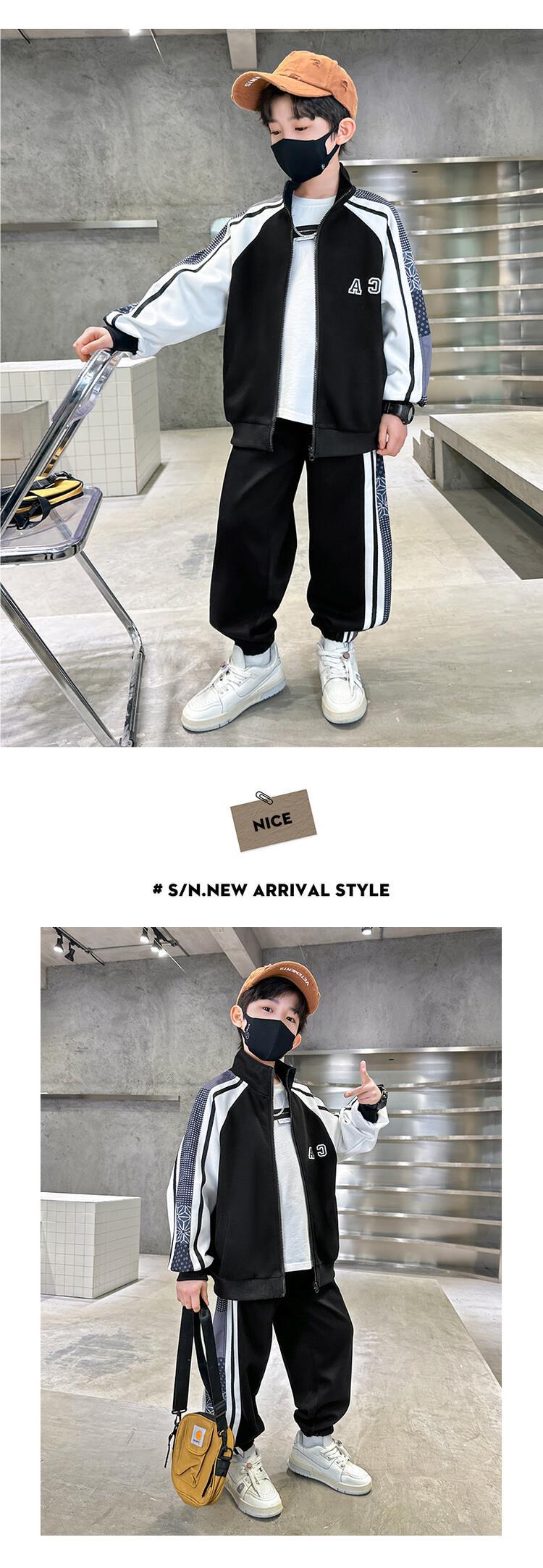 소년 가을 의류 세트 2024 새로운 잘 생긴 중대형 아동 의류 봄과 가을 유행 스포츠 투피스 소년 의류스토어 가기