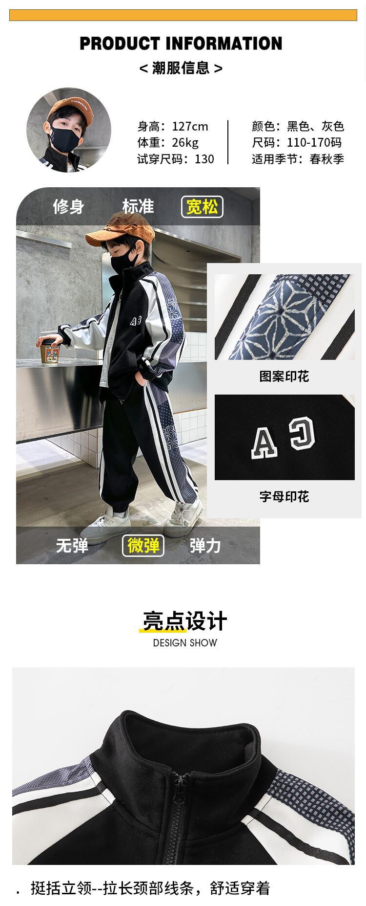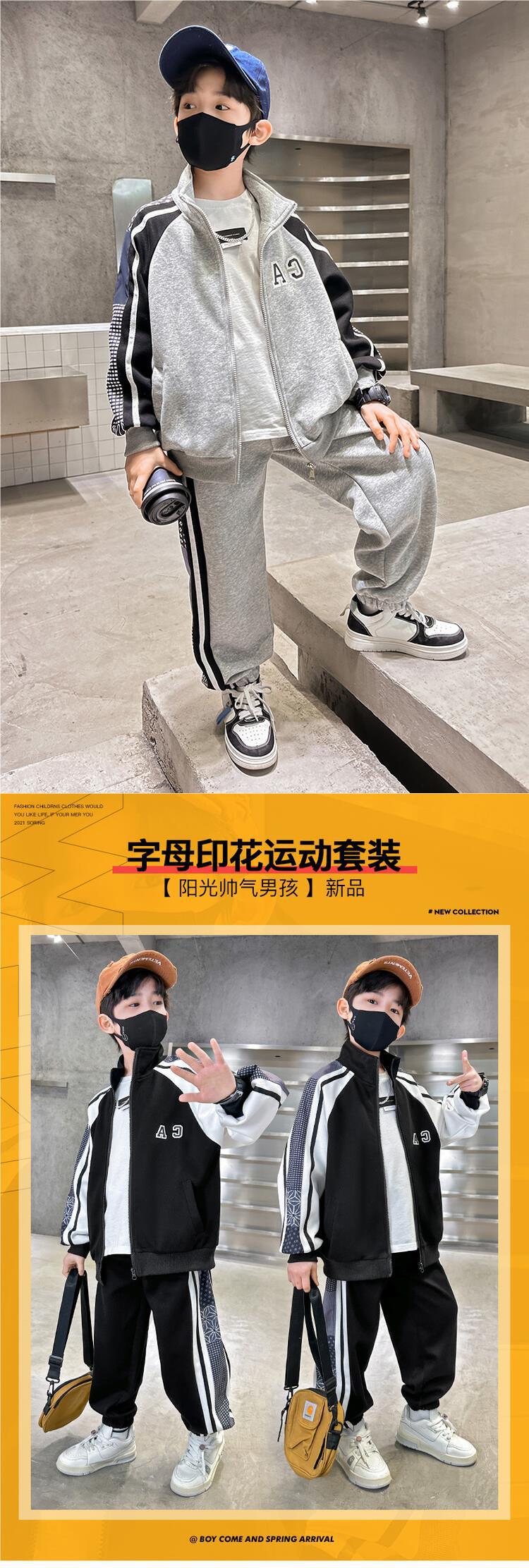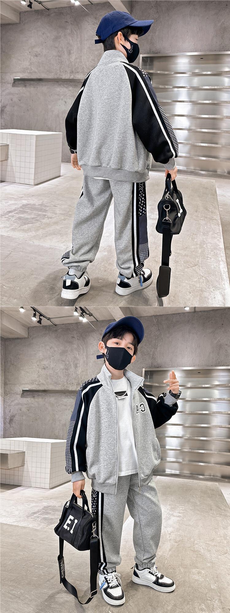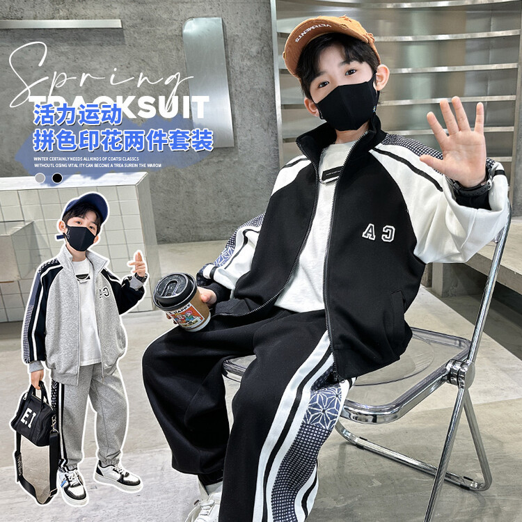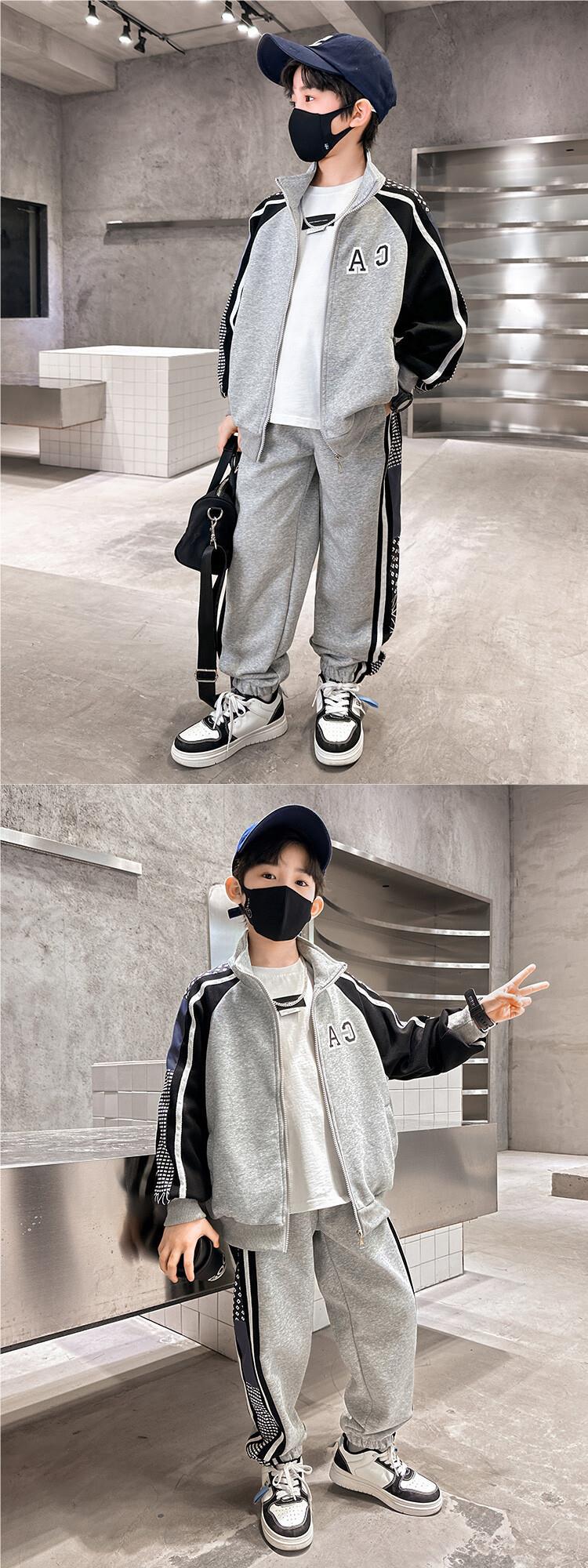 소년 가을 의류 세트 2024 새로운 잘 생긴 중대형 아동 의류 봄과 가을 유행 스포츠 투피스 소년 의류스토어 가기