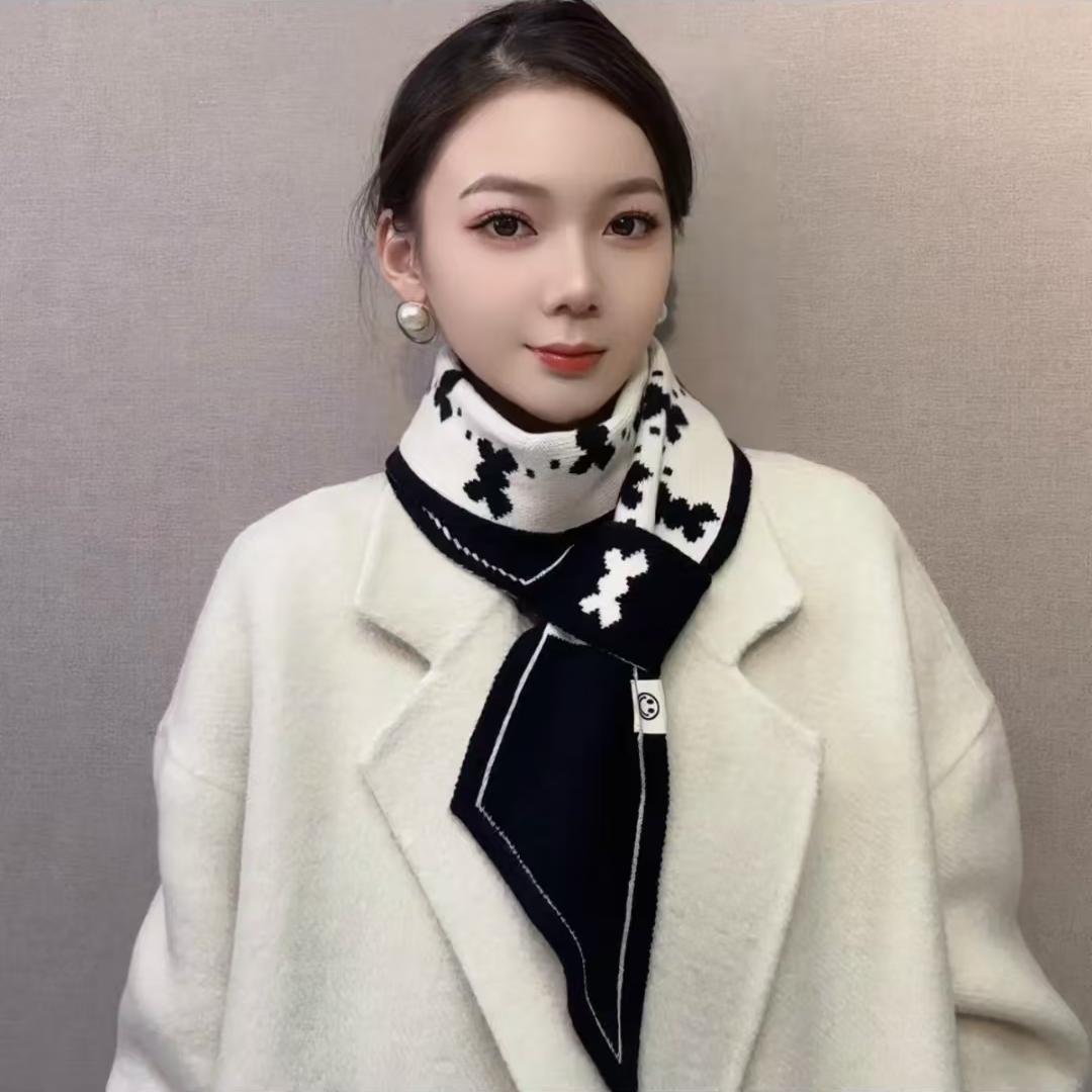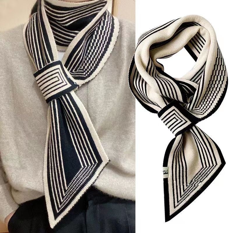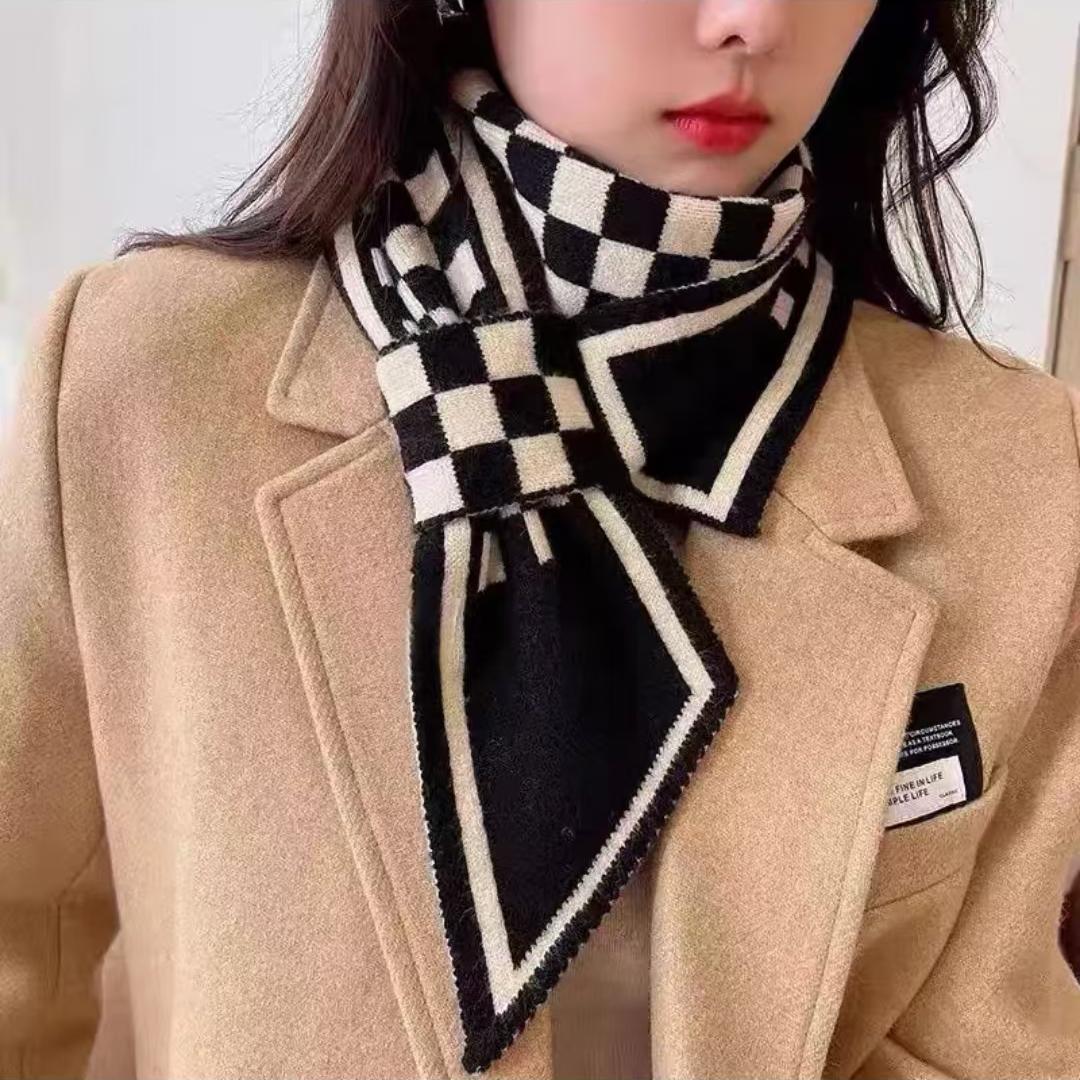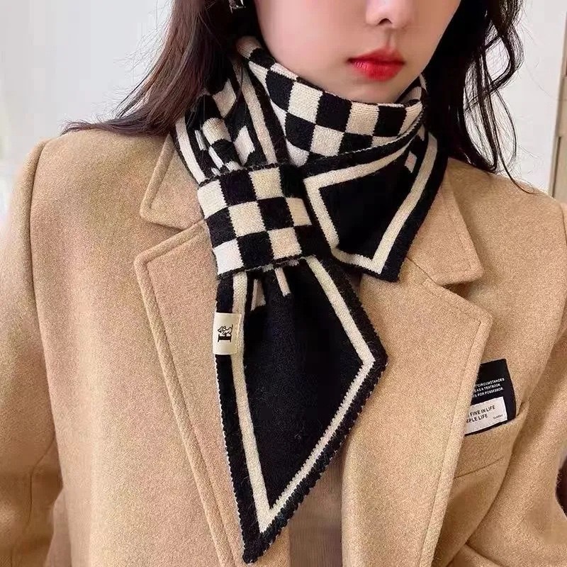 고급 Houndstooth 한국 스타일 가을과 겨울 니트 양모 작은 스카프 여자 겨울 스카프 목 보호 모든 경기 폭발성 스카프