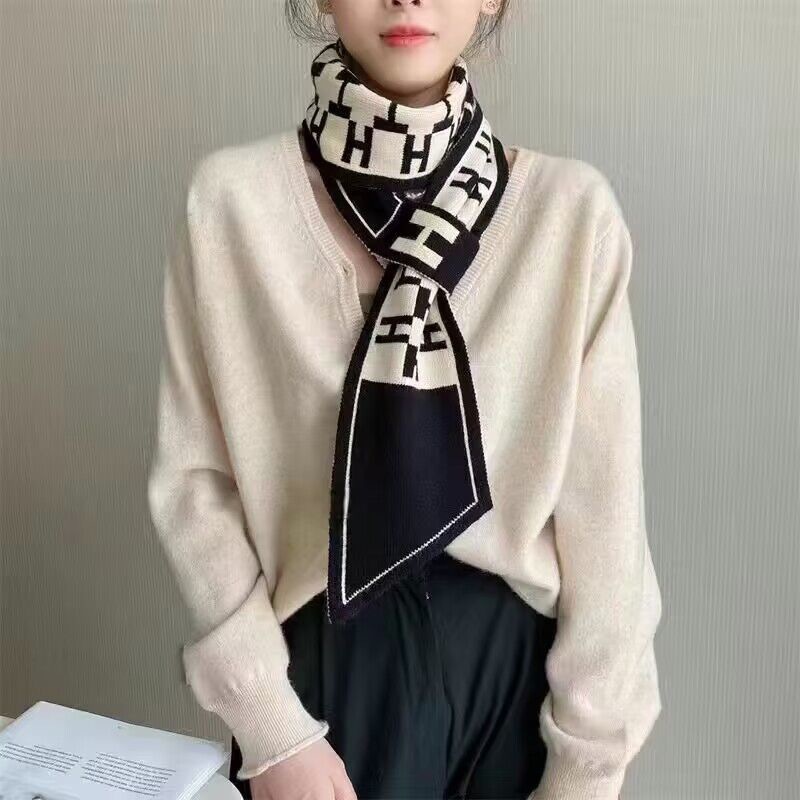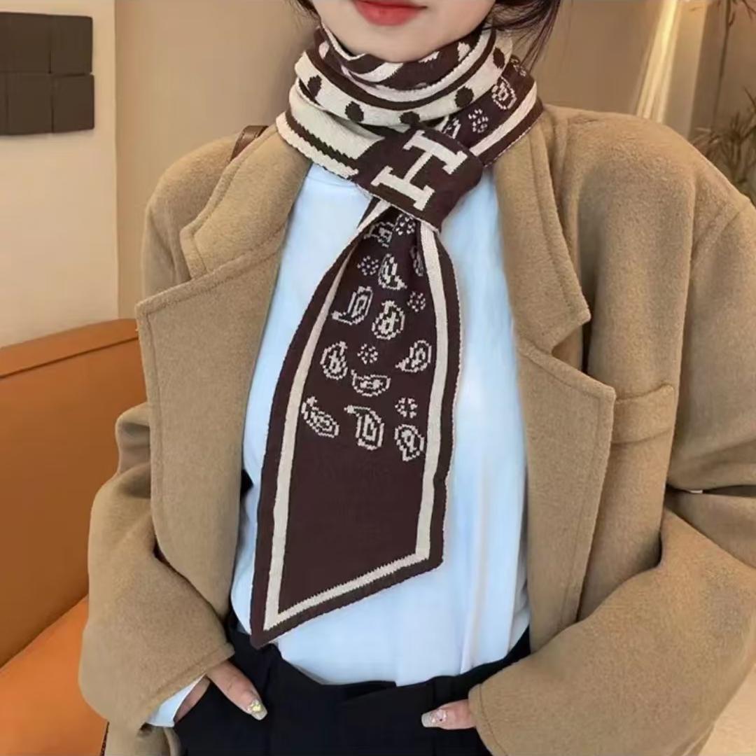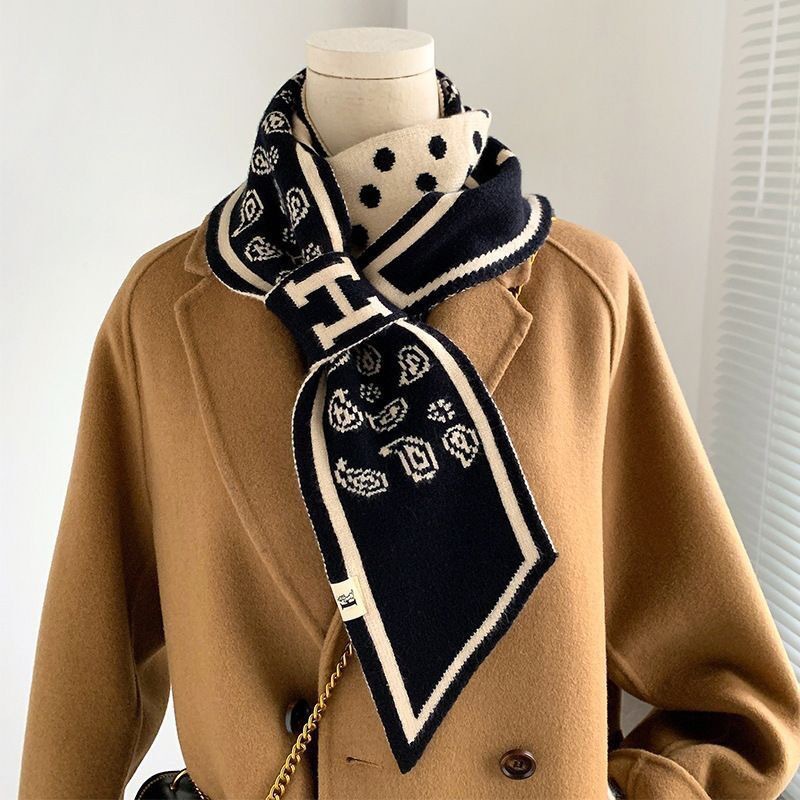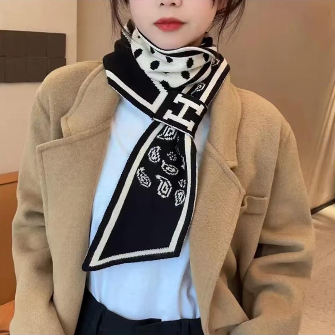 고급 Houndstooth 한국 스타일 가을과 겨울 니트 양모 작은 스카프 여자 겨울 스카프 목 보호 모든 경기 폭발성 스카프
