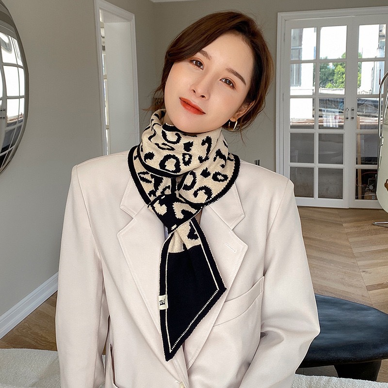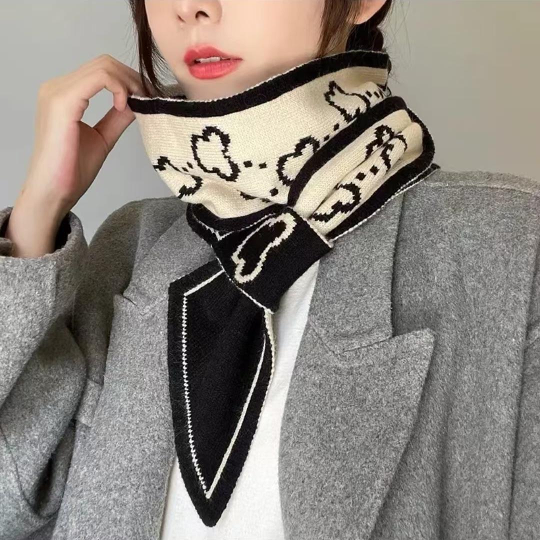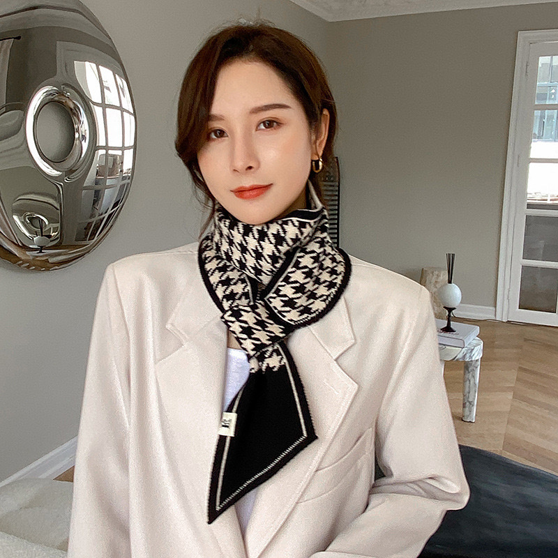 고급 Houndstooth 한국 스타일 가을과 겨울 니트 양모 작은 스카프 여자 겨울 스카프 목 보호 모든 경기 폭발성 스카프스토어 가기
