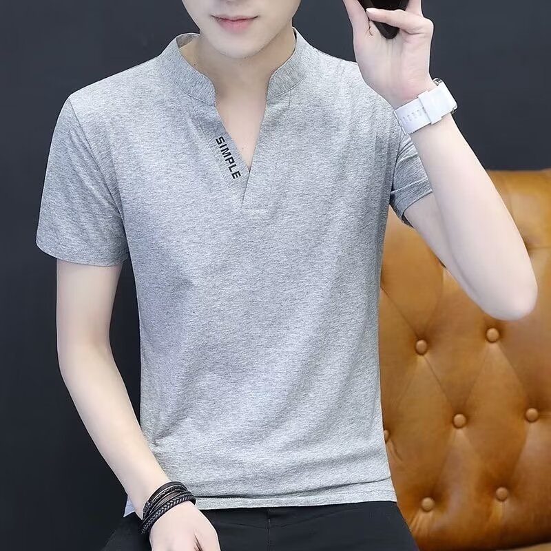 여름 남성 수직 칼라 프린트 반팔 티셔츠 반소매 폴로 셔츠 남성베이스 셔츠 유행 탑 티셔츠