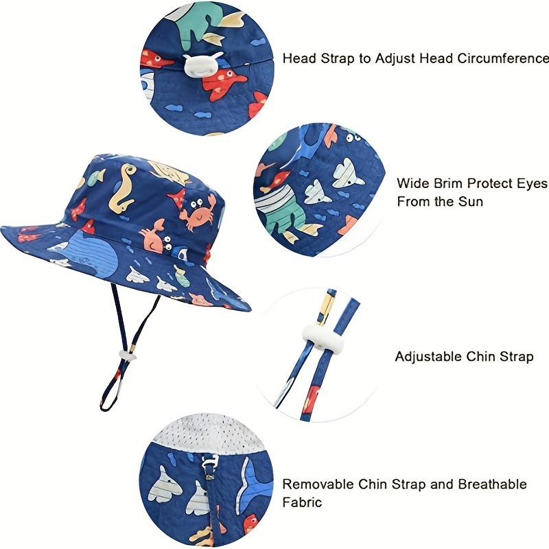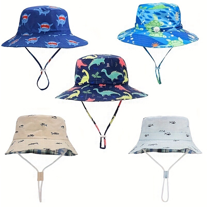 국경 독점 어린이 인쇄 공룡 어부 모자 야외 소년 만화 동물 상어 분지 모자 야외 태양 모자