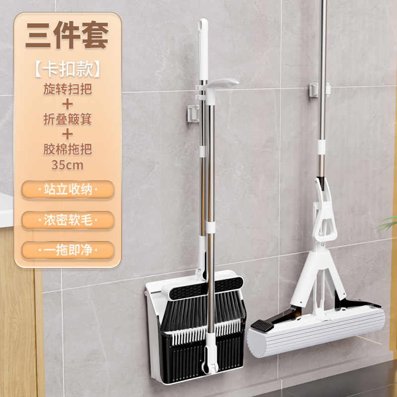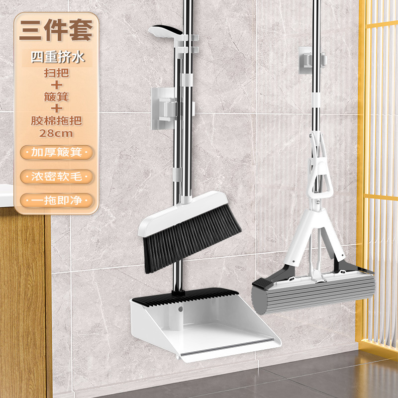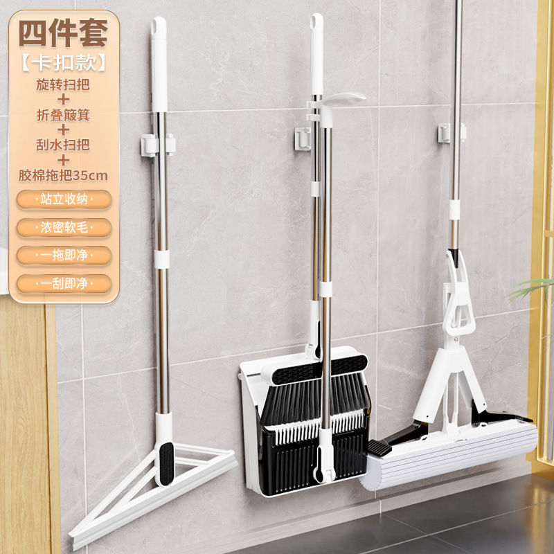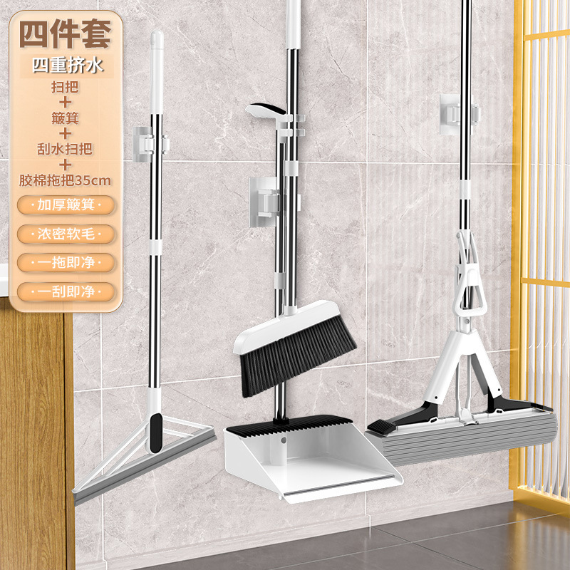 빗자루 커버 조합 걸레 3~4종 세트 쓰레받기 기숙사 가정용 빗자루 고급 스펀지 와이퍼 걸레