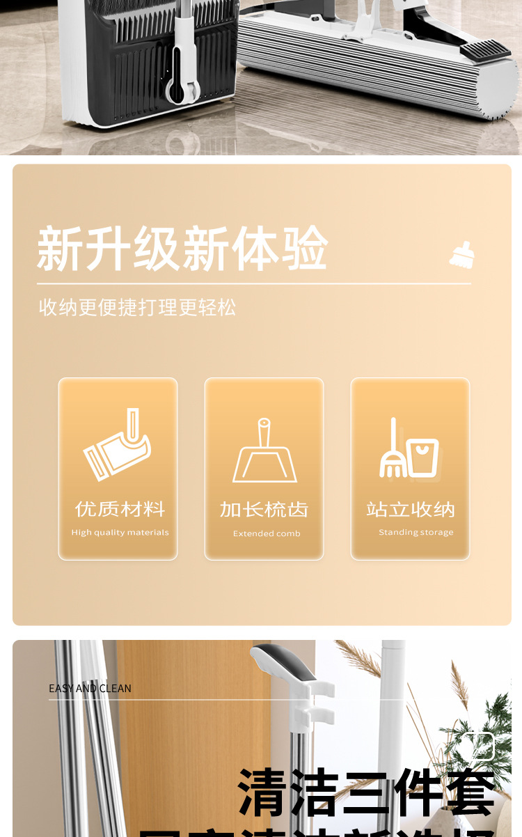 • 업그레이드된 대형 빗 세트 + 접이식 쓰레받기 + 와이퍼(3종 세트)