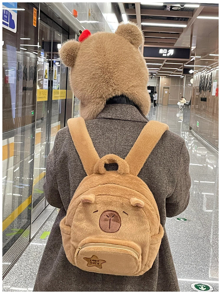 2025 새로운 카피 발라 봉제 카피 바라 백팩 귀여운 크로스 바디 핸드백 여성 만화 학생 작은 배낭스토어 가기