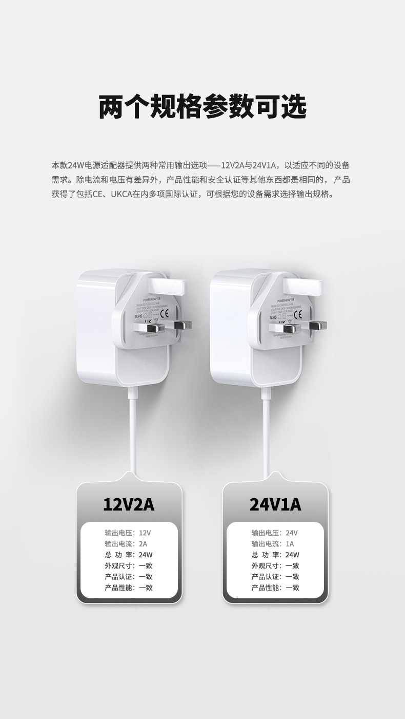 12v2a 홍콩 영국 규정 ukca 인증 흰색 전원 24v1a 모니터링 셋톱 박스 벽 전원 어댑터