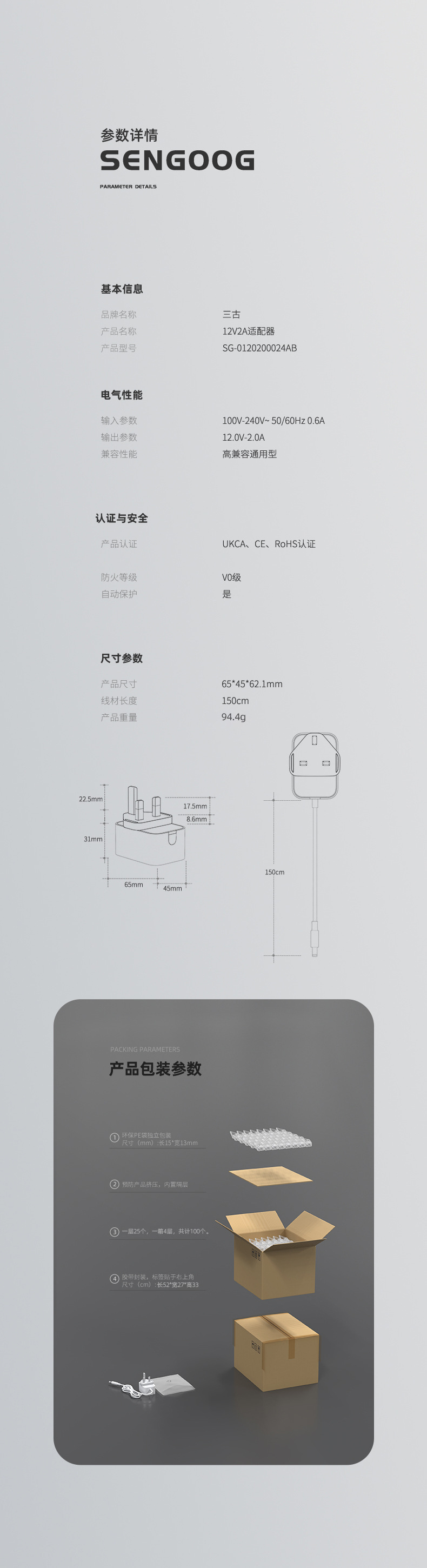 • SG-보조 측면 24V1A 영국 표준 3.5*1.35 아이보리 화이트