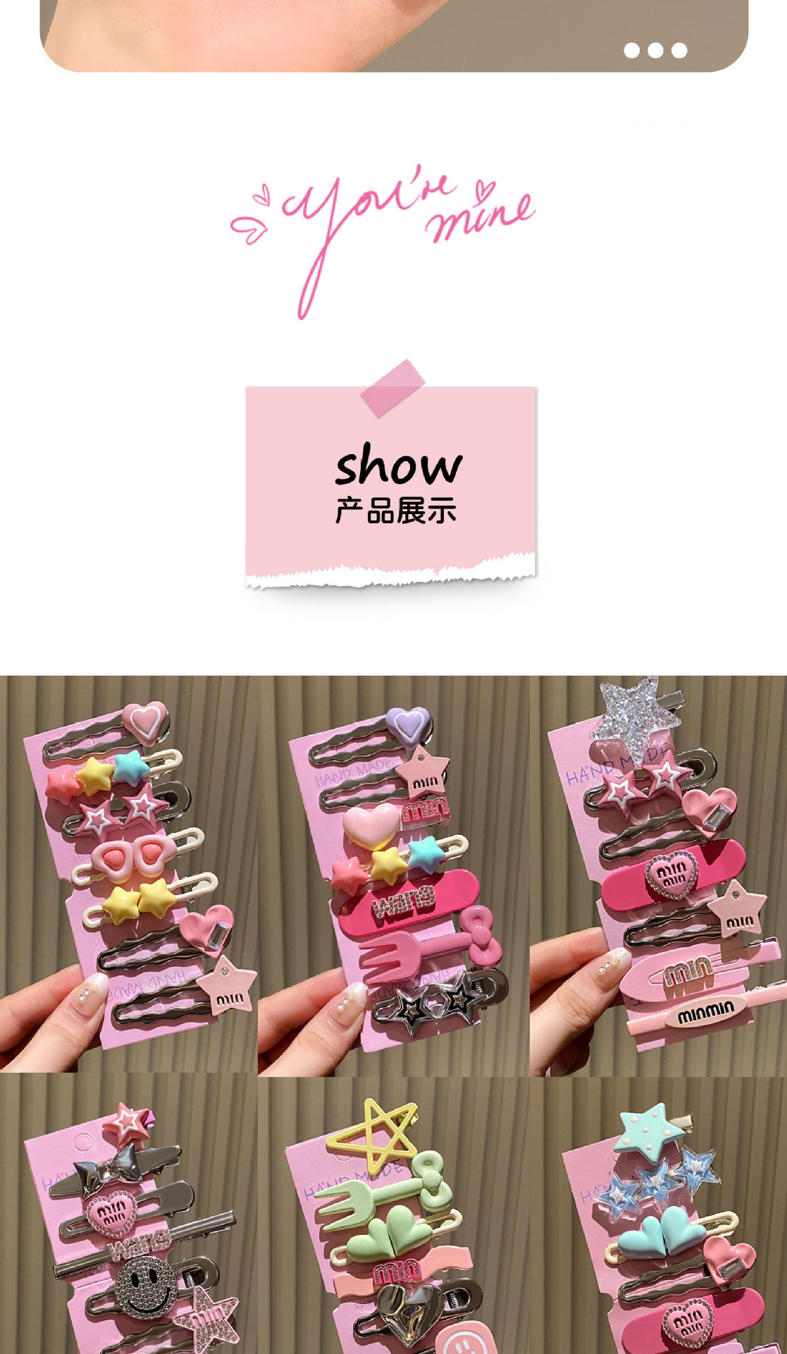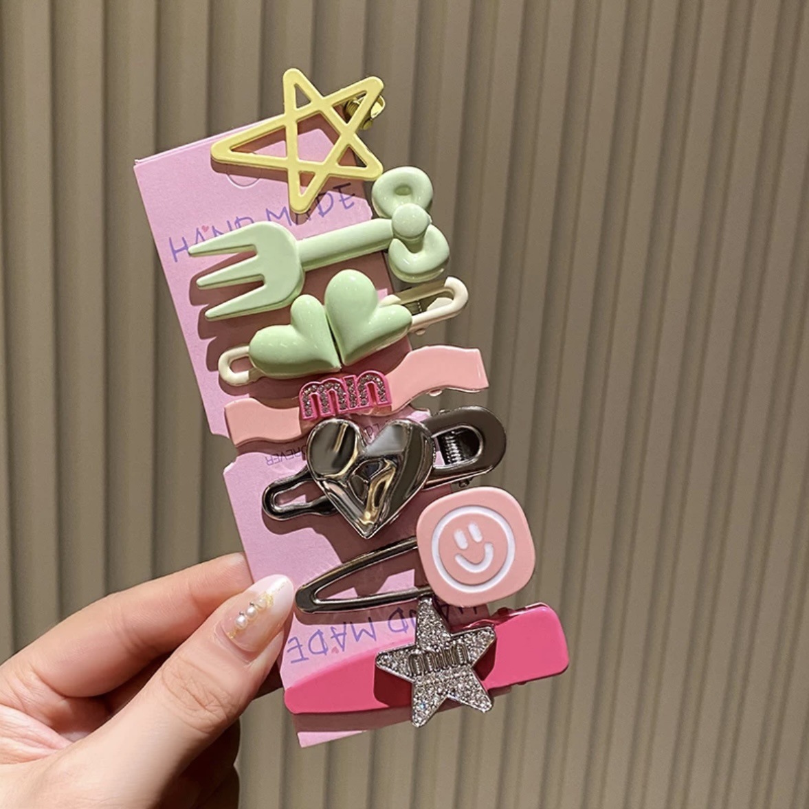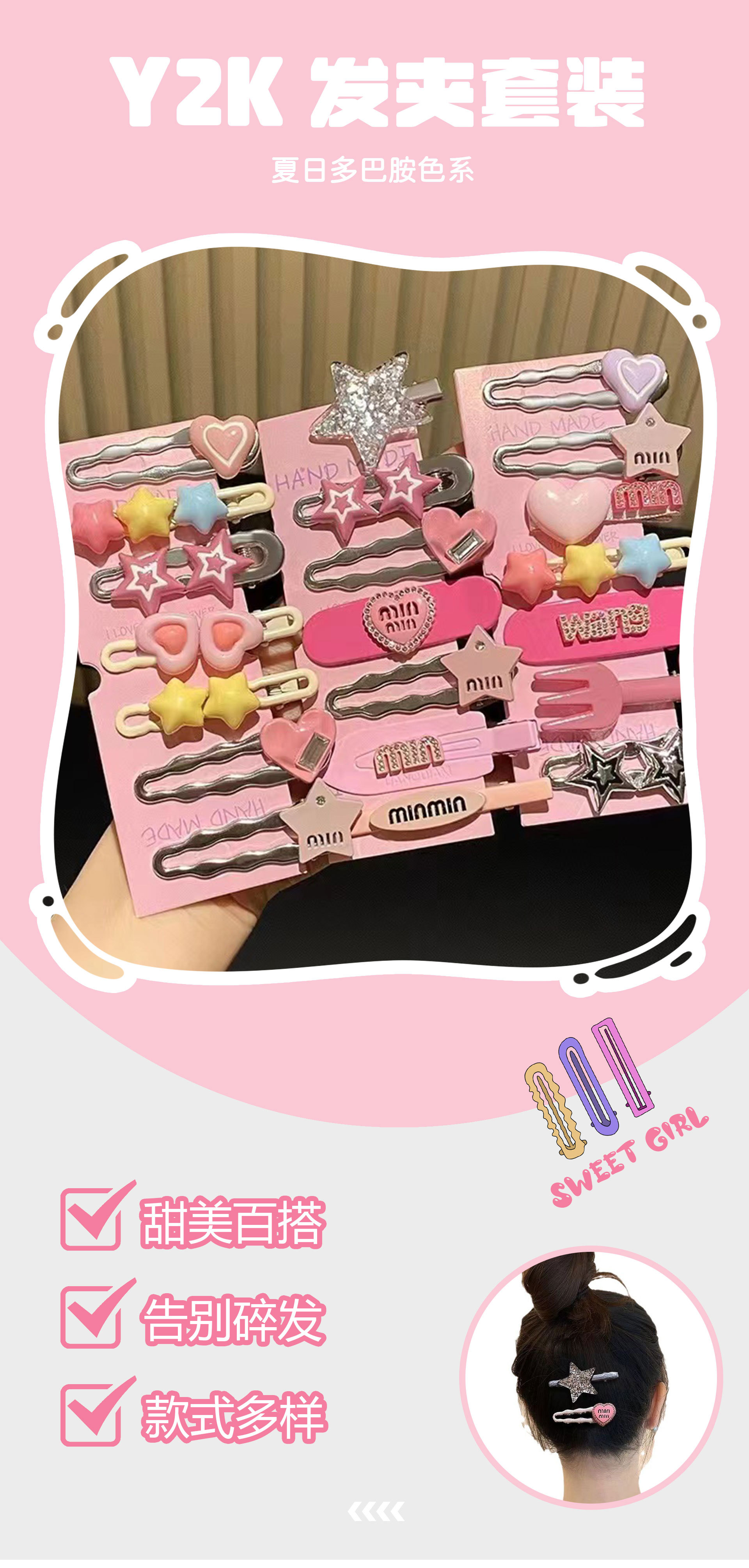 도매 달콤하고 멋진 스타일의 헤어핀, 도파민 메일라드 시리즈 헤어 액세서리, 달콤한 앞머리 헤어핀, 인스타 감성스토어 가기