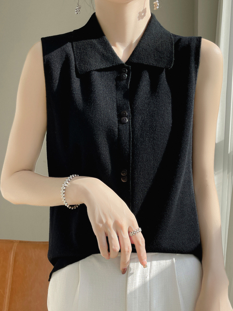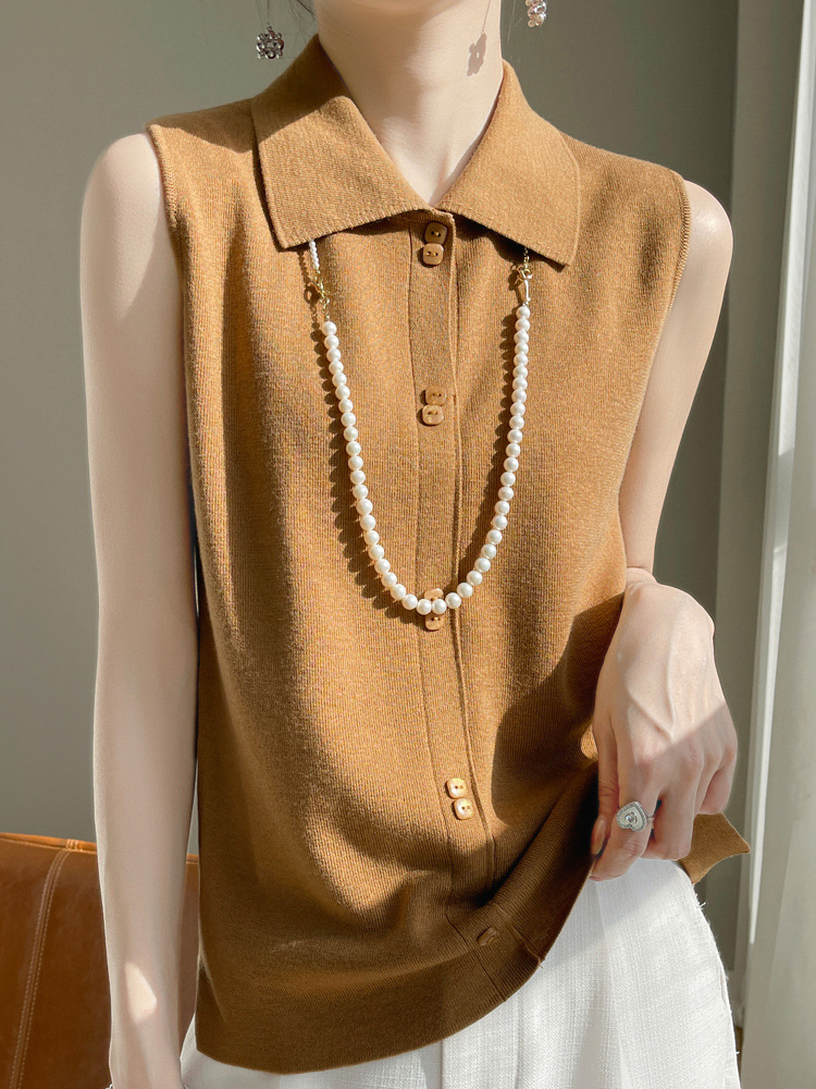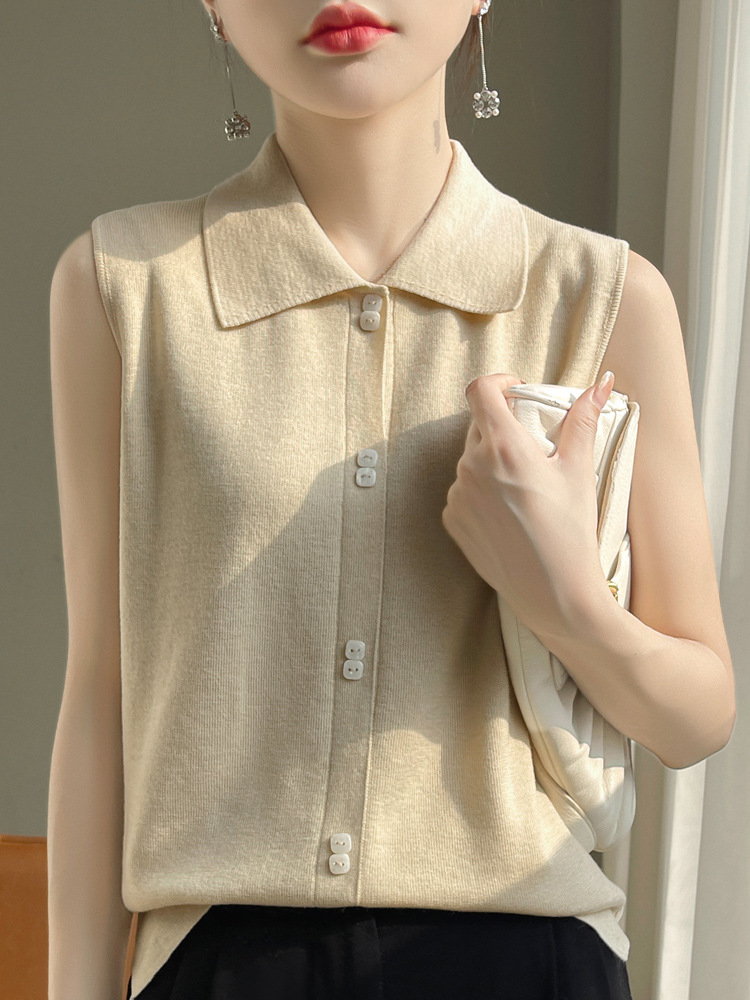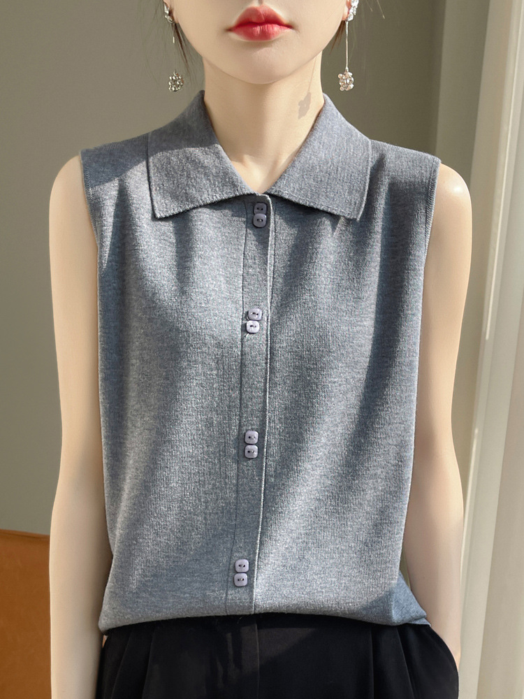젠틀 큐어 POLO 칼라 카미 솔 여성용 내복 2024 새로운 여름 옷깃 민소매 스웨터 베이스스토어 가기